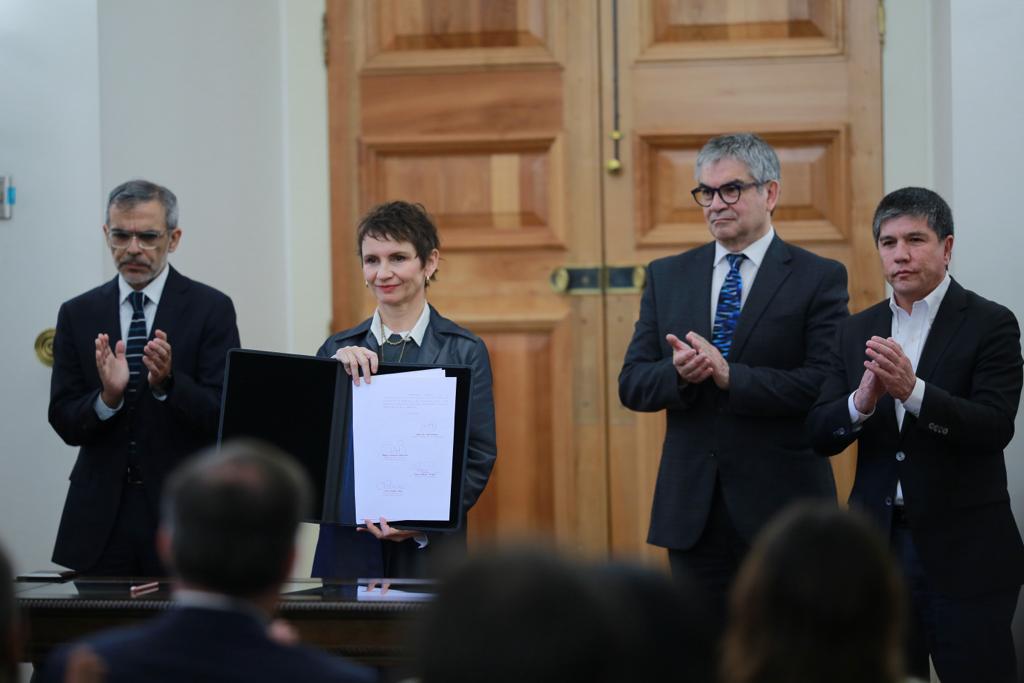 A su turno, el ministro (S) del Interior, Manuel Monsalve, indicó que “esta ley que promulgamos muestra que es posible llegar a acuerdos y que el trabajo entre el Congreso y el Ejecutivo le puede dar al país un mejor Estado y un Estado que proteja de mejor manera la seguridad”.
