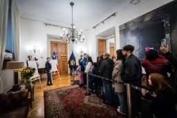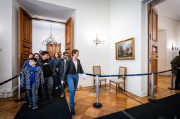 La secretaria de Estado recibió en las puertas del ministerio a distintos grupos, a quienes les explicó la importancia que ha tenido la cartera en la historia de Chile, los lugares donde ha funcionado y el papel que juega actualmente en la coordinación política del gobierno y la seguridad pública.