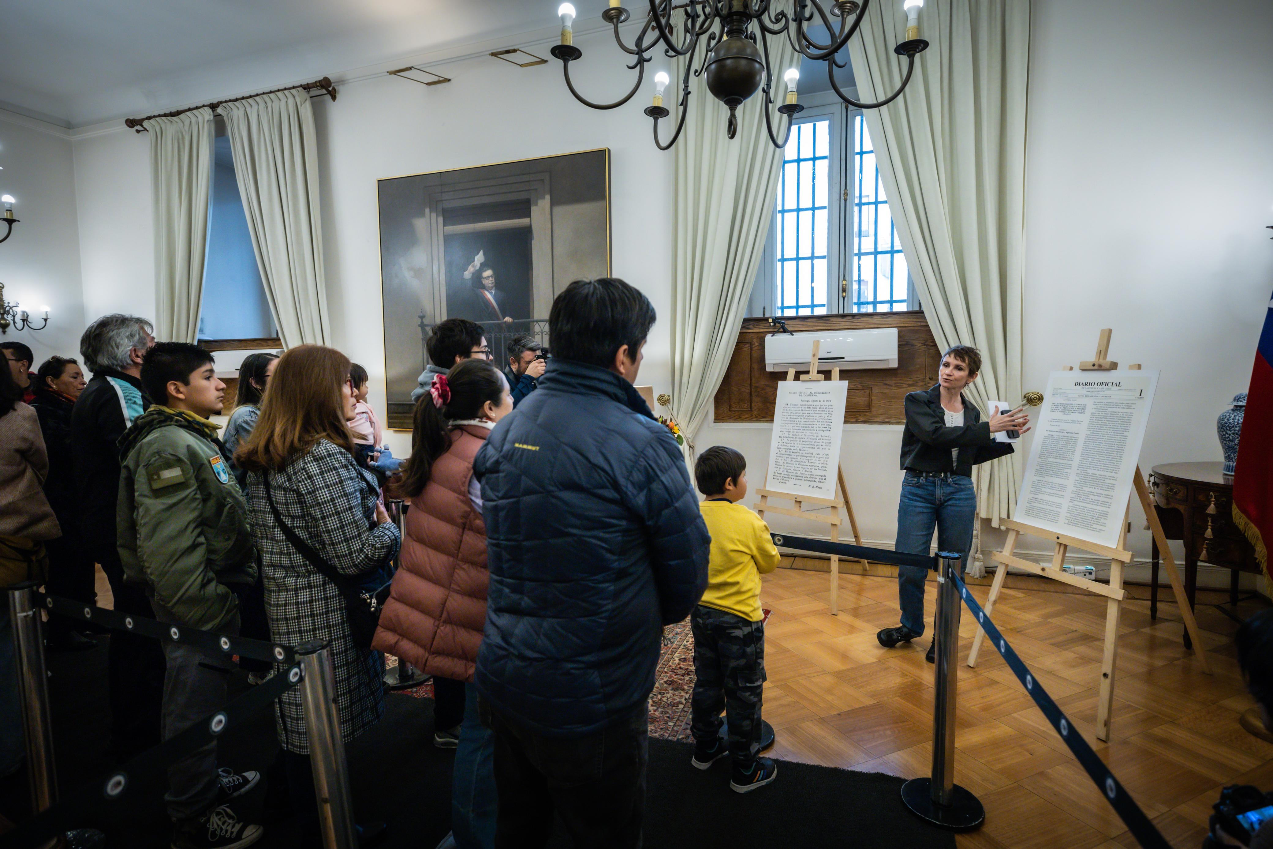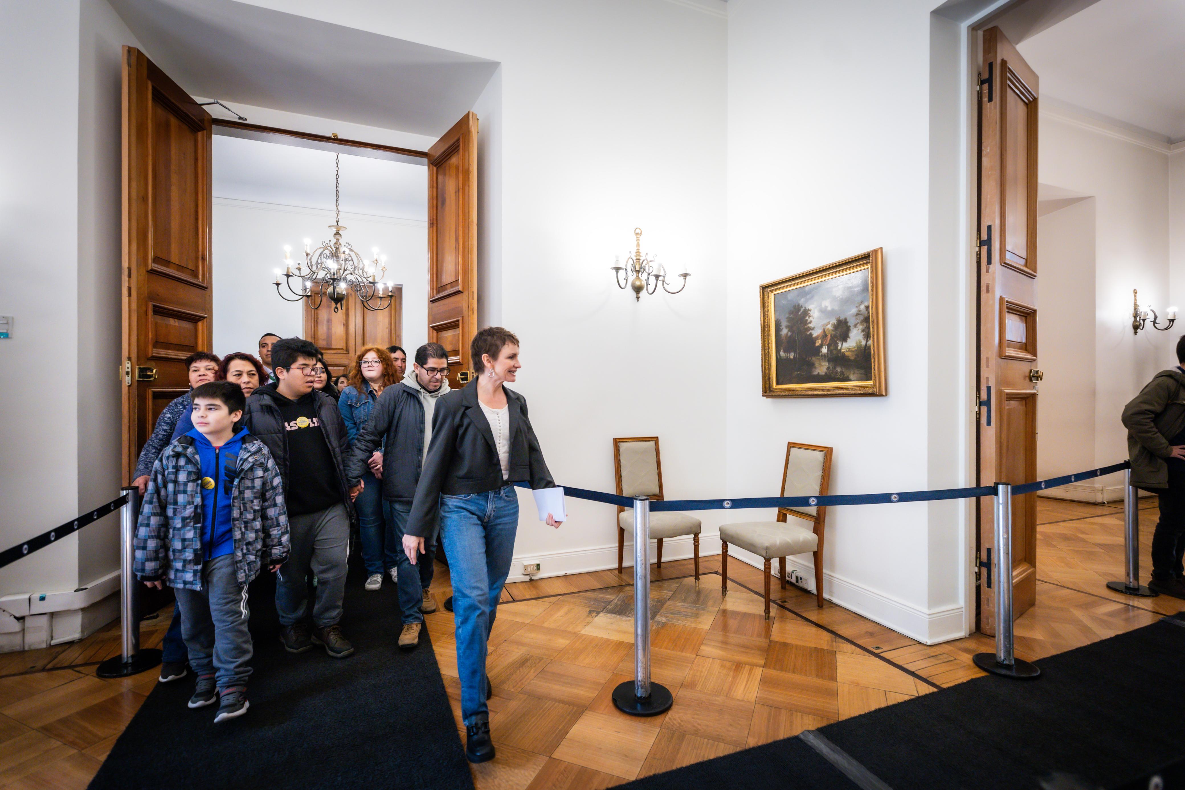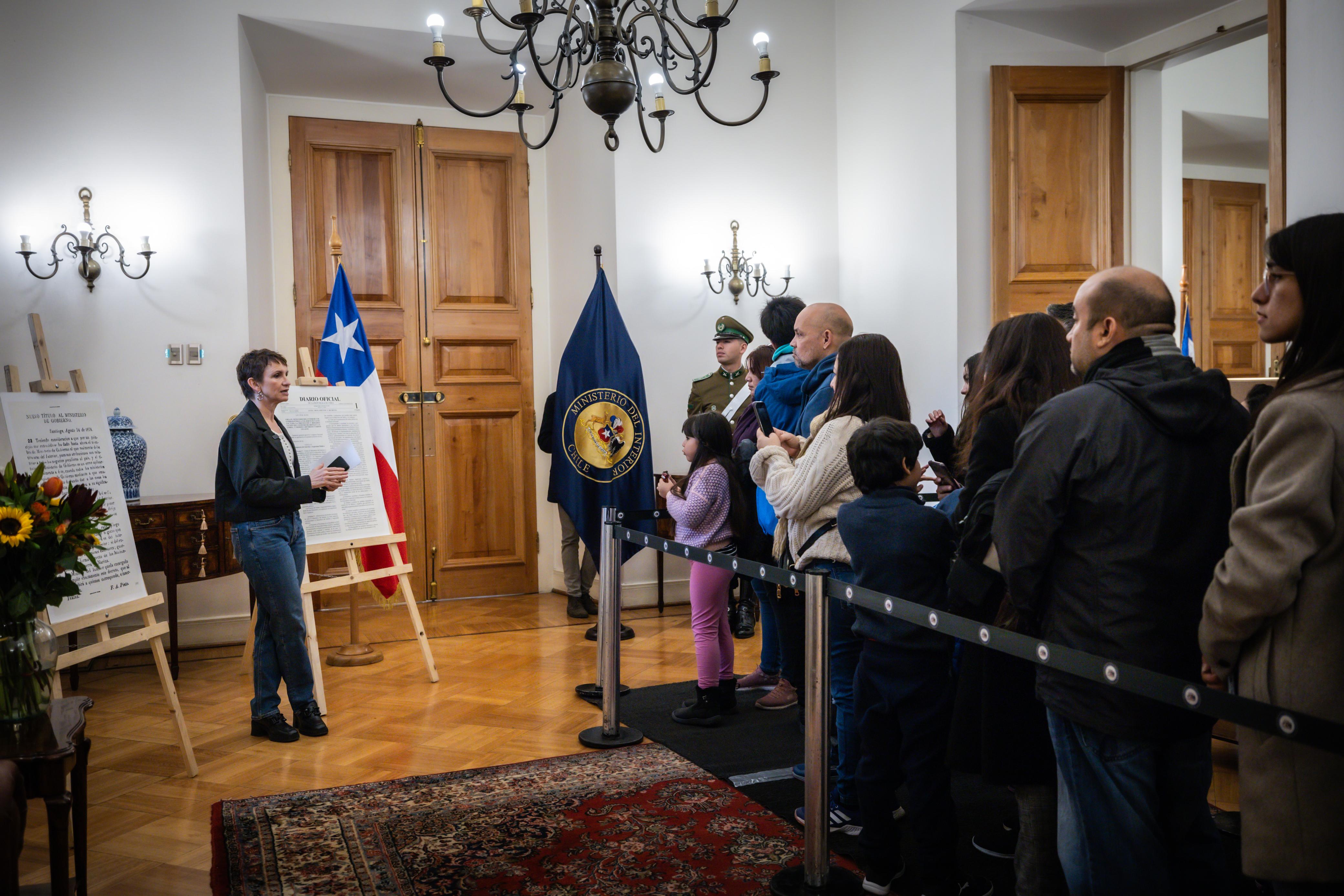 La ministra del Interior y Seguridad Pública, Carolina Tohá, fue la anfitriona y guía de algunos de los cientos de visitantes que este sábado llegaron hasta el palacio de La Moneda para conmemorar el Día de los Patrimonios.