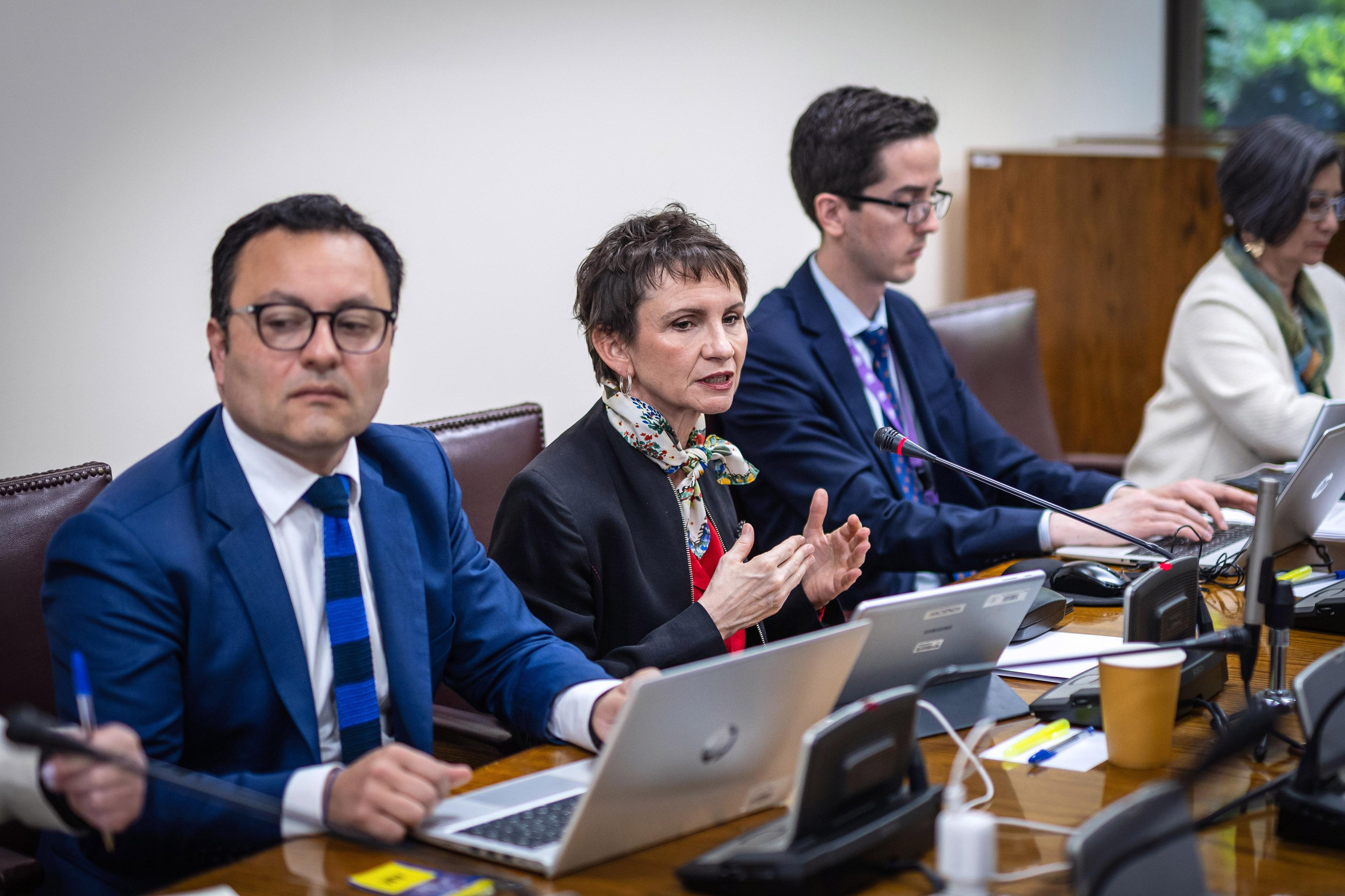 Durante su intervención, la secretaria de Estado se refirió a cómo funciona actualmente el Sistema de Inteligencia del Estado y cómo operaría una vez que se apruebe esta iniciativa que busca establecer medidas para prevenir y alertar sobre actividades que digan relación con el crimen organizado.