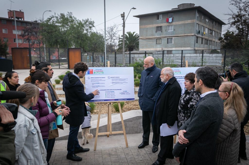 Miércoles 11 de junio de 2025.- Hasta la emblemática población Juan Antonio Ríos, en la comuna de Independencia, llegaron los ministros de Vivienda y Urbanismo, Carlos Montes, y de Interior, Álvaro Elizalde, y el subsecretario de Ciencias, Cristián Cuevas, para visitar las obras del proyecto “Reutilización de Aguas Grises en Contextos Urbanos”, que conecta 13 departamentos a un innovador sistema de tratamiento que les permitirá volver a emplear 2.622 litros de aguas grises al día, para el riego de 643 m² de áreas verdes.