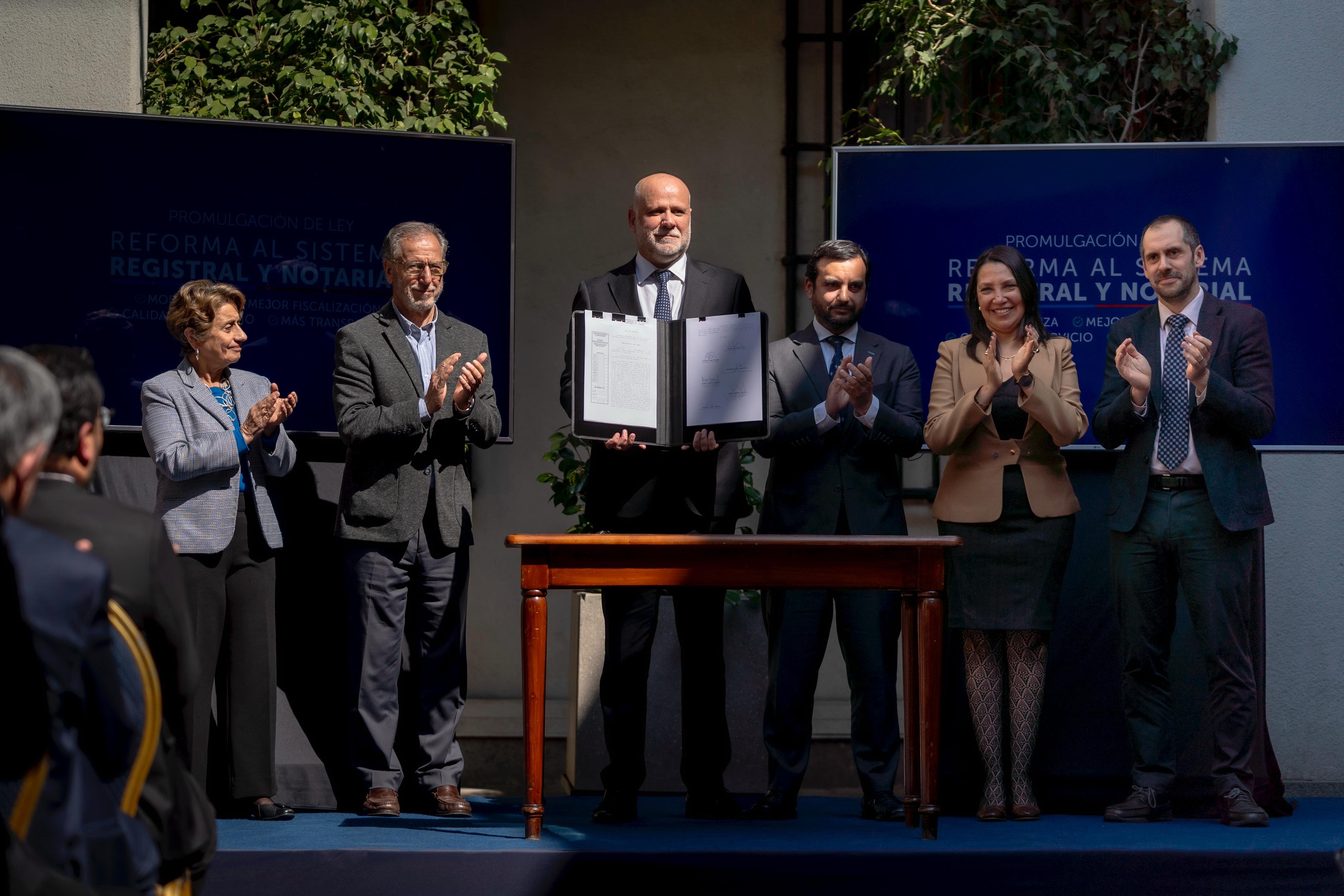 Durante la ceremonia, realizada en el Patio de las Camelias del Palacio de La Moneda, el vicepresidente Elizalde destacó que «esta ley permitirá contar con un sistema registral notarial más eficiente, transparente y al servicio de las necesidades de las personas. Por ello, no se trata únicamente de una reforma de carácter administrativo, sino de una medida con efectos directos en la vida cotidiana de las chilenas y chilenos«.