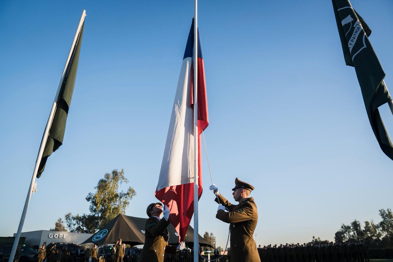 Ministro Alvarado celebró aniversario de Carabineros en ceremonia de izamiento de la bandera