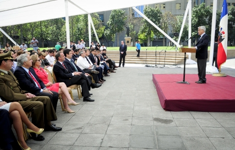 El Presidente de la República, Sebastián Piñera, acompañado del ministro del Interior y Seguridad Pública, Andrés Chadwick, y del intendente Juan Antonio Peribonio, entregó esta tarde en la Plaza de la Constitución, la Cuenta Pública de la región Metropolitana, oportunidad en la que destacó que “durante estos cuatro años, en esta región hemos creado más de 400 mil nuevos empleos”.