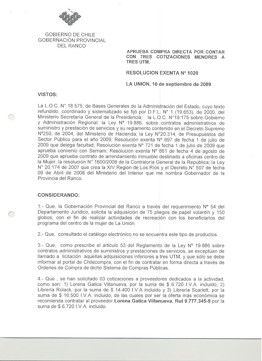 | 33 | 11/09/2009 | Resolución Exenta N° 1020 | Materiales Centro de la Mujer | 11/09/2009 | 11/09/2009 | Pesos | 6720 | Lorena Gatica Villanueva | No | No | No | 9.777.345-9 | No | Ver enlace | - | null |