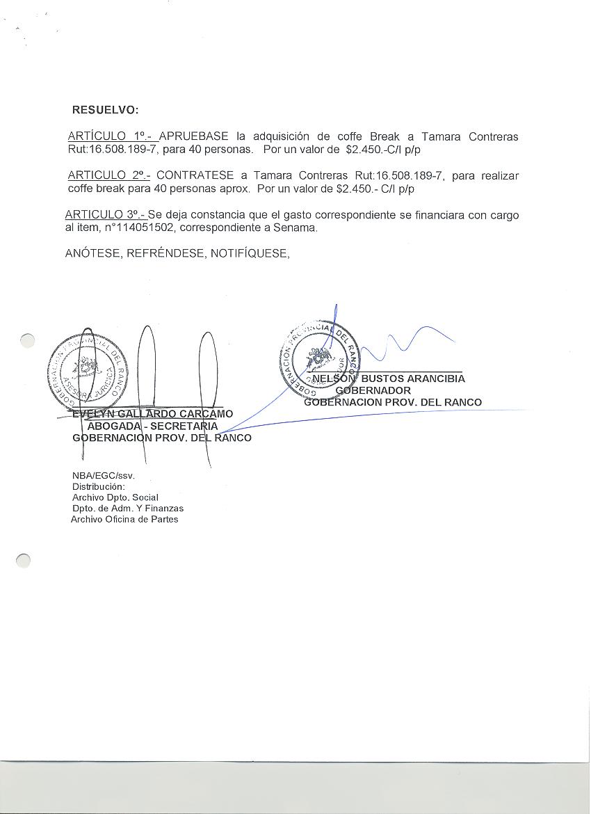| 3 | 21/04/2009 | Resolución Exenta 371 | Servicio coffee break, encuentro de Adulto Mayor Río Bueno | 21/04/2009 | 21/04/2009 | Pesos | 98000 | Tamara Sofía Contreras Sepúlveda | Contreras | Sepúlveda | Tamara | 16.508.187-7 | Tamara Contreras | Ver enlace | - | null |