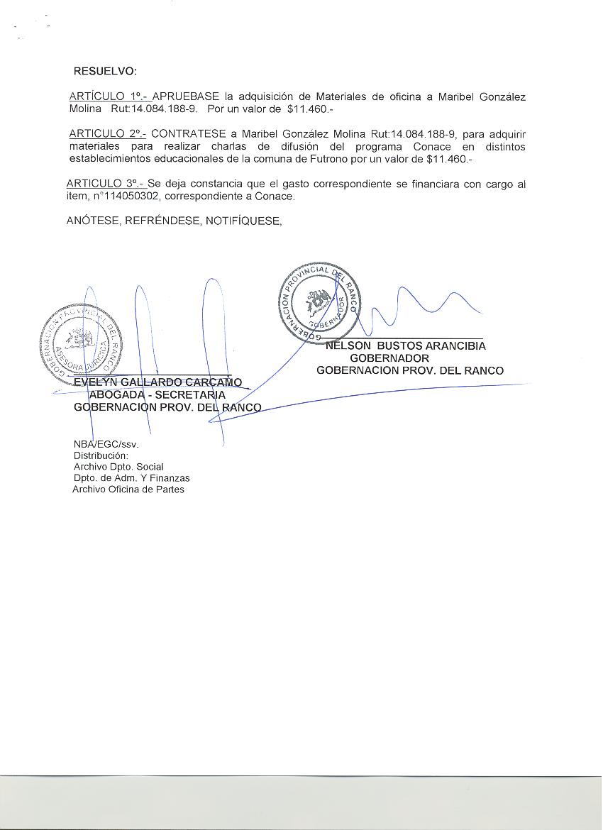 | 7 | 23/04/2009 | Resolución Exenta 386 | Compra materiales Programa Conace Futrono | 23/04/2009 | 23/04/2009 | Pesos | 11460 | Maribel González Medina | González | Molina | Maribel | 14.084.188-9 | Maribel González | Ver enlace | - | null |