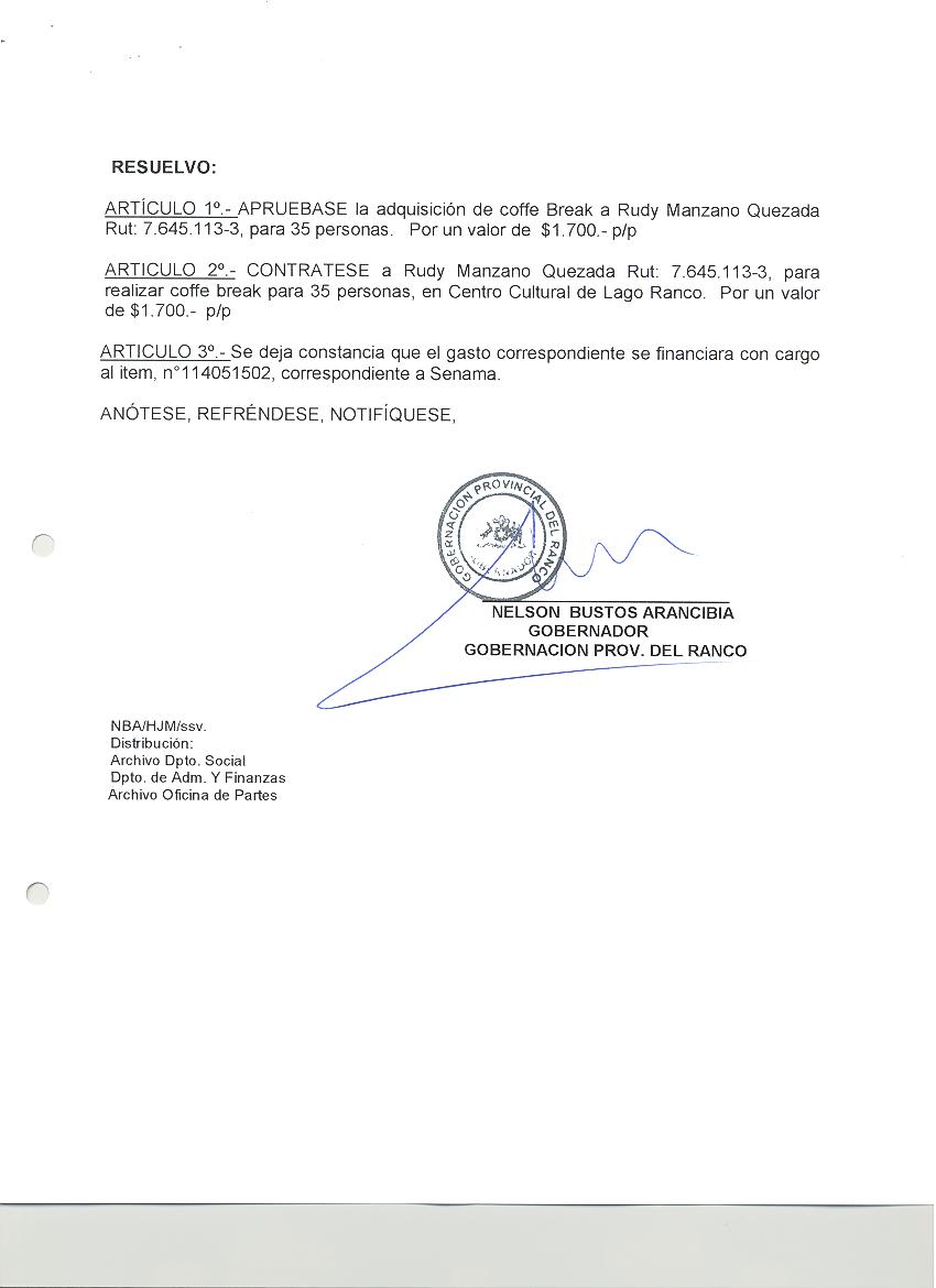 | 9 | 24/04/2009 | Resolución Exenta 390 | Servicio Coffee break encuentro Adulto Mayor Lago Ranco | 27/04/2009 | 27/04/2009 | Pesos | 59500 | Rudy Manzano Quezada | Manzano | Quezada | Rudy | 7.645.113-3 | Rudy Manzano | Ver enlace | - | null |