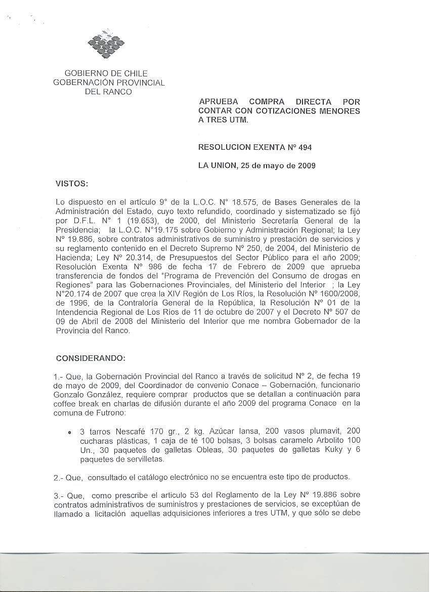 | 24 | 25/05/2009 | Resolución Exenta N° 494 | Adquisición de productos para coffe break Conace Futrono | 25/05/2009 | 25/05/2009 | Pesos | 52013 | Inversiones Multi | No | No | No | 96.881.440-0 | No | Ver enlace | - | null |