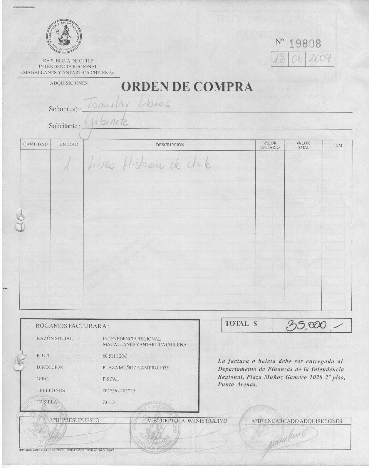 | 52 | 18/06/2009 | Orden de Compra N° 19808 | Libro de Historia regalo intendente | 18/06/2009 | 18/06/2009 | Pesos | 35.000 | Mihovilovic Hermanos S.A. | 95.334.000-3 | Ver enlace | - | null | ||||