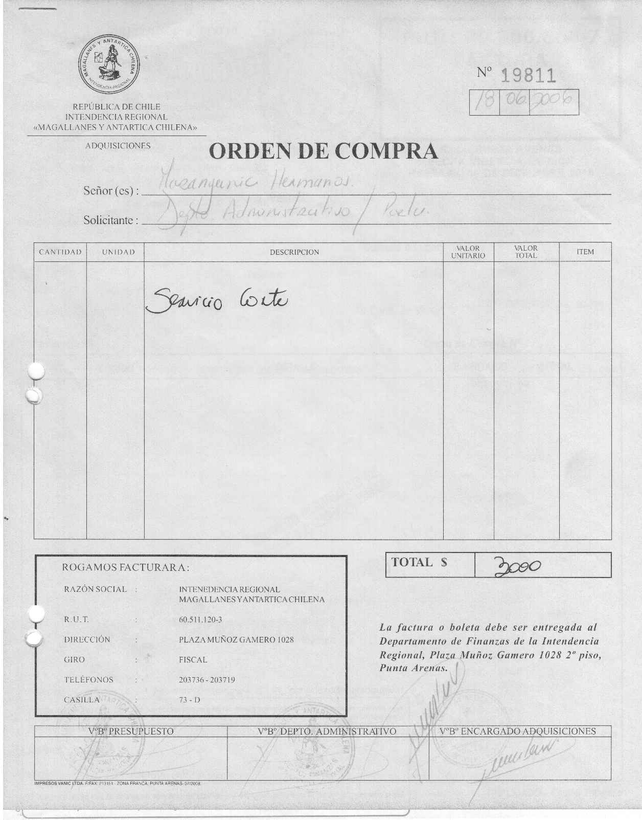 | 55 | 18/06/2009 | Orden de Compra N° 19811 | Servicio de corte de papeles | 18/06/2009 | 18/06/2009 | Pesos | 3.000 | Marangunic Hermanos Ltda. | 80.586.800-7 | Ver enlace | - | null | ||||