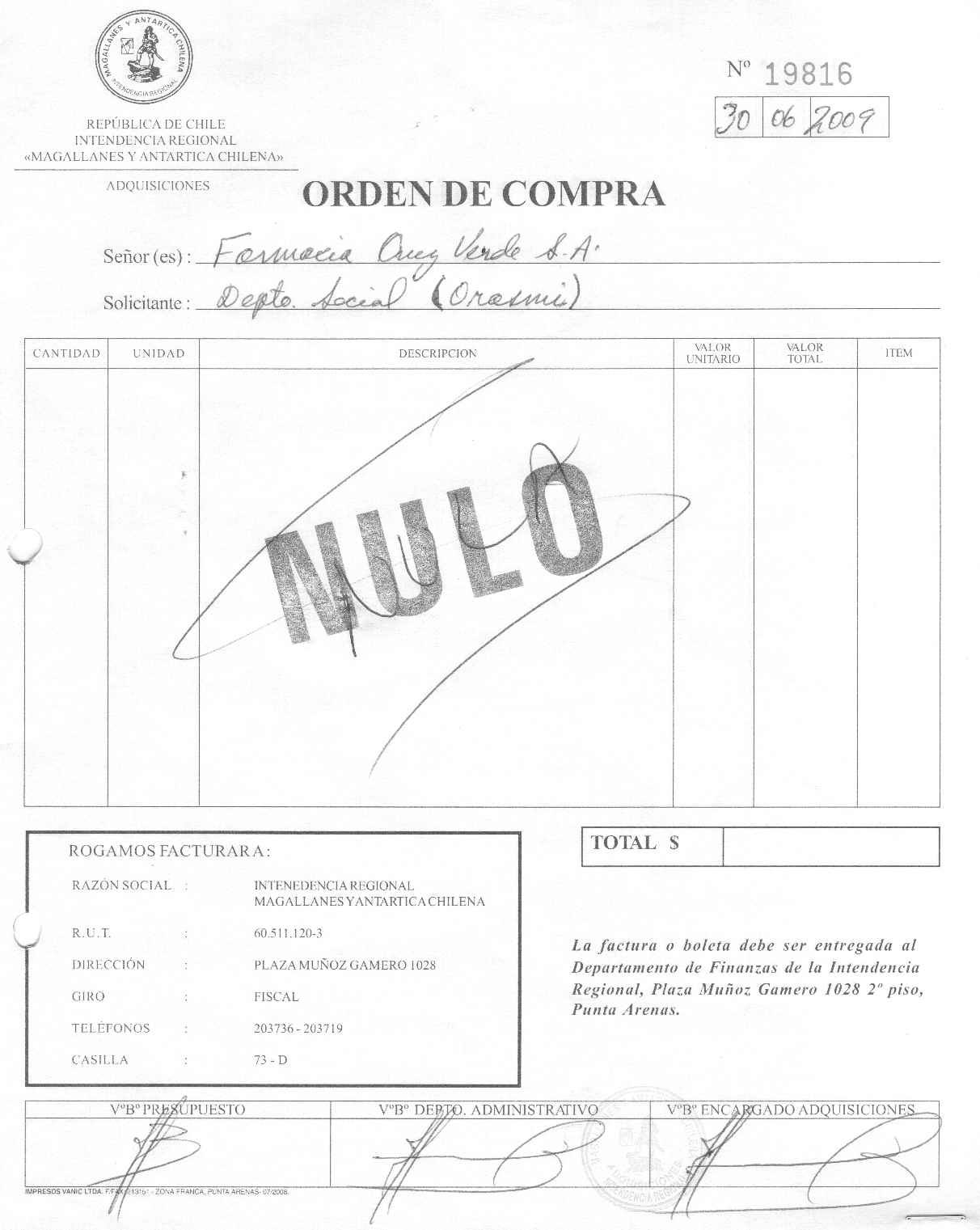 | 51 | 15/06/2009 | Orden de Compra N° 19807 | ANULADA | 15/06/2009 | 15/06/2009 | Pesos | 0 | . | Ver enlace | - | null | |||||