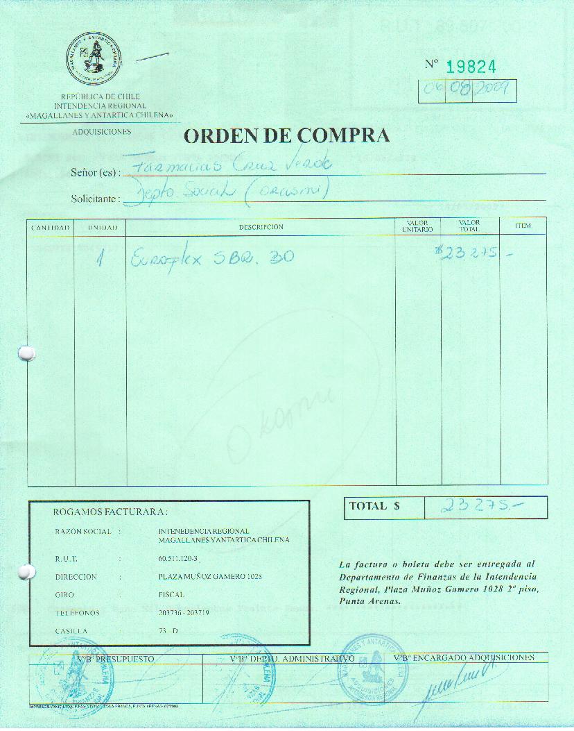 | 62 | 06/08/2009 | Orden de Compra N° 19824 | Orasmi - Medicamento ayuda social | 06/08/2009 | 06/08/2009 | Pesos | 23.275 | Farmacias Cruz Verde S.A | 89.807.200-2 | Ver enlace | - | null | ||||