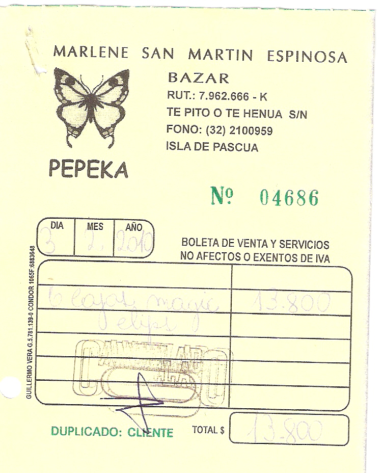 | 7 | 12/02/2010 | Egreso N° 027 | Consumo Combustible | 12/02/2010 | 12/02/2010 | pesos | 66.620 | Edmunds | Paoa | Juan | 10.084.113-1 | Ver enlace | ||