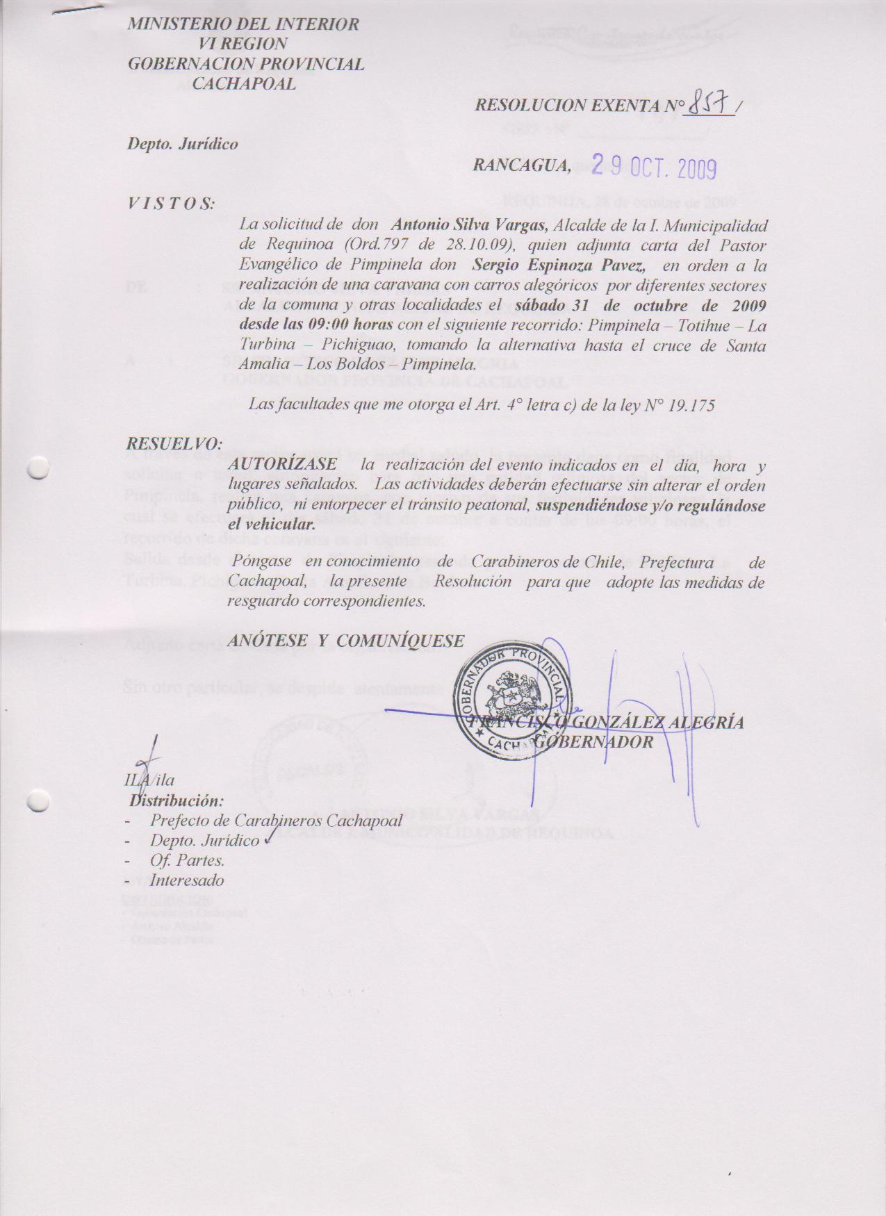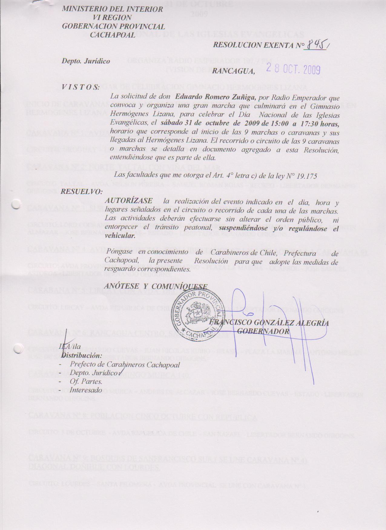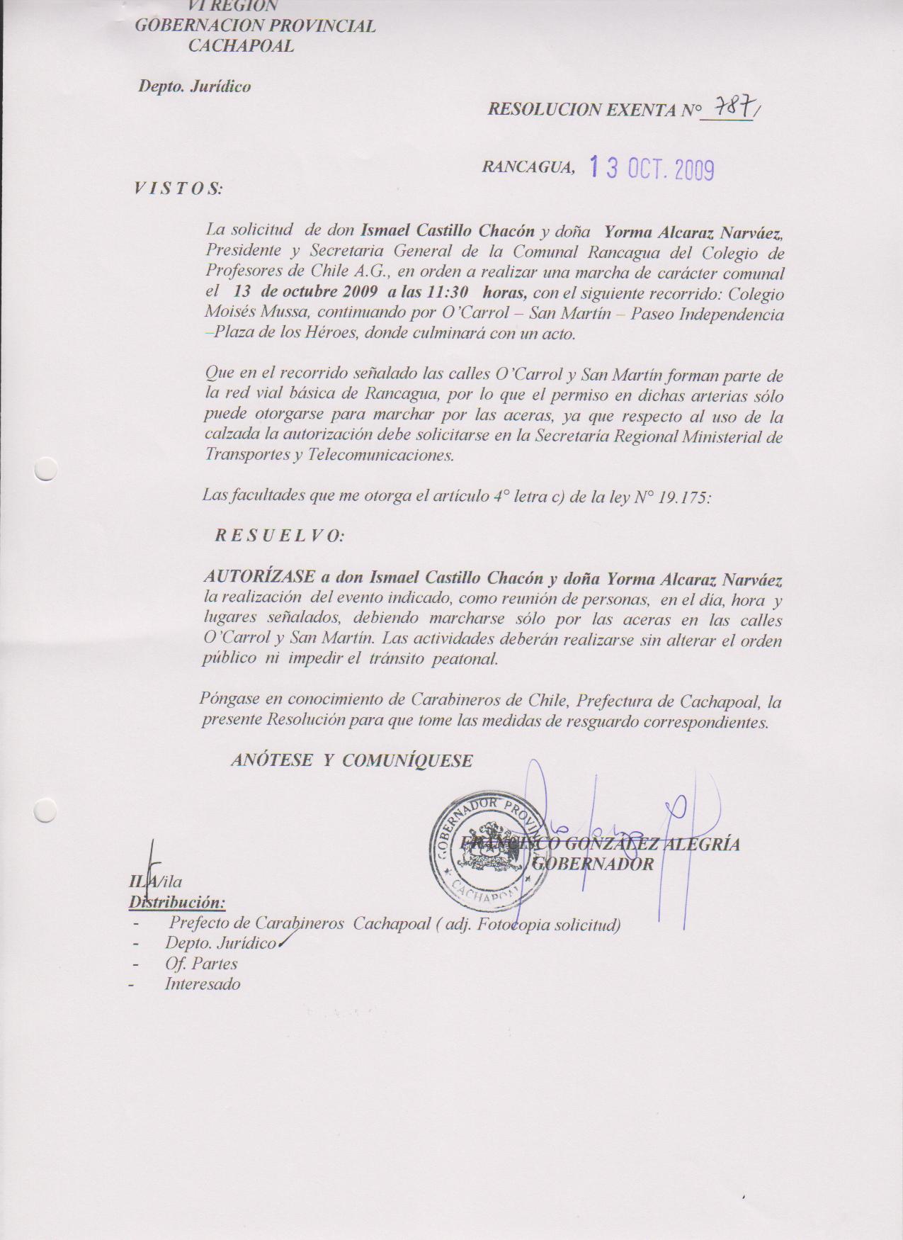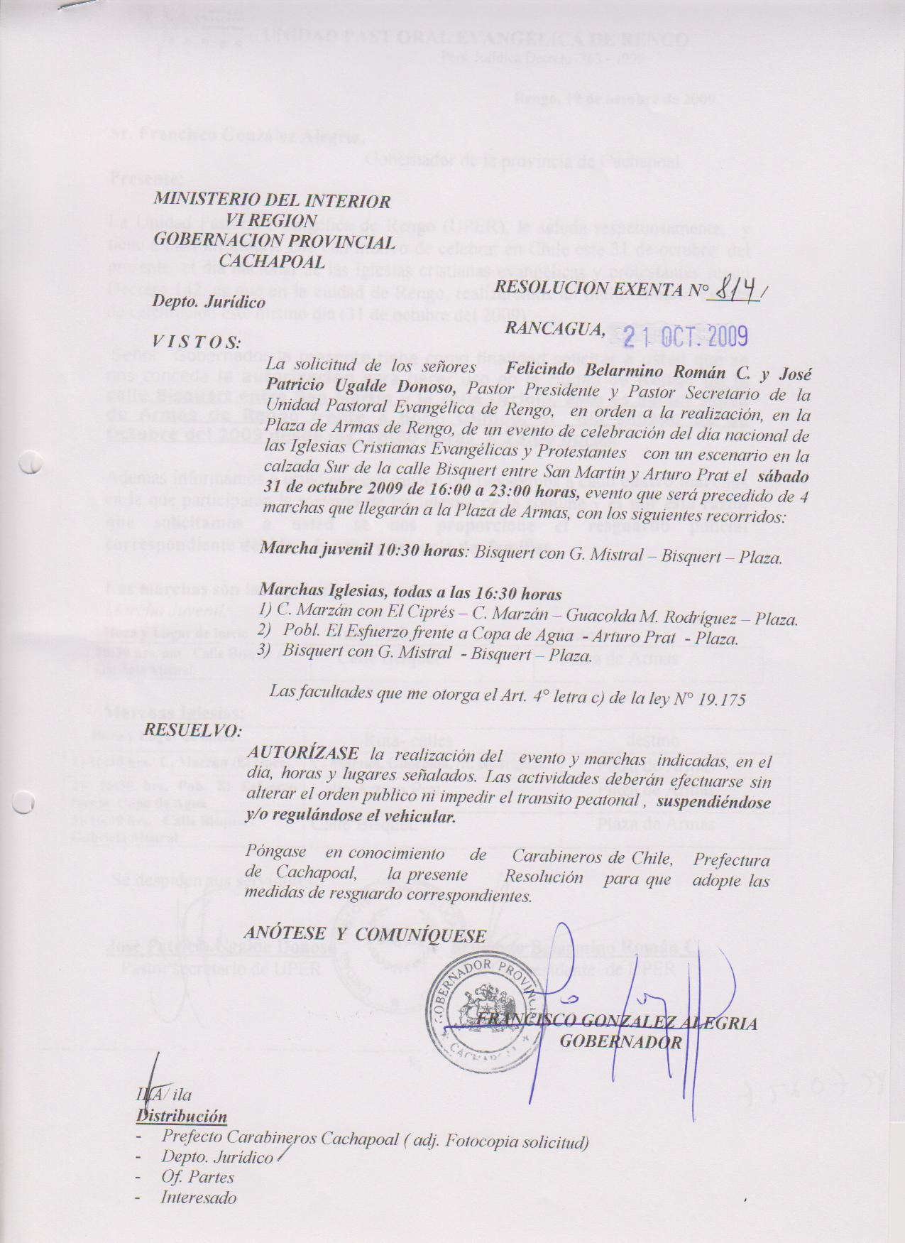 AUTORIZA MARCHAS EN LAS COMUNA DE RANCAGUA |