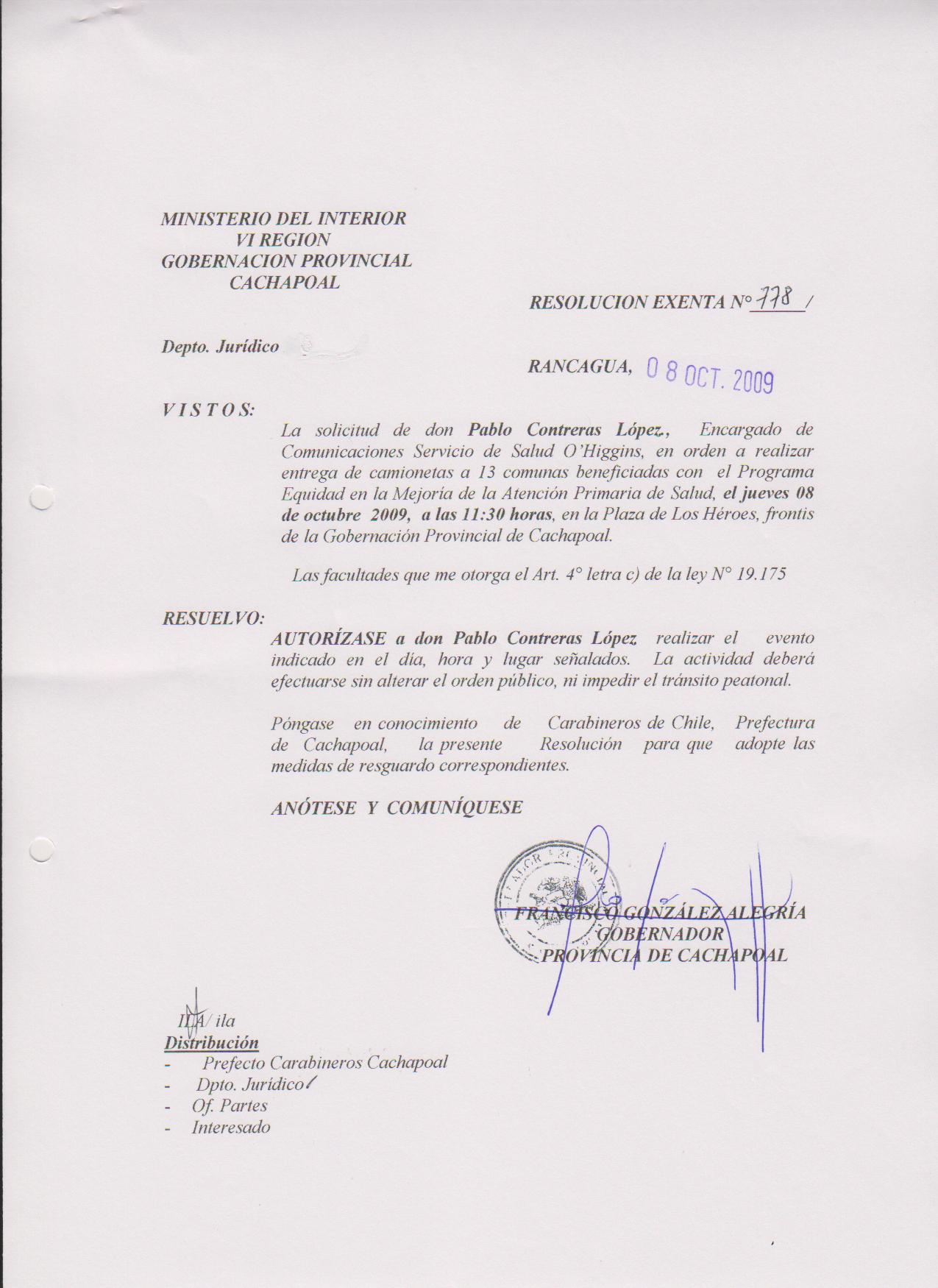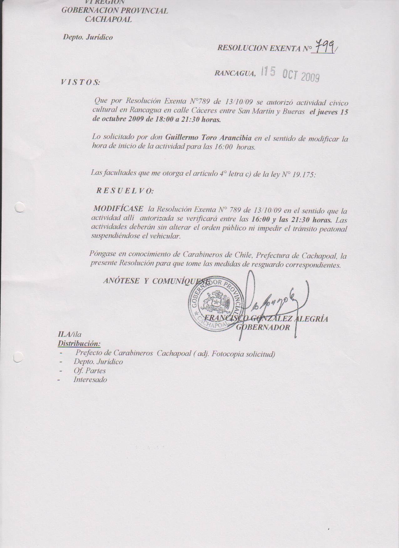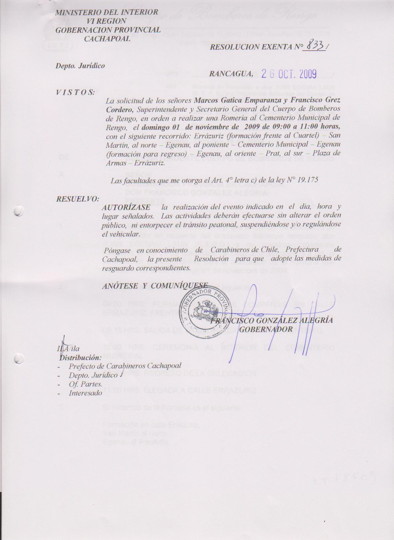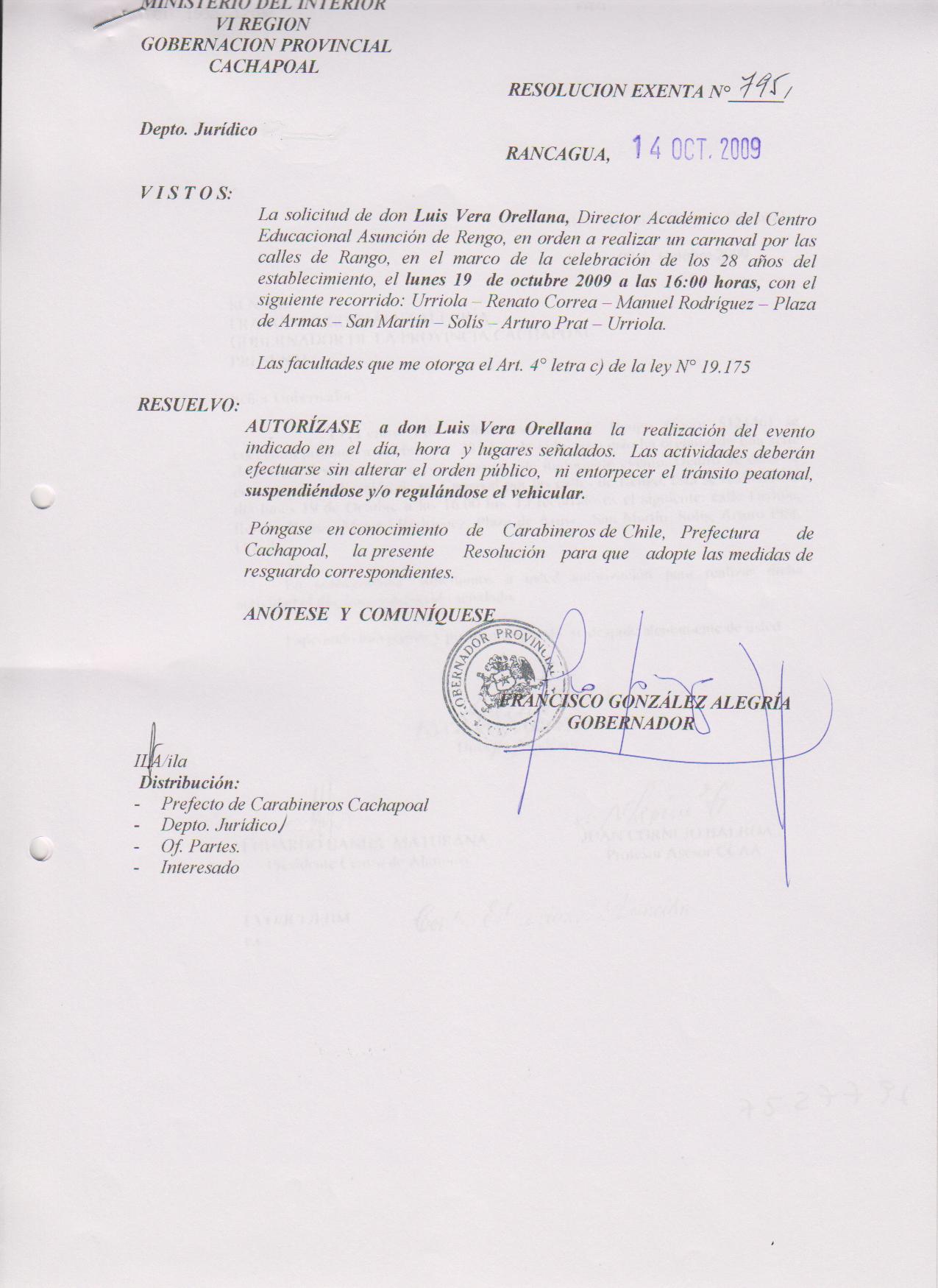 AUTORIZA MARCHAS EN LAS COMUNA DE RANCAGUA |