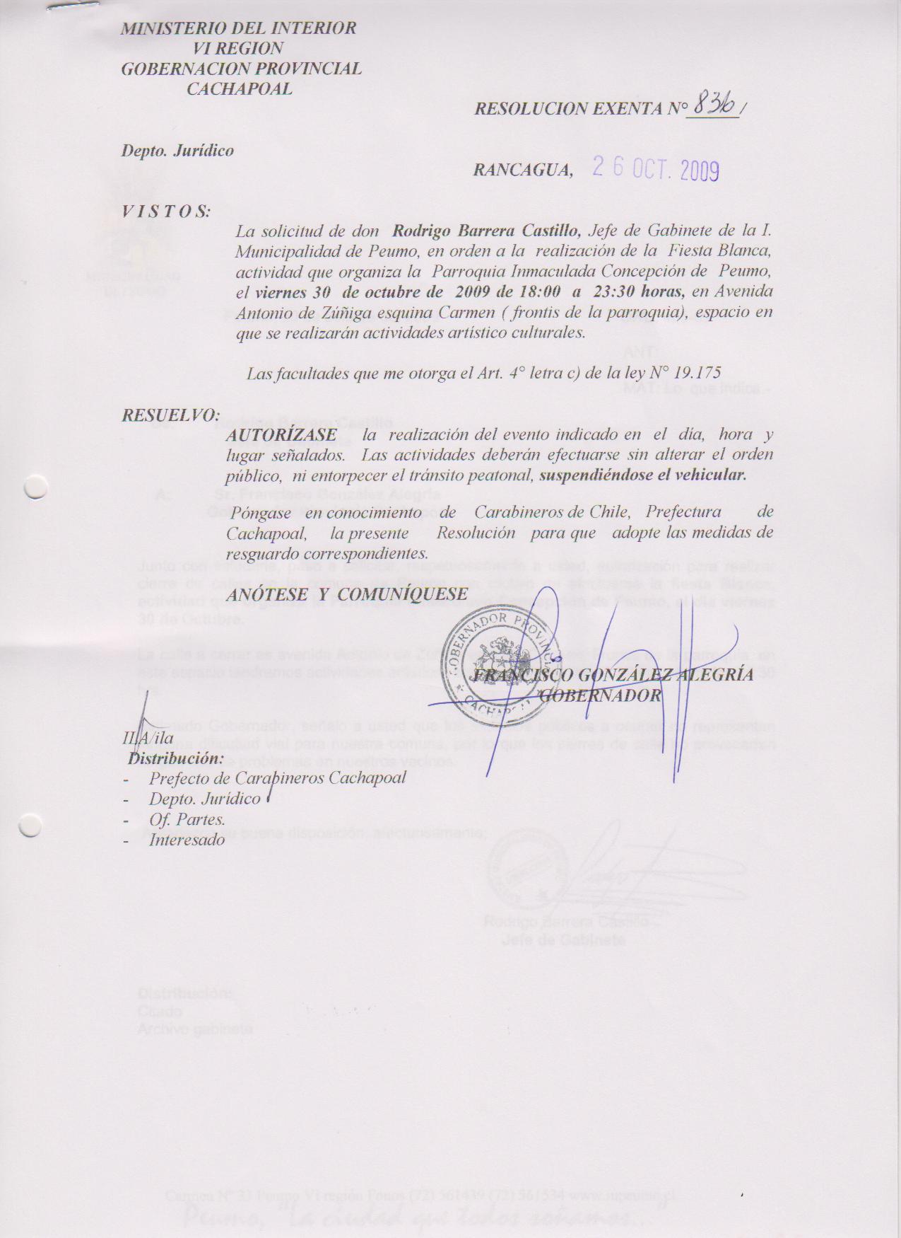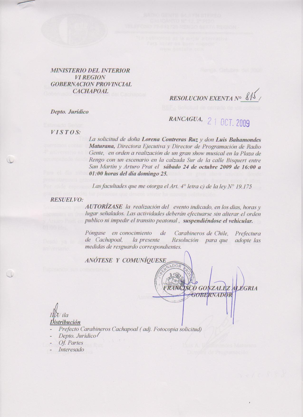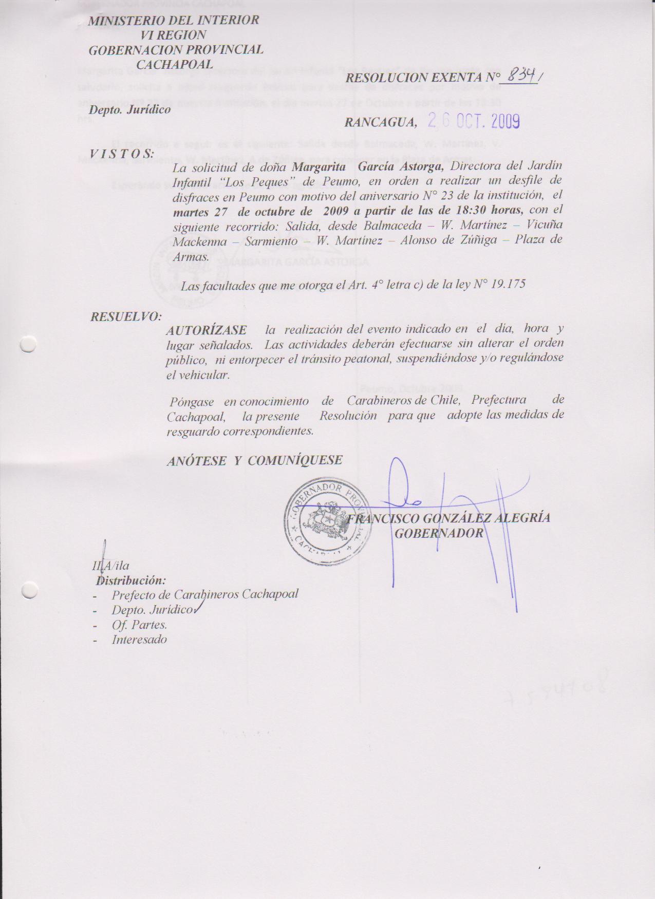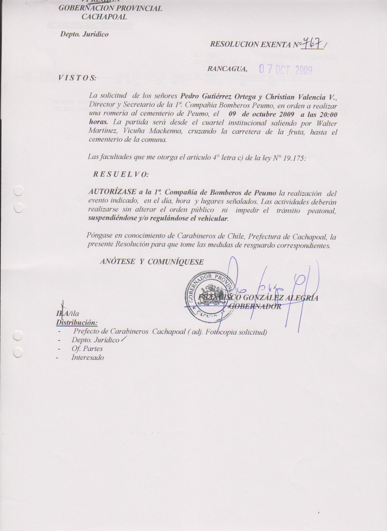 AUTORIZA MARCHAS EN LAS COMUNA DE RANCAGUA |