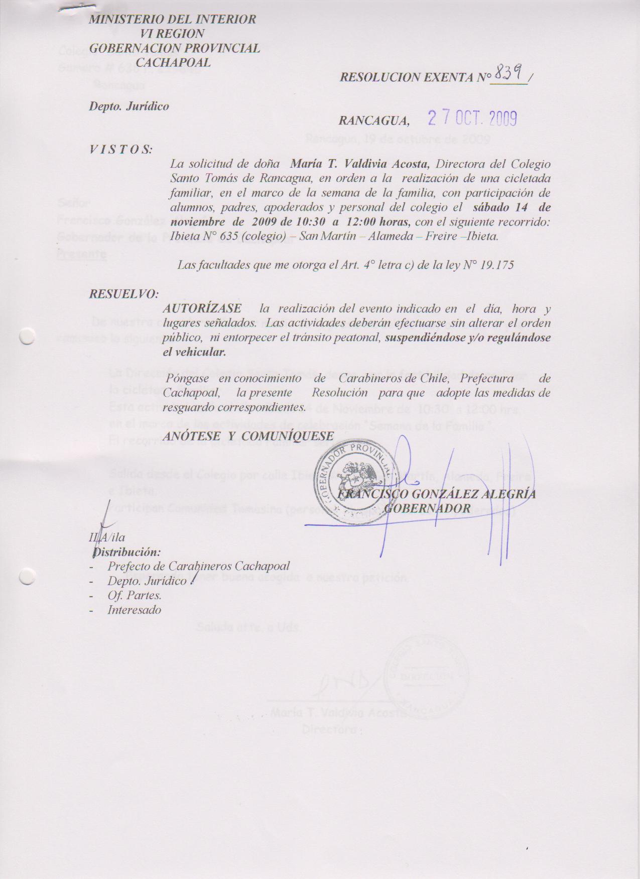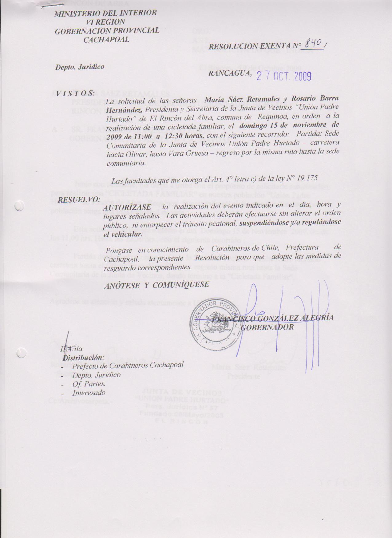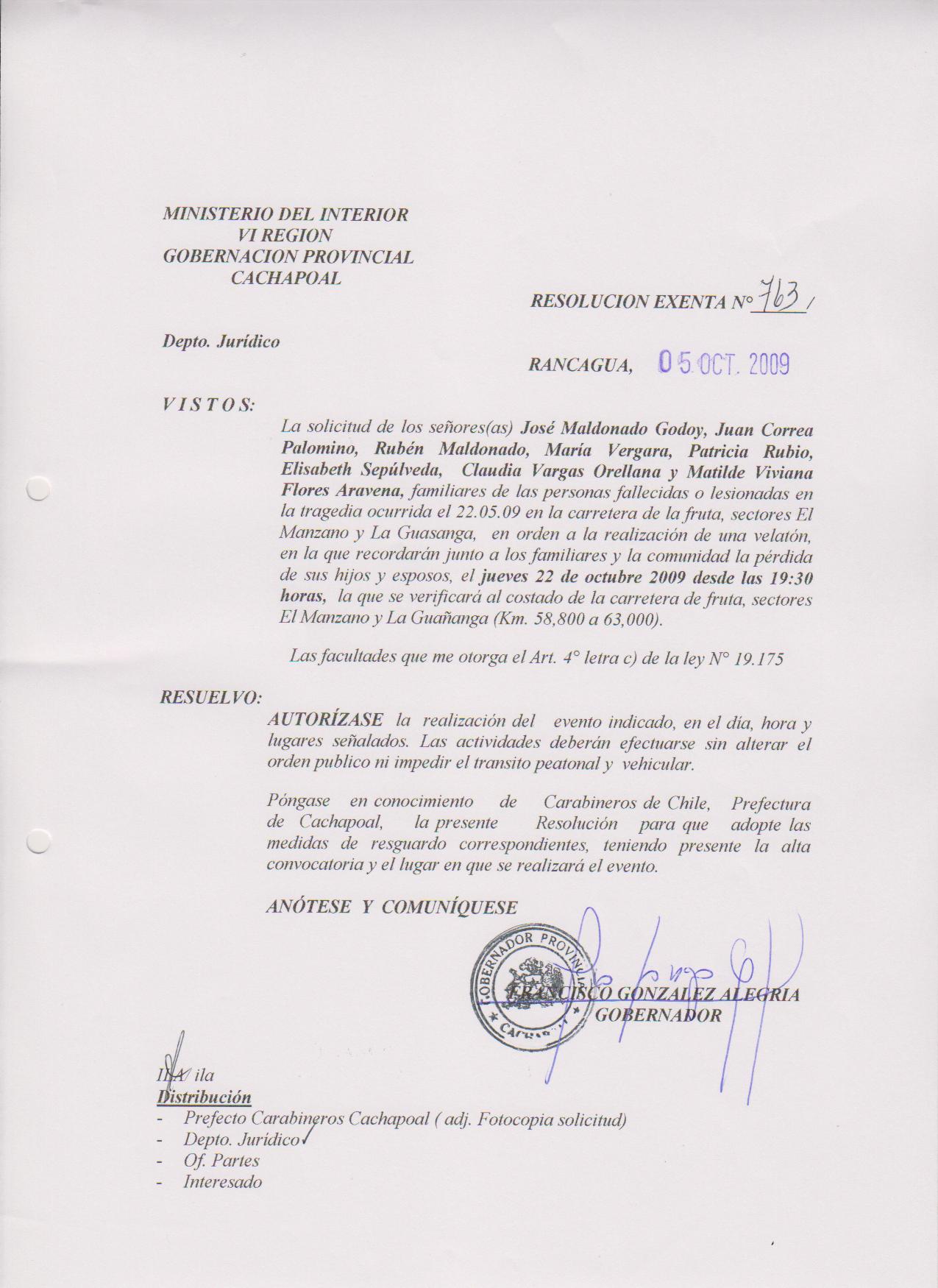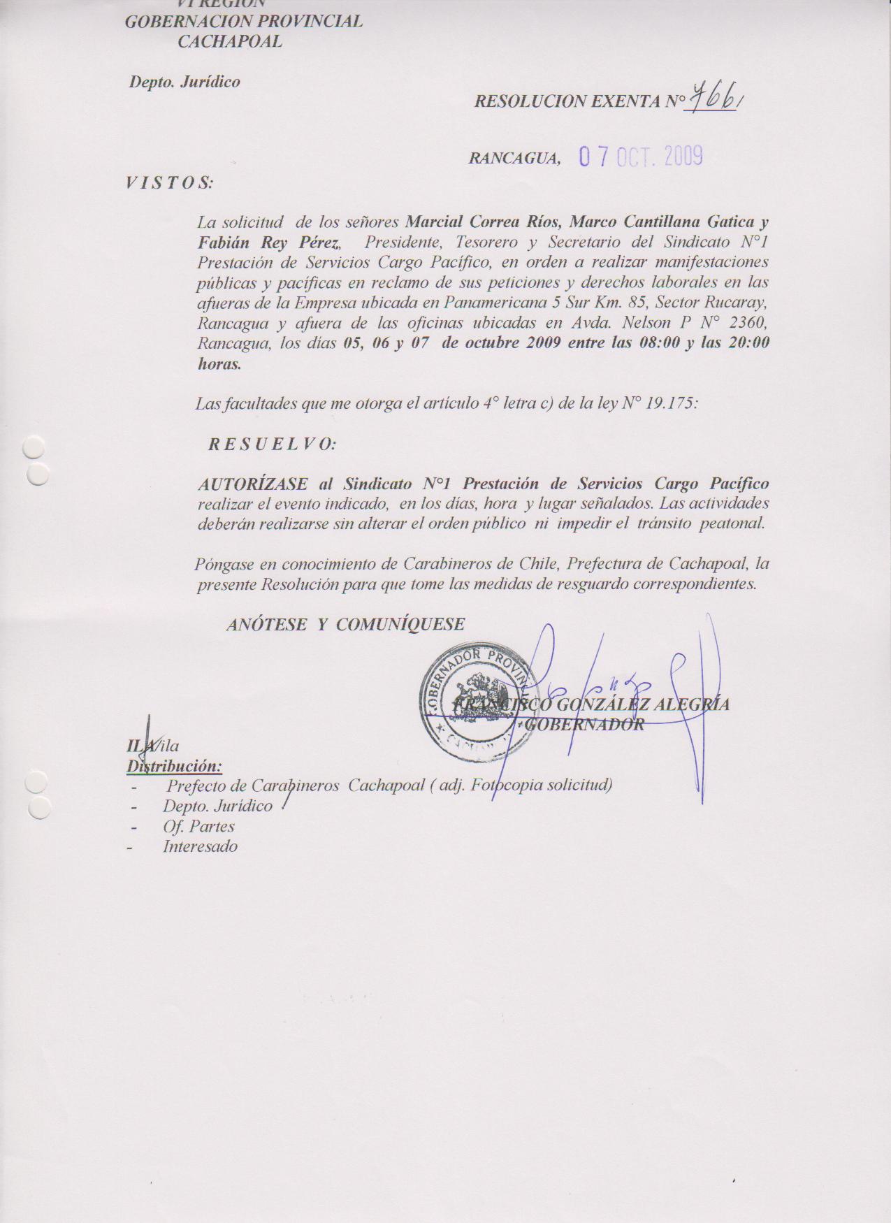 AUTORIZA MARCHAS EN LAS COMUNA DE RANCAGUA |