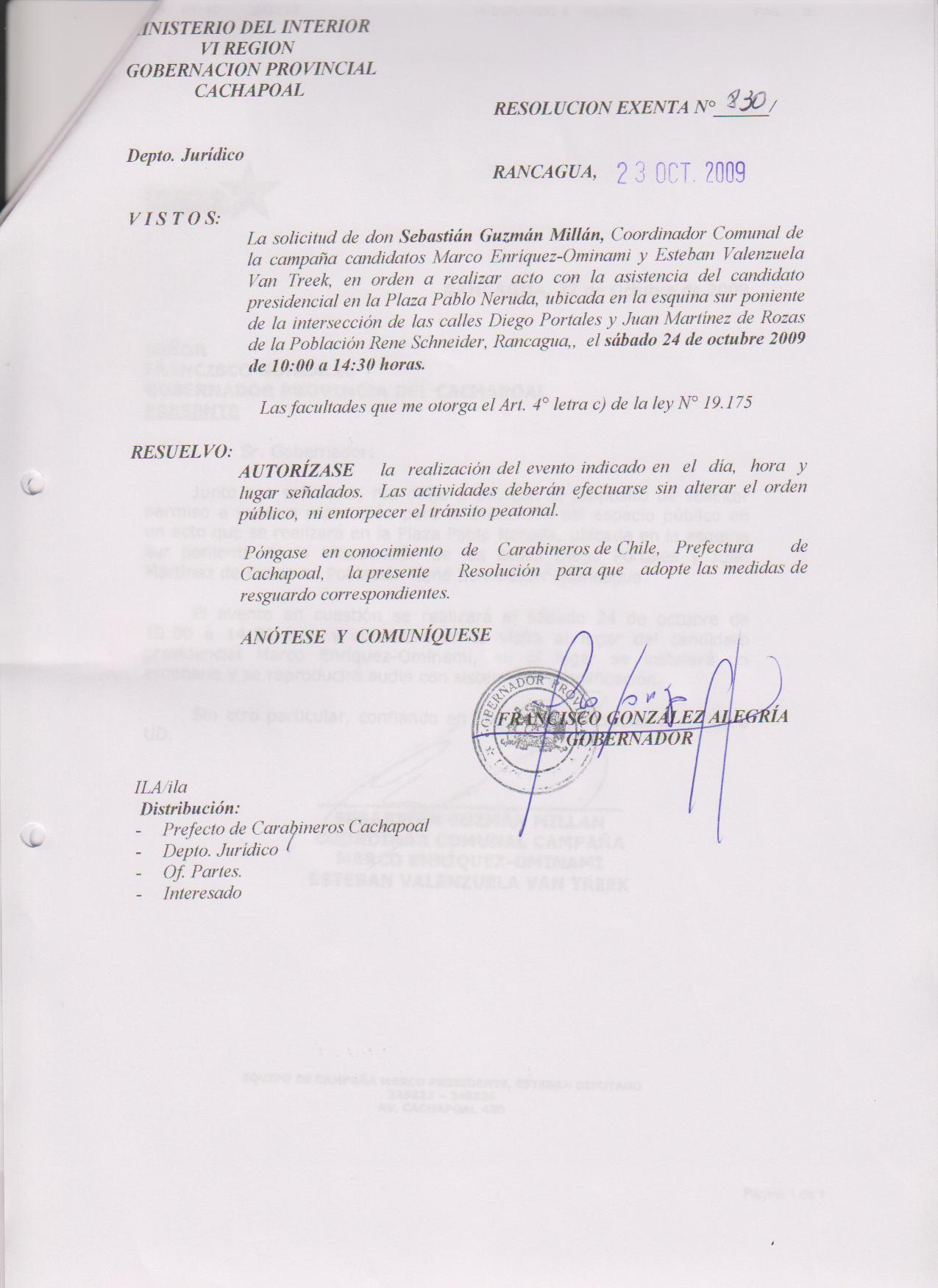 AUTORIZA MARCHA EN LA COMUNA DE RANCAGUA |