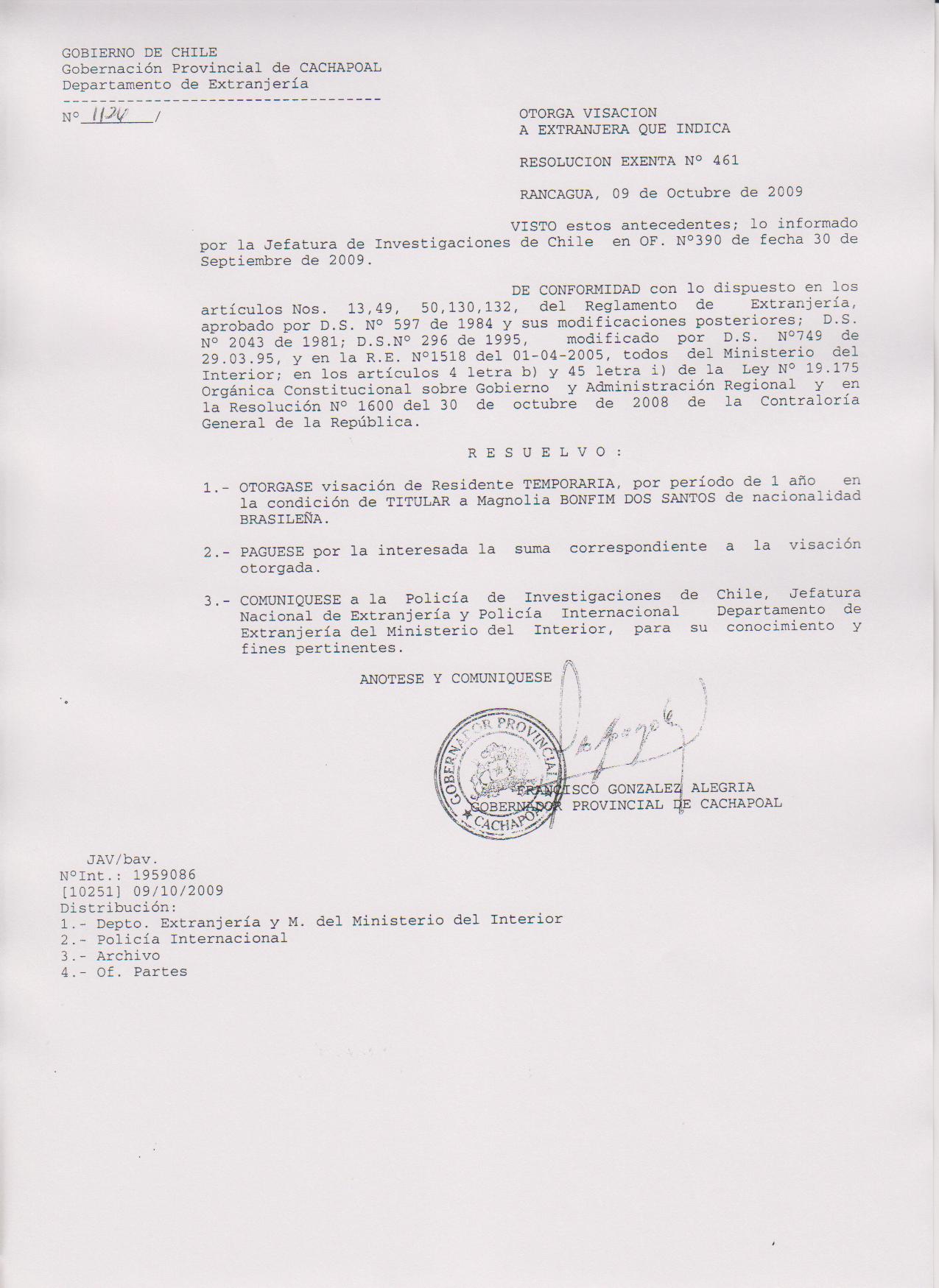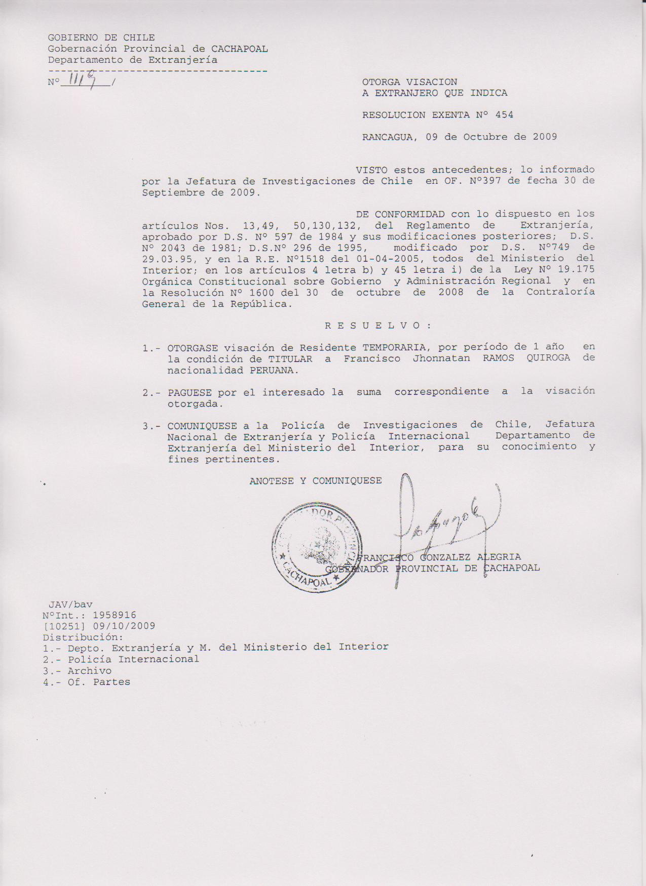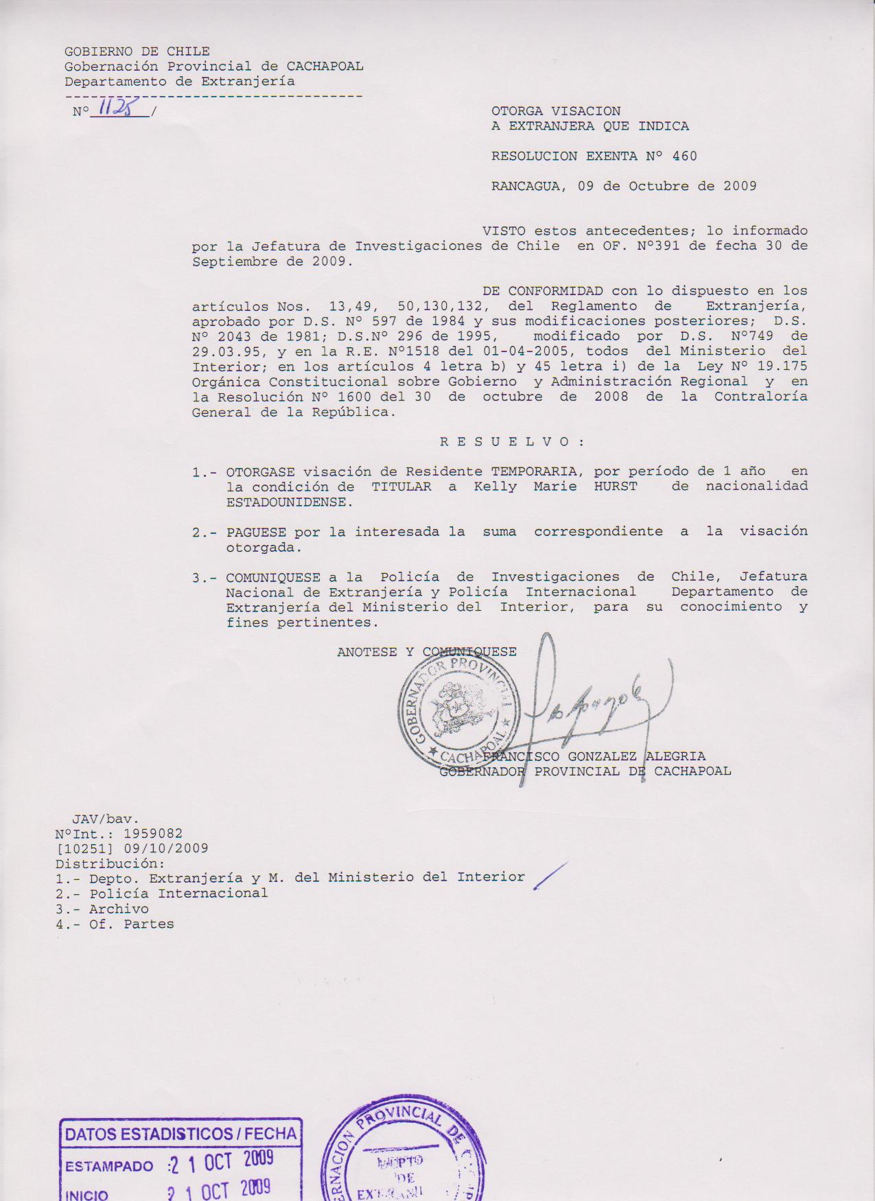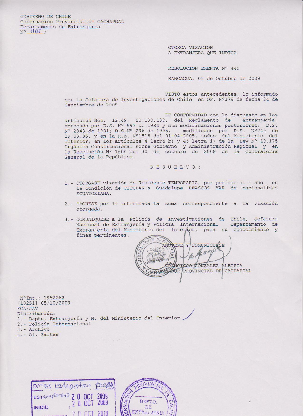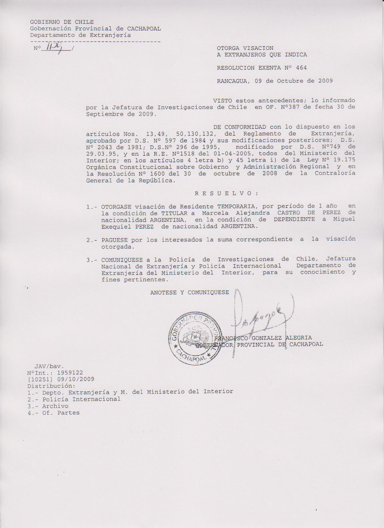 OTORGA PRORROGA VISA |