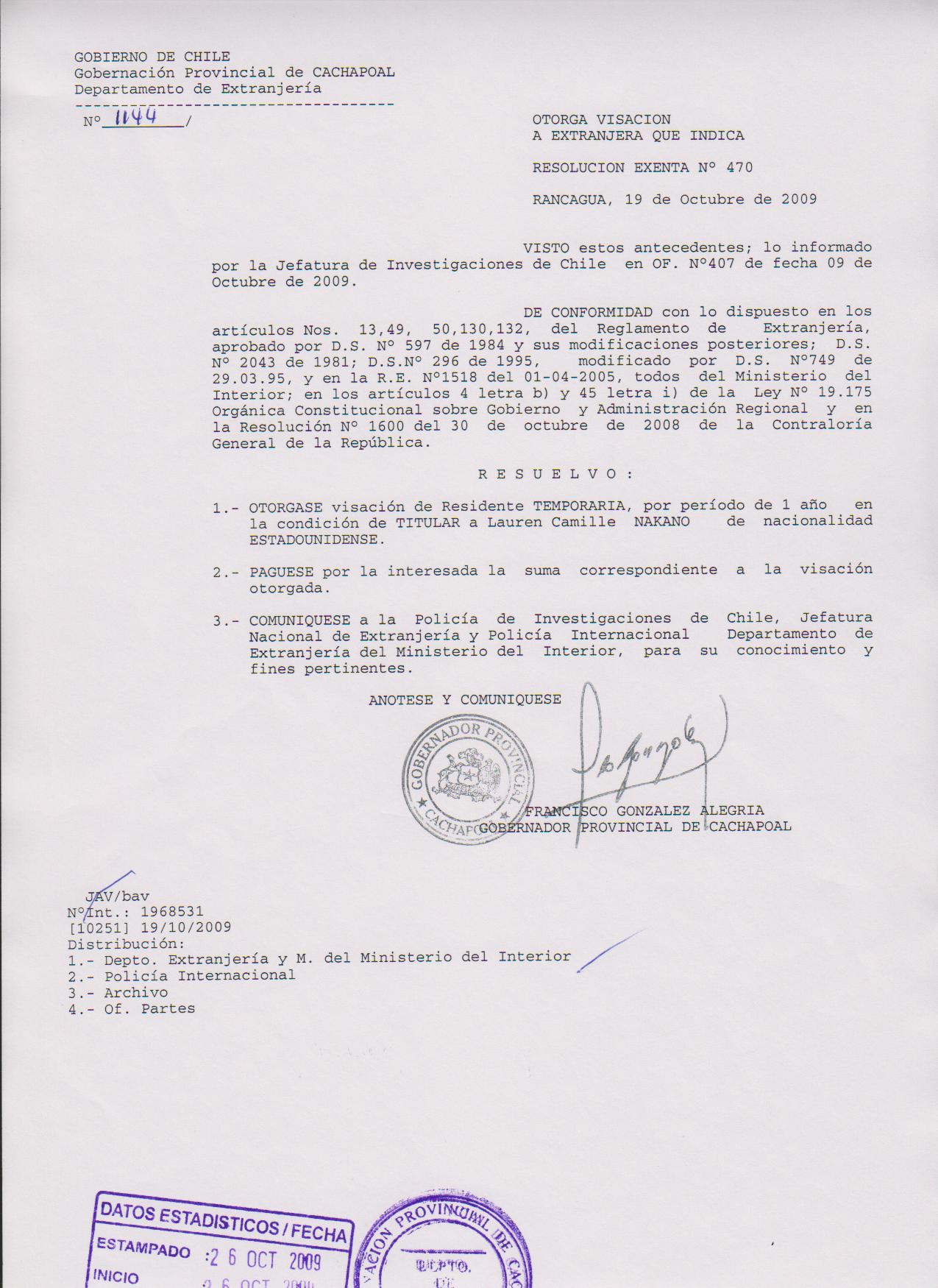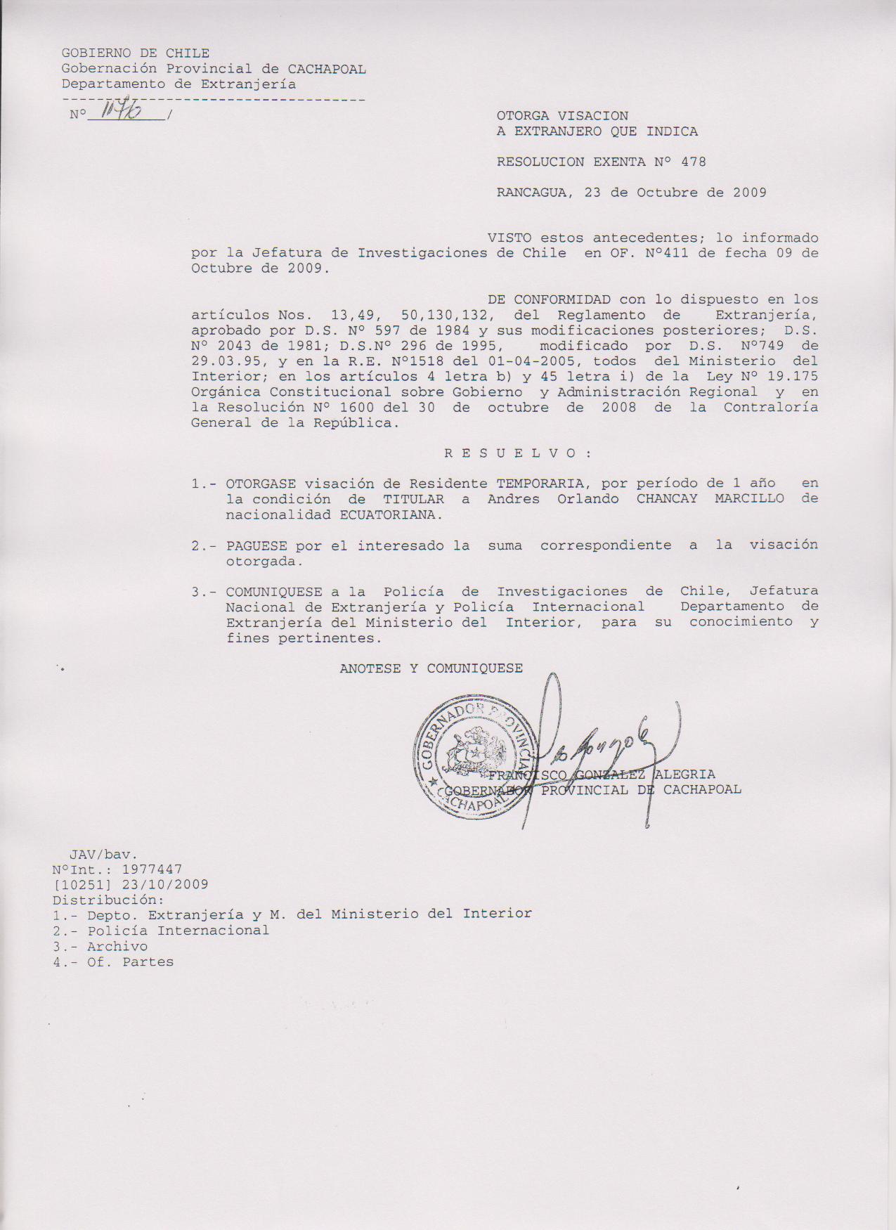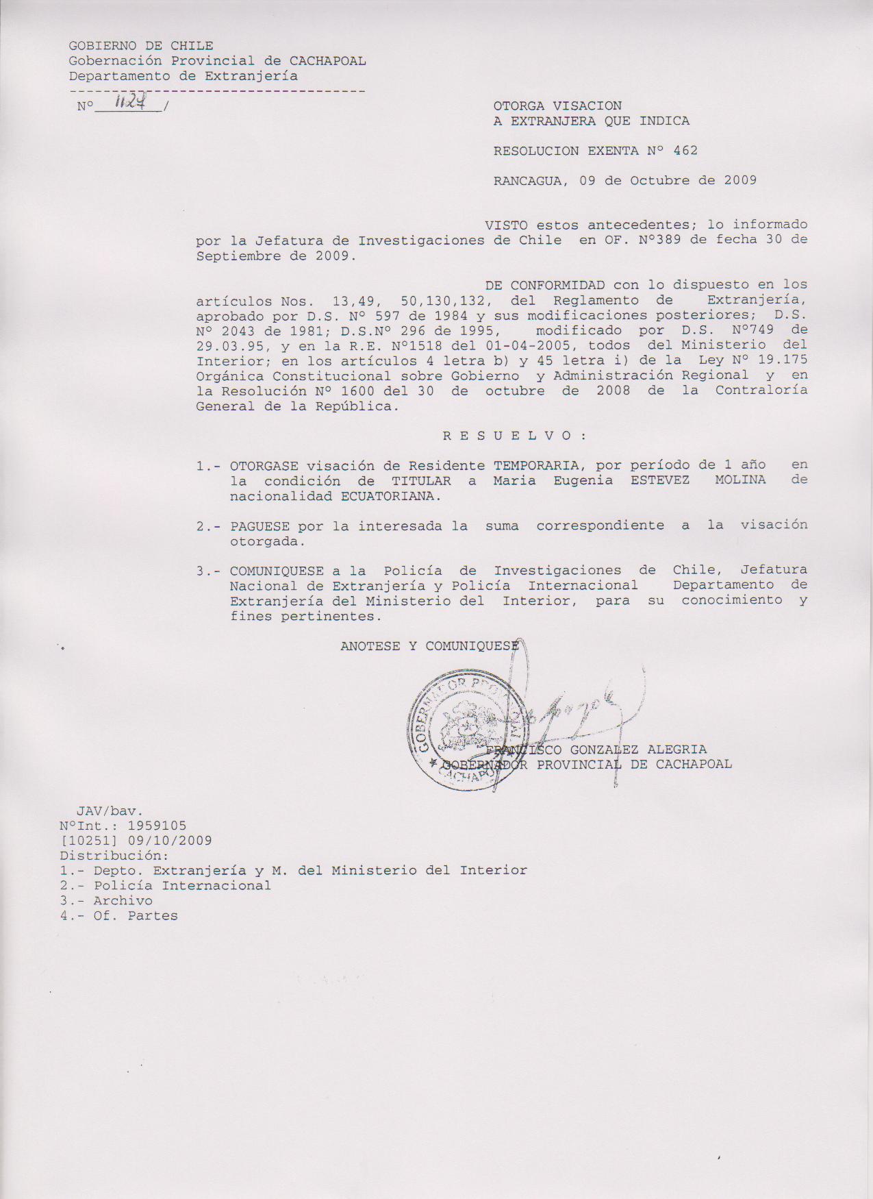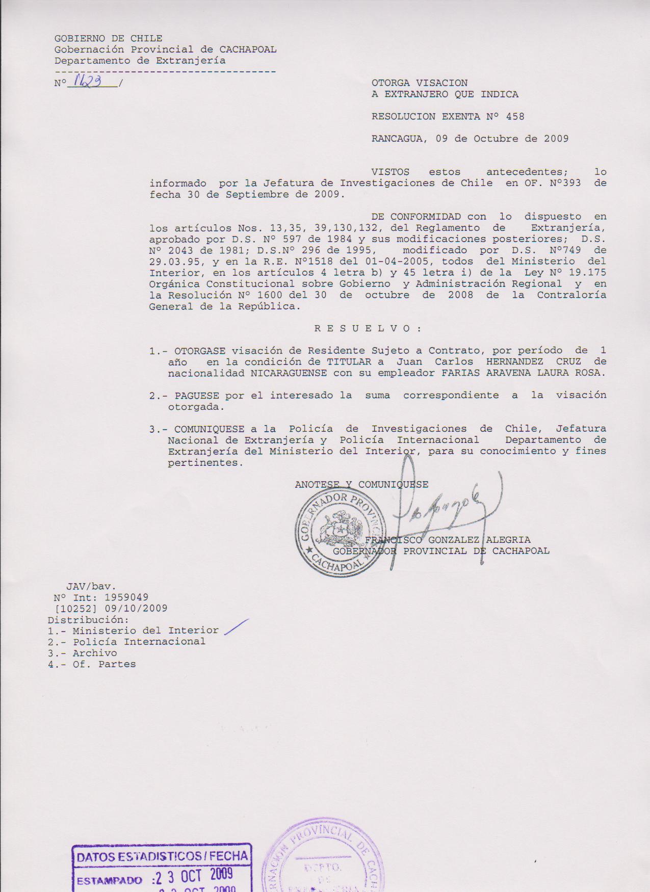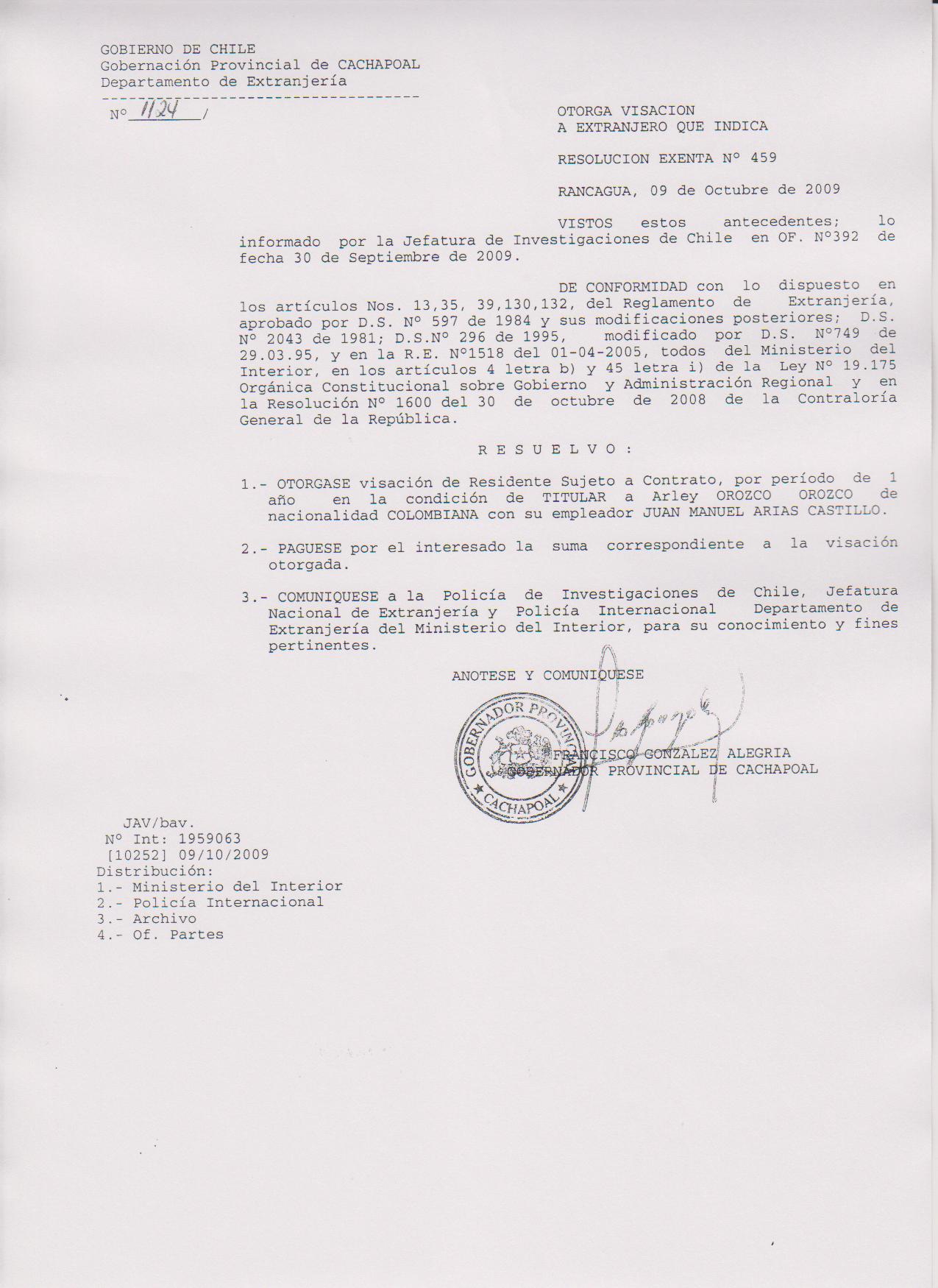 OTORGA PRORROGA VISA |
