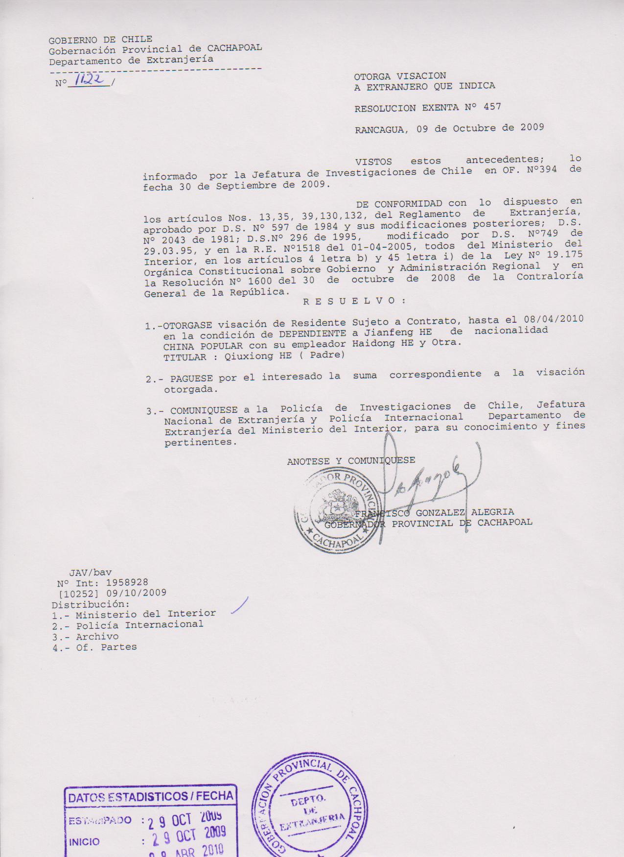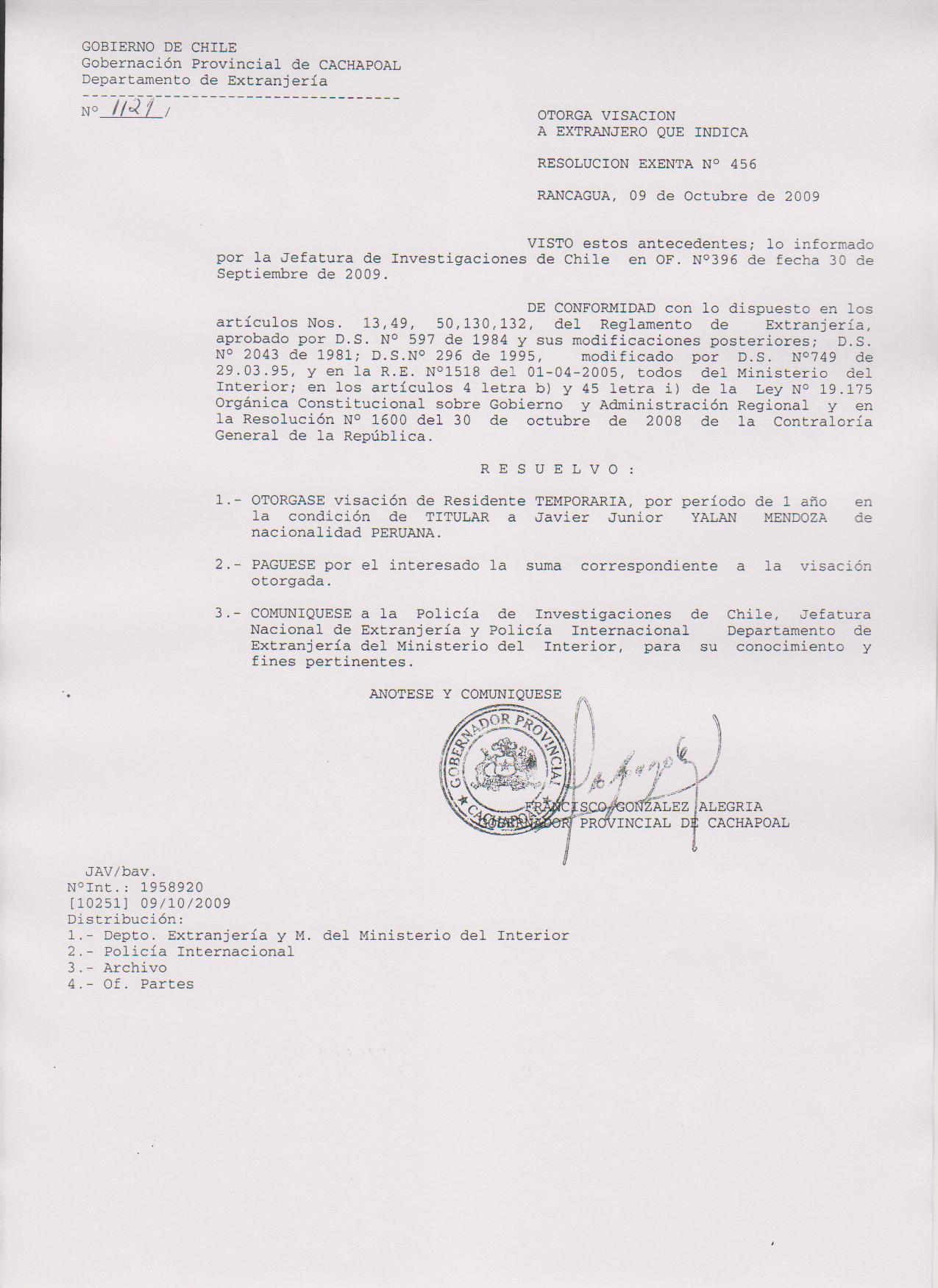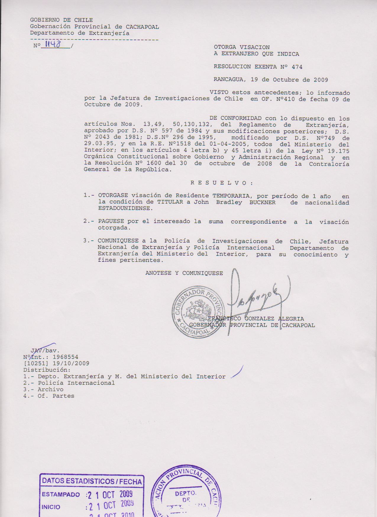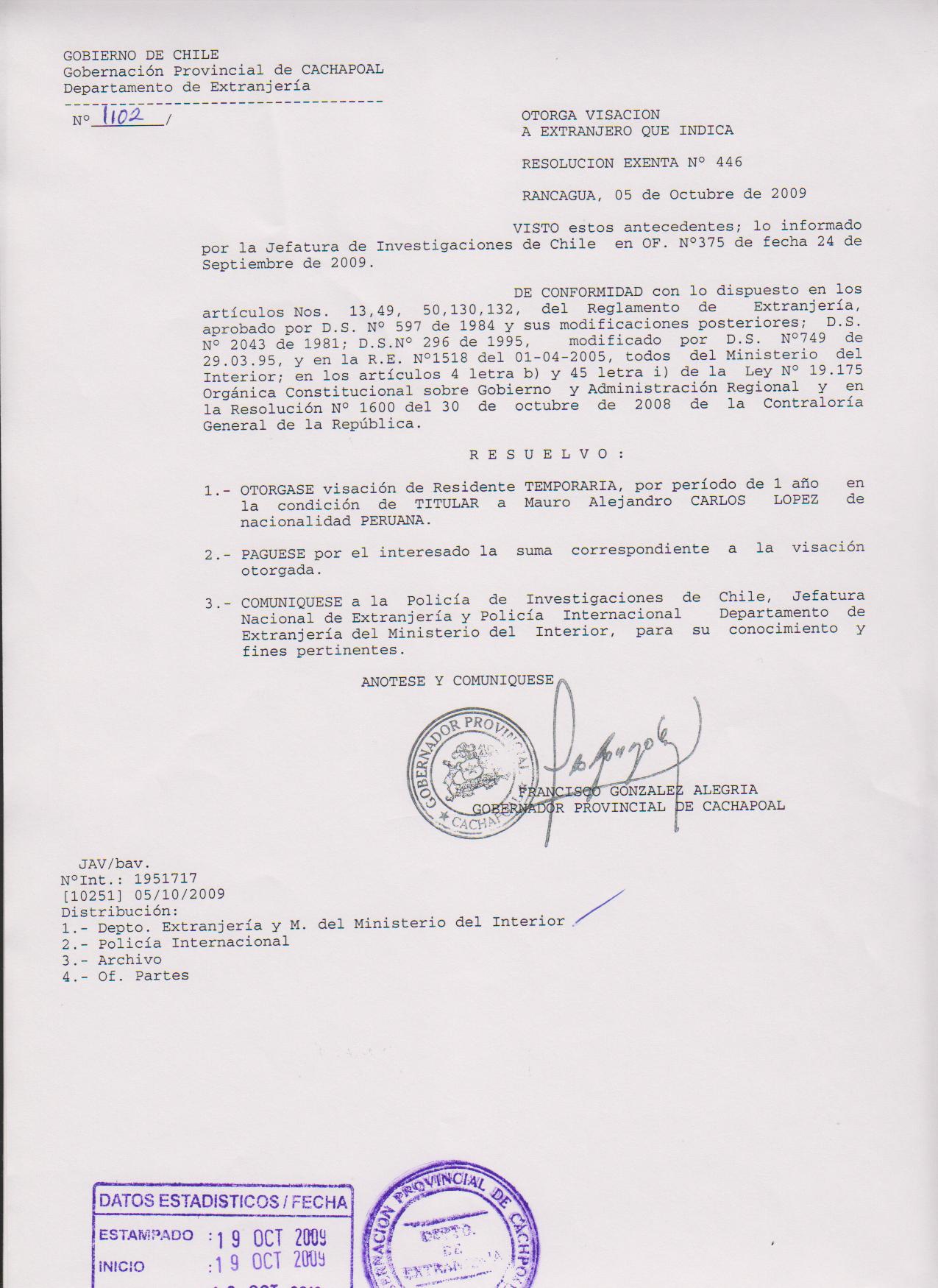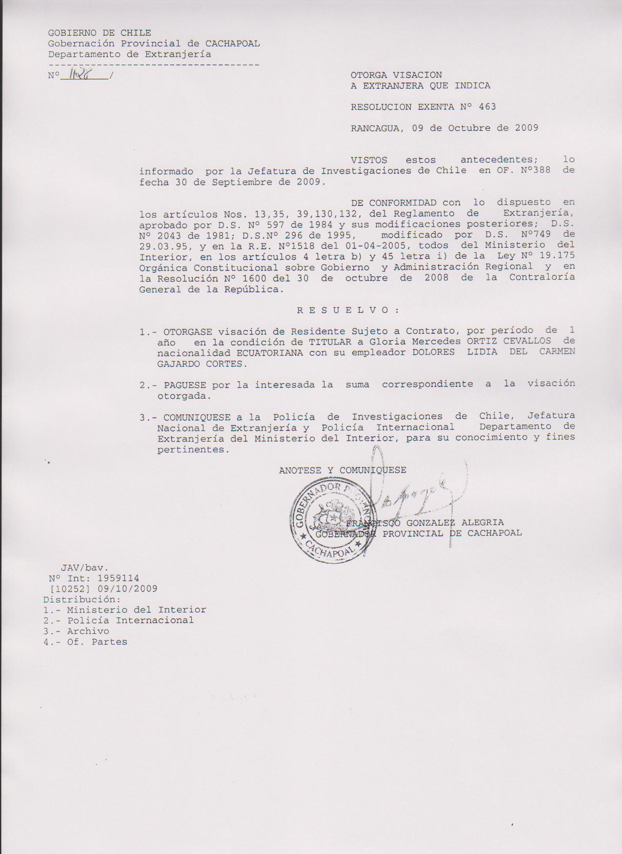 OTORGA PRORROGA VISA |