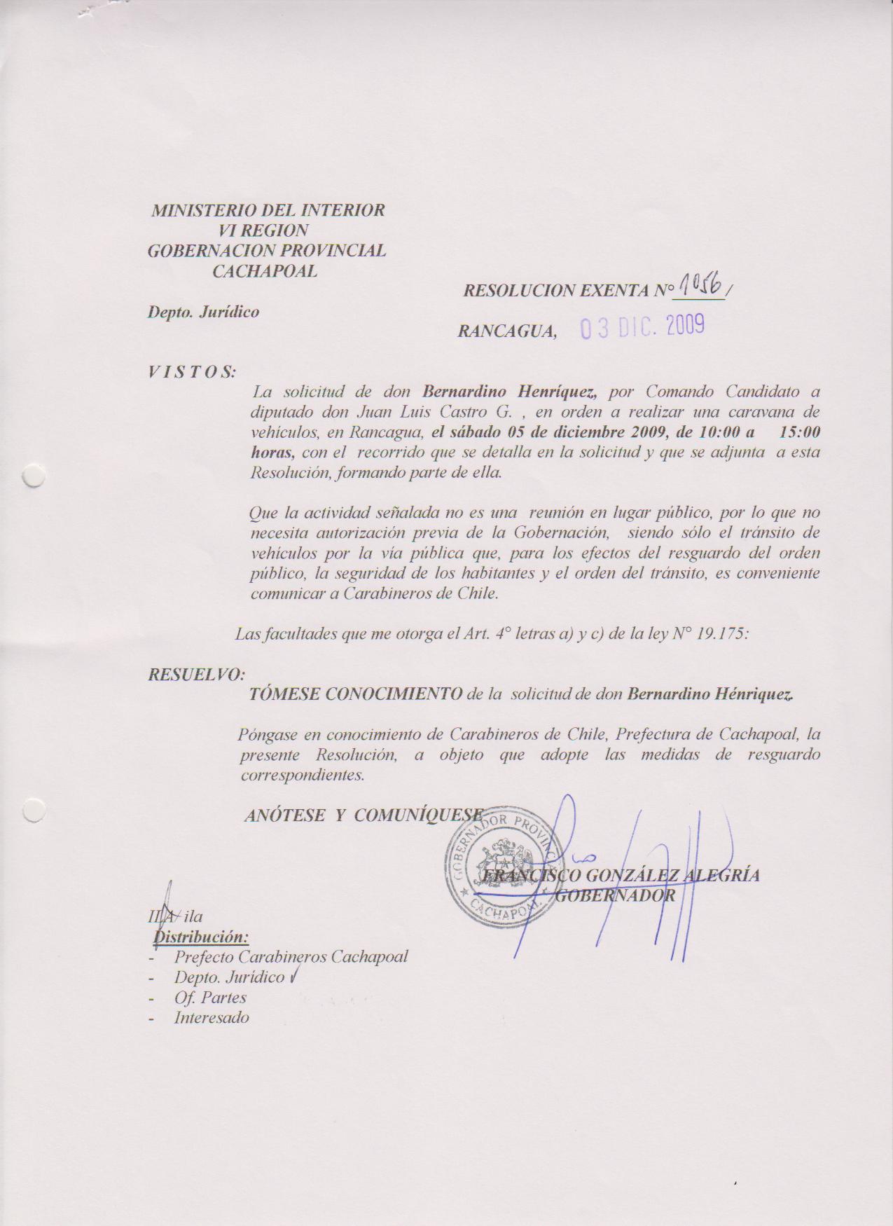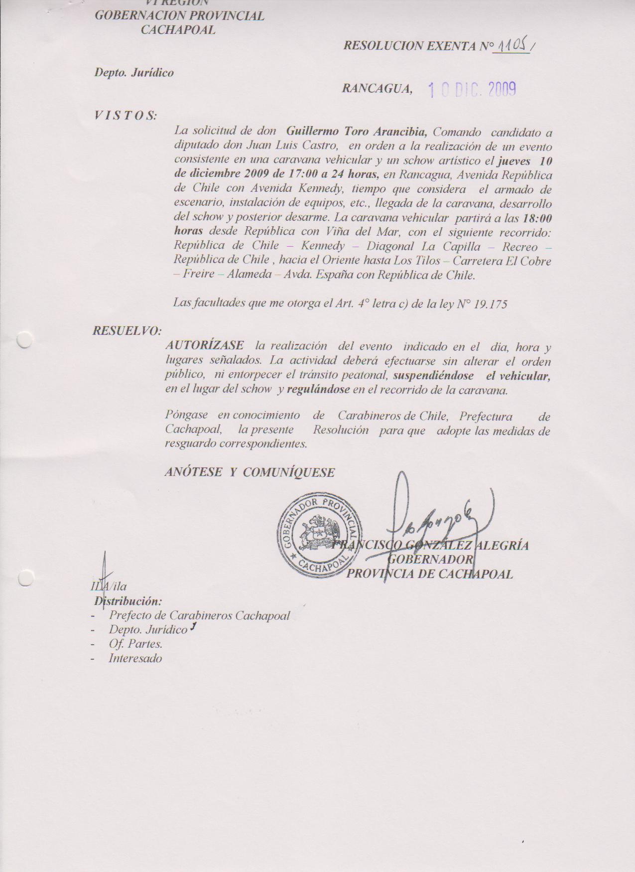 AUTORIZA CARAVANA DE VEHICULOS EN LA COMUNA DE RANCAGUA |