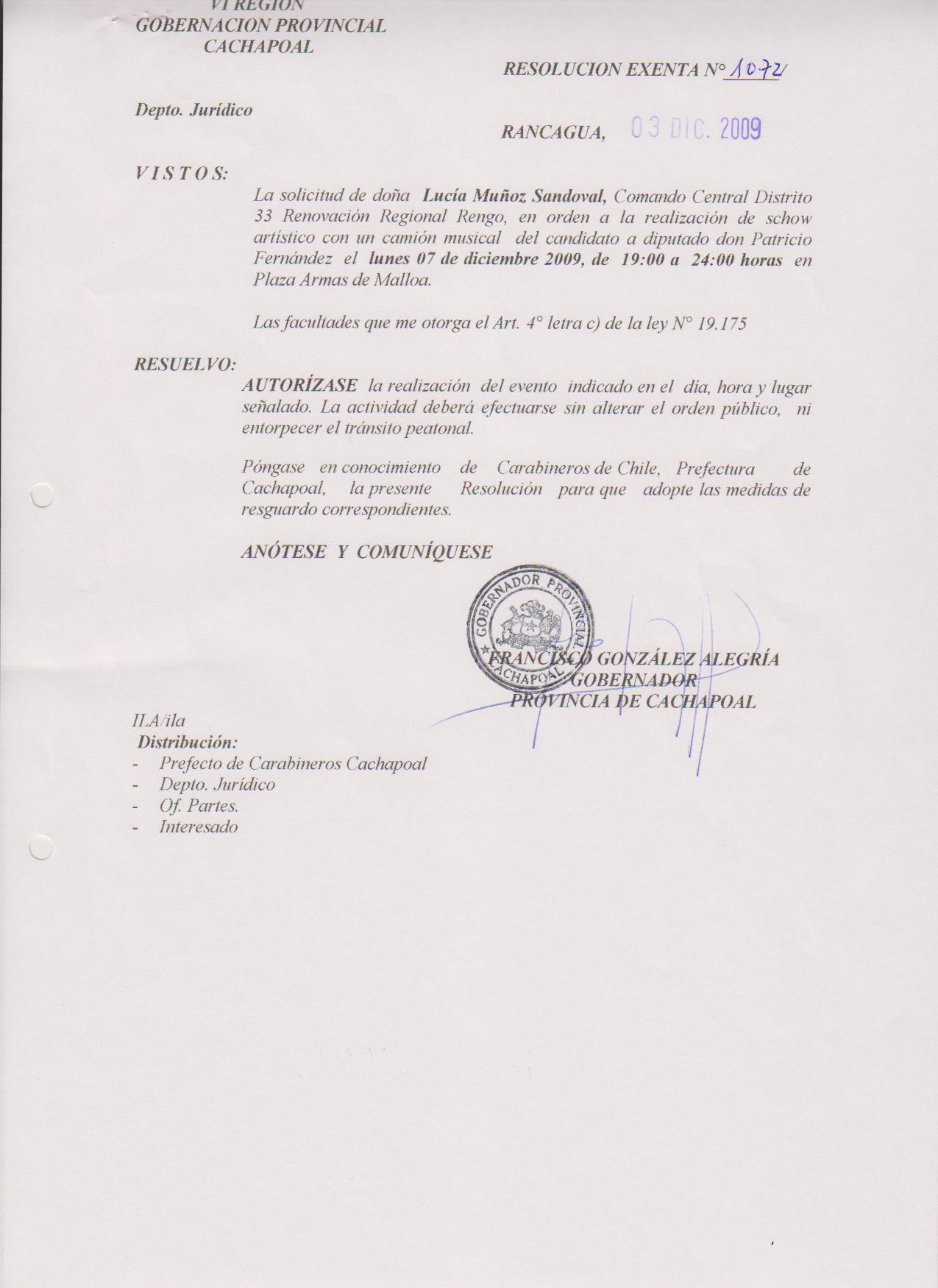 AUTORIZA SHOW POLITICO ARTISTICO EN LA COMUNA DE RENGO |