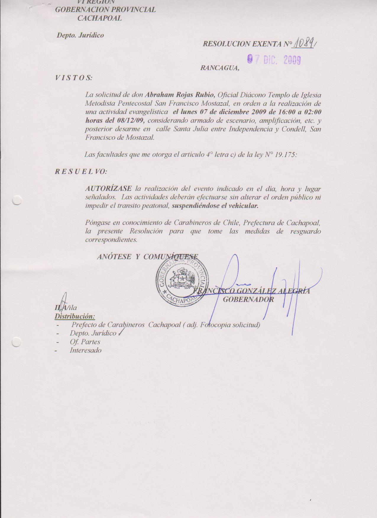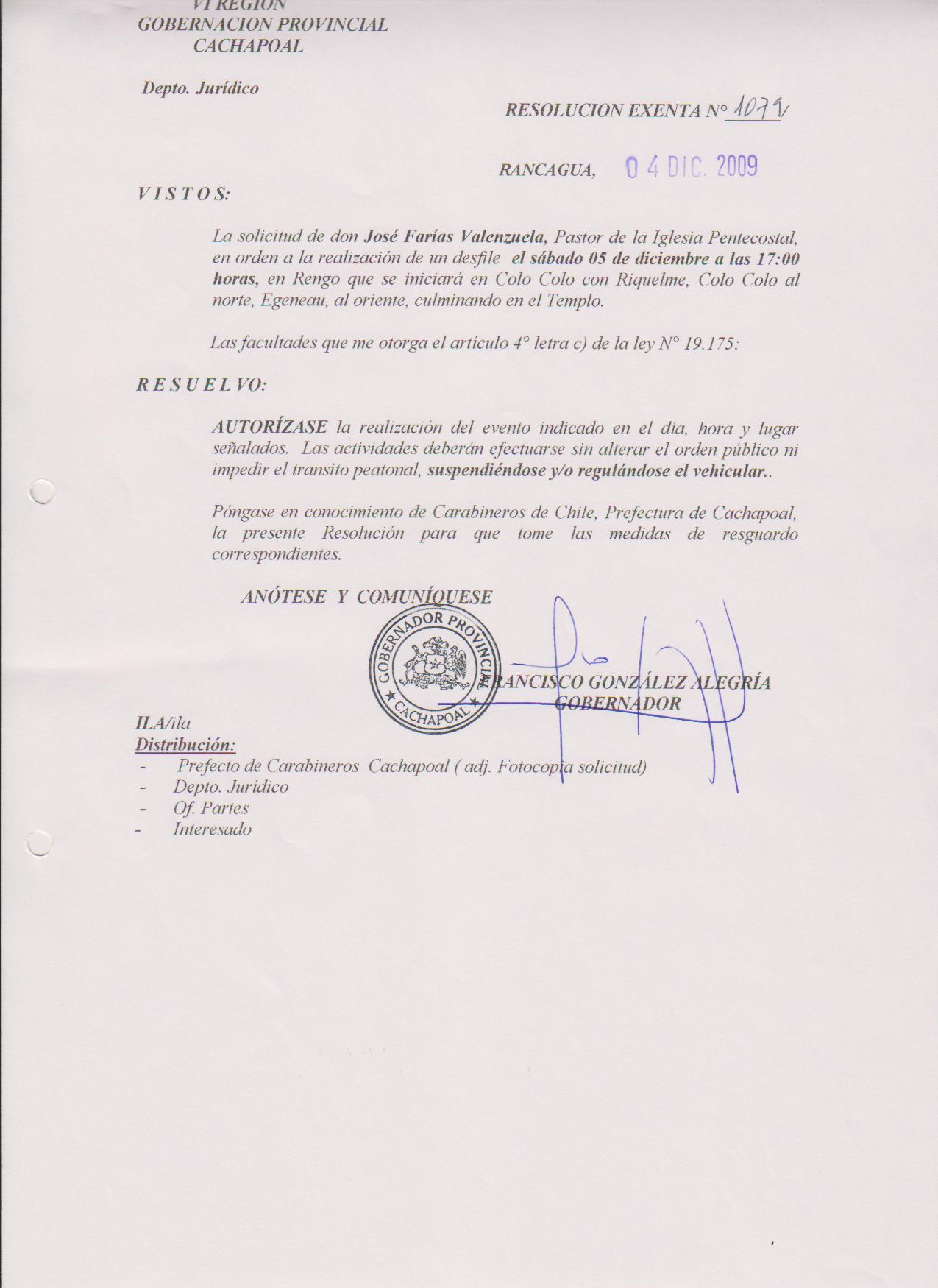 AUTORIZA PUBLICA EVANGELICA EN LA COMUNA DE RENGO |