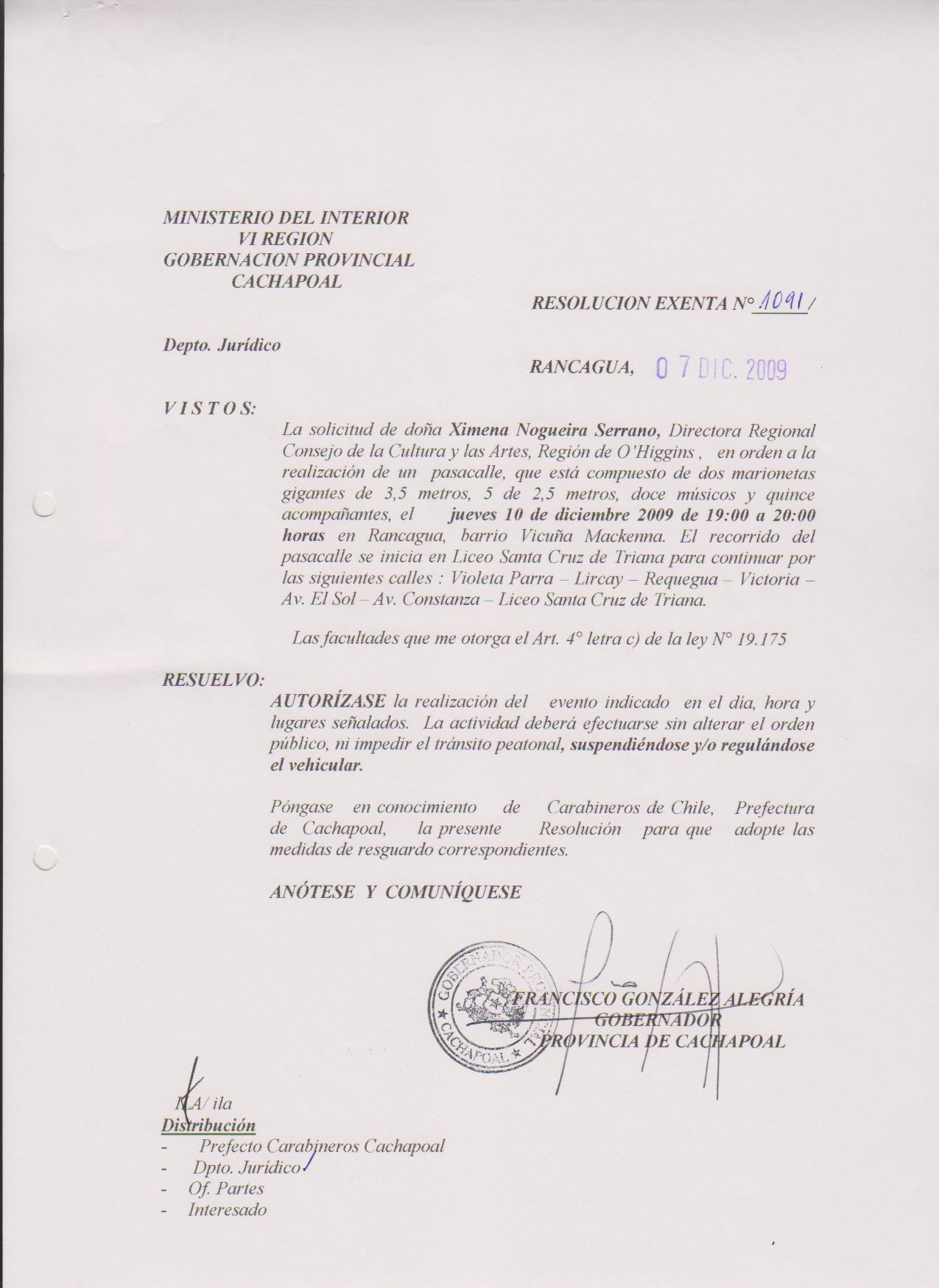 AUTORIZA REALIZACION DE PASACALLES EN LA COMUNA DE RANCAGUA |