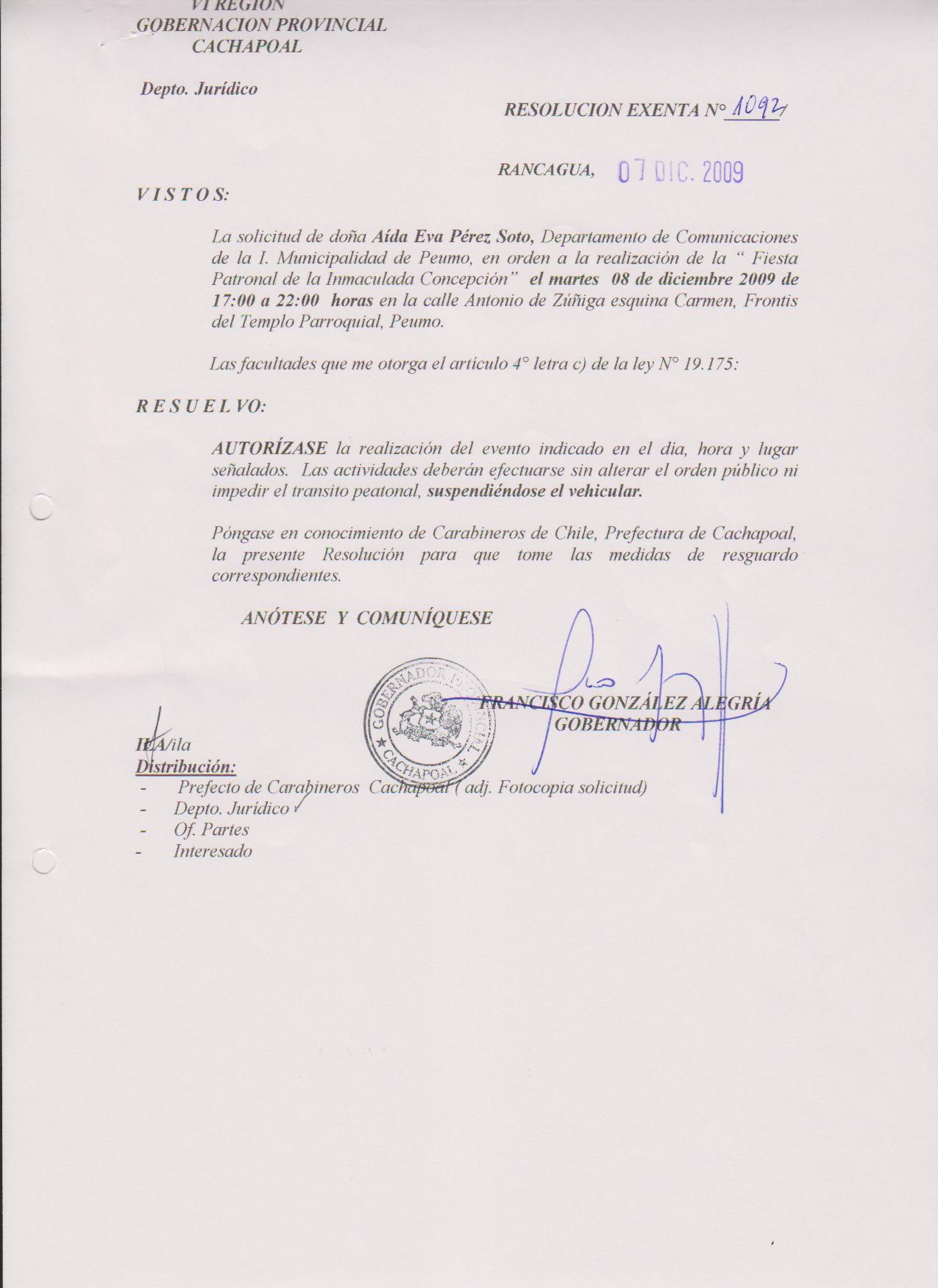 AUTORIZA FESTIVIDAD RELIGIOSA EN LA COMUNA DE PEUMO |