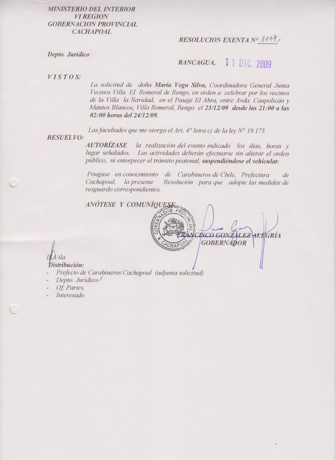 AUTORIZA CELEBRACION NAVIDAD VILLA EL ROMERAL COMUNA DE RENGO |