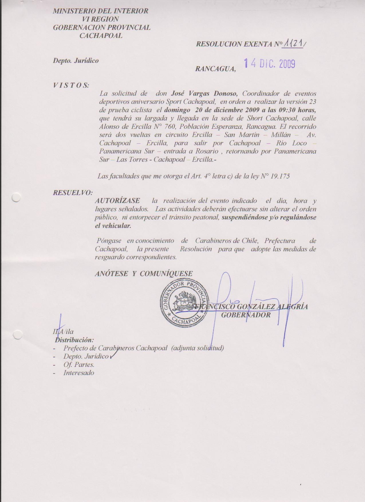AUTORIZA ACTIVIDAD DEPORTIVA EN LA COMUNA DE RANCAGUA |