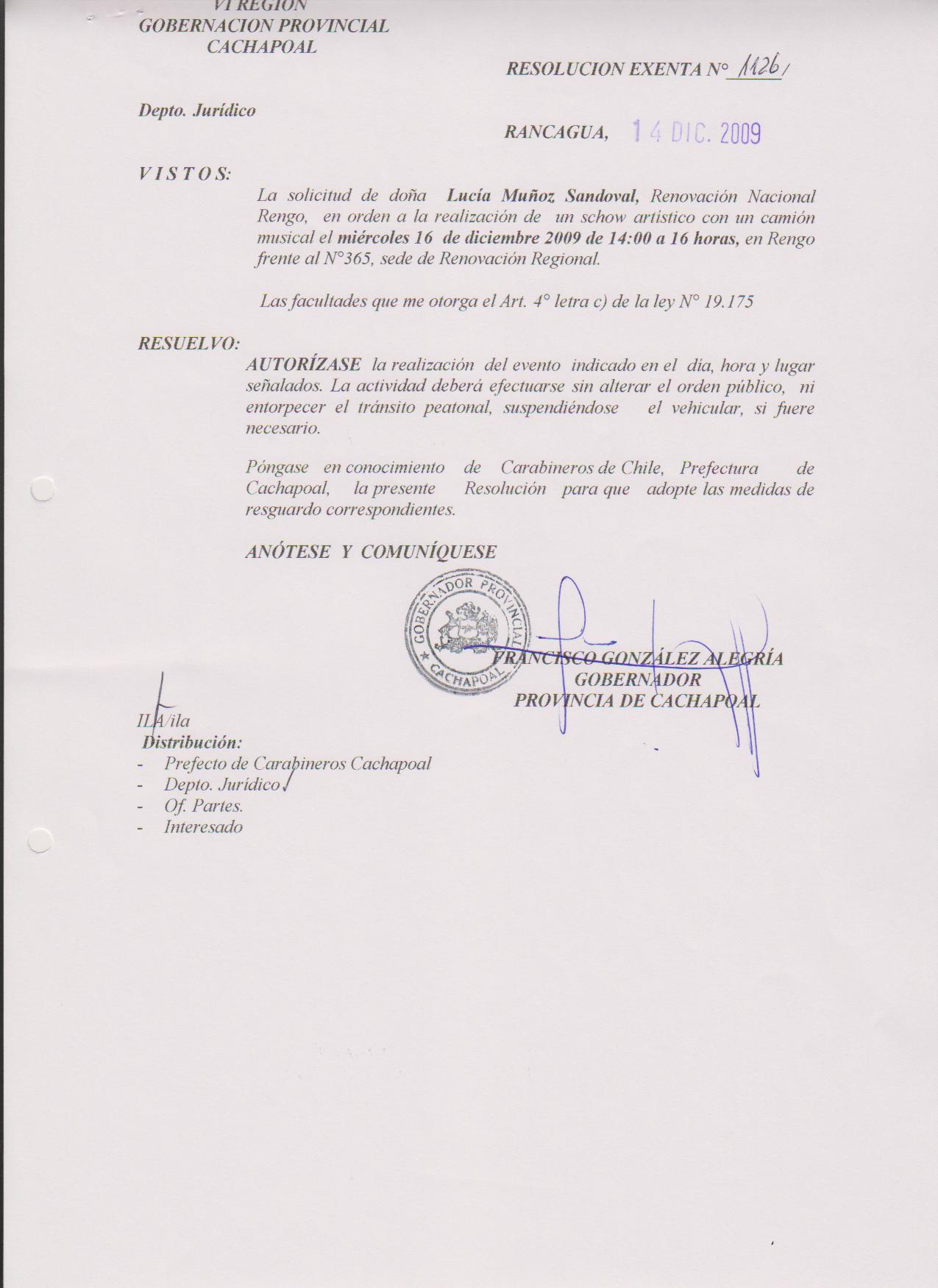 AUTORIZA SHOW POLITICO CULTURAL EN LA COMUNA DE RENGO |