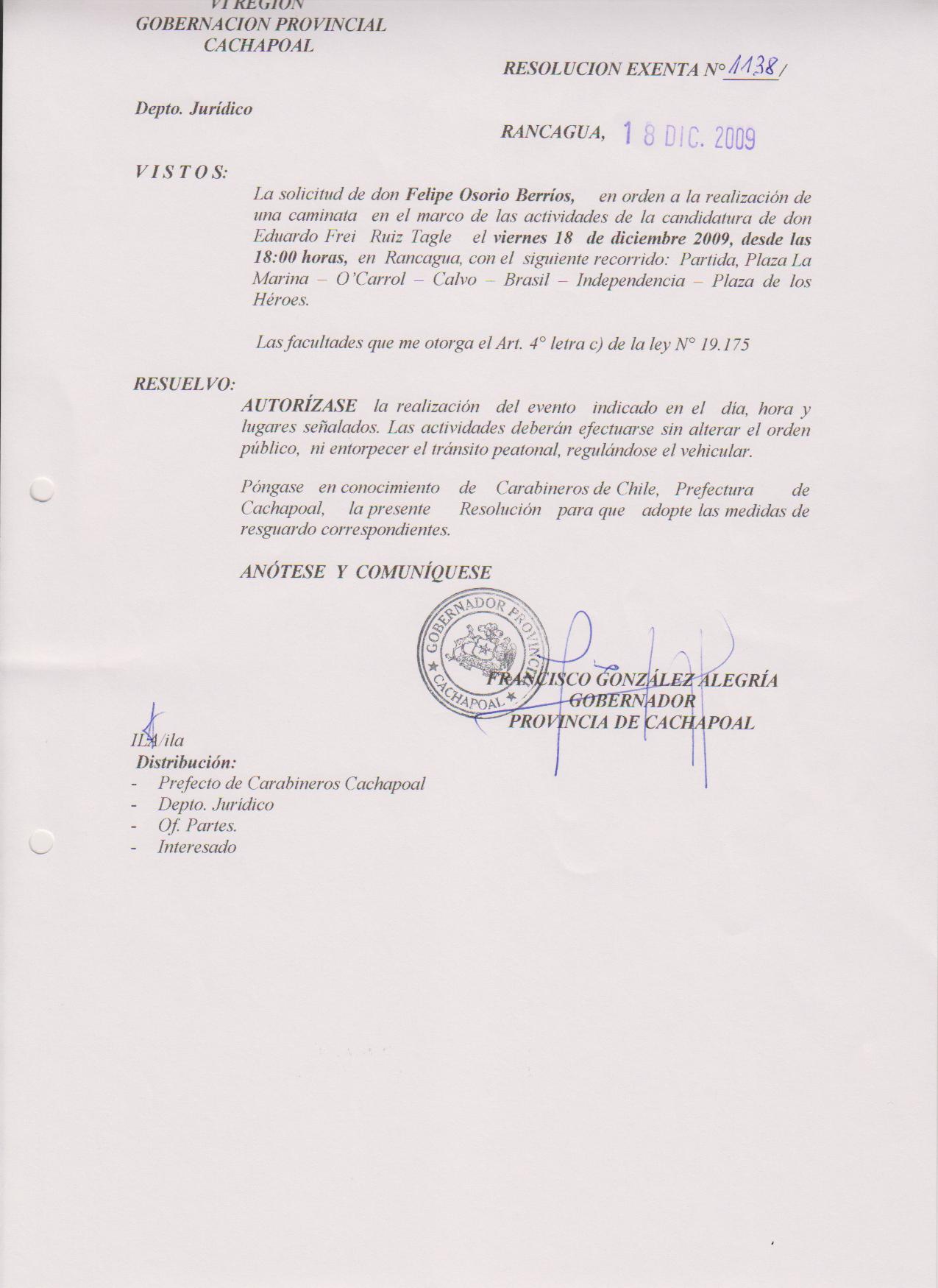 AUTORIZA ACTO DE CIERRE CAMPAÑA POLITICA EN LA COMUNA DE RANCAGUA |