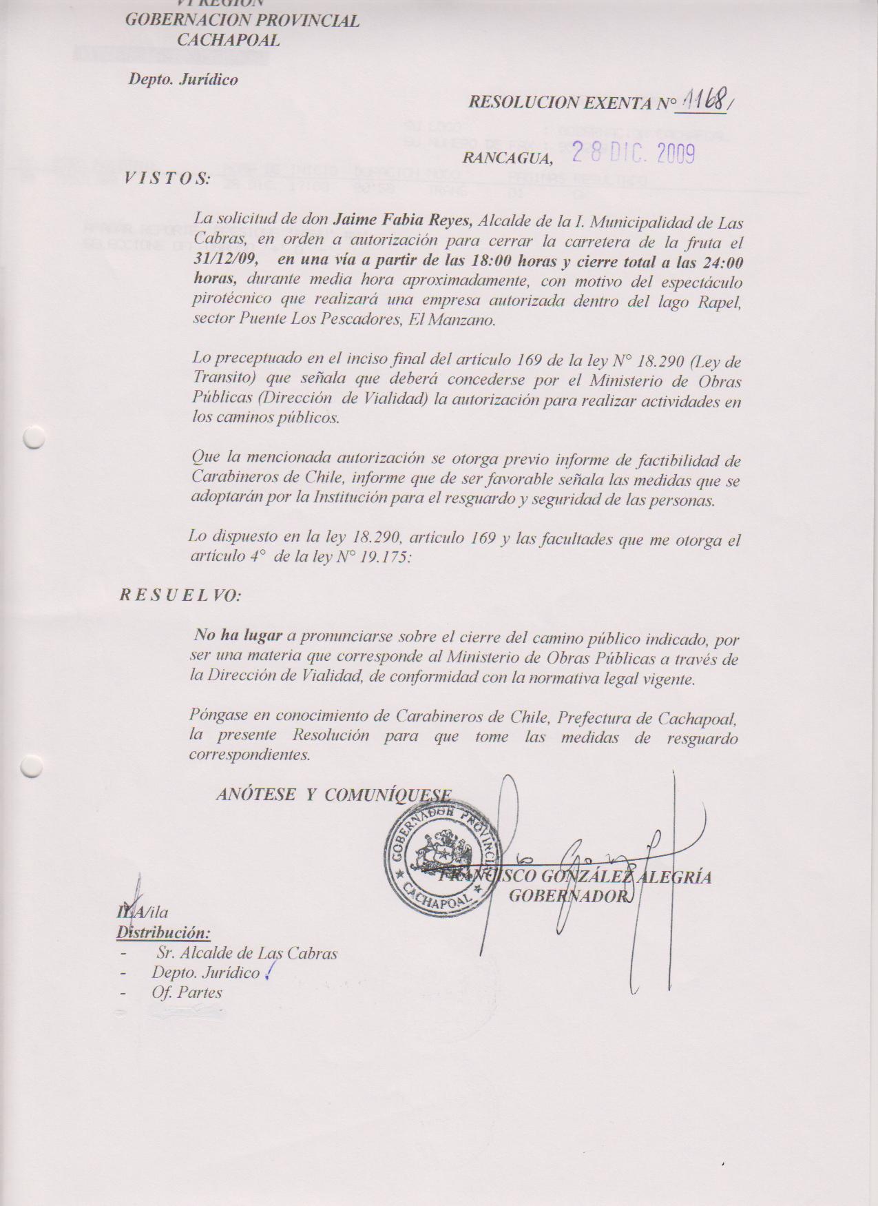AUTORIZA CIERRE DE CALLE EN LA COMUNA DE LAS CABRAS |