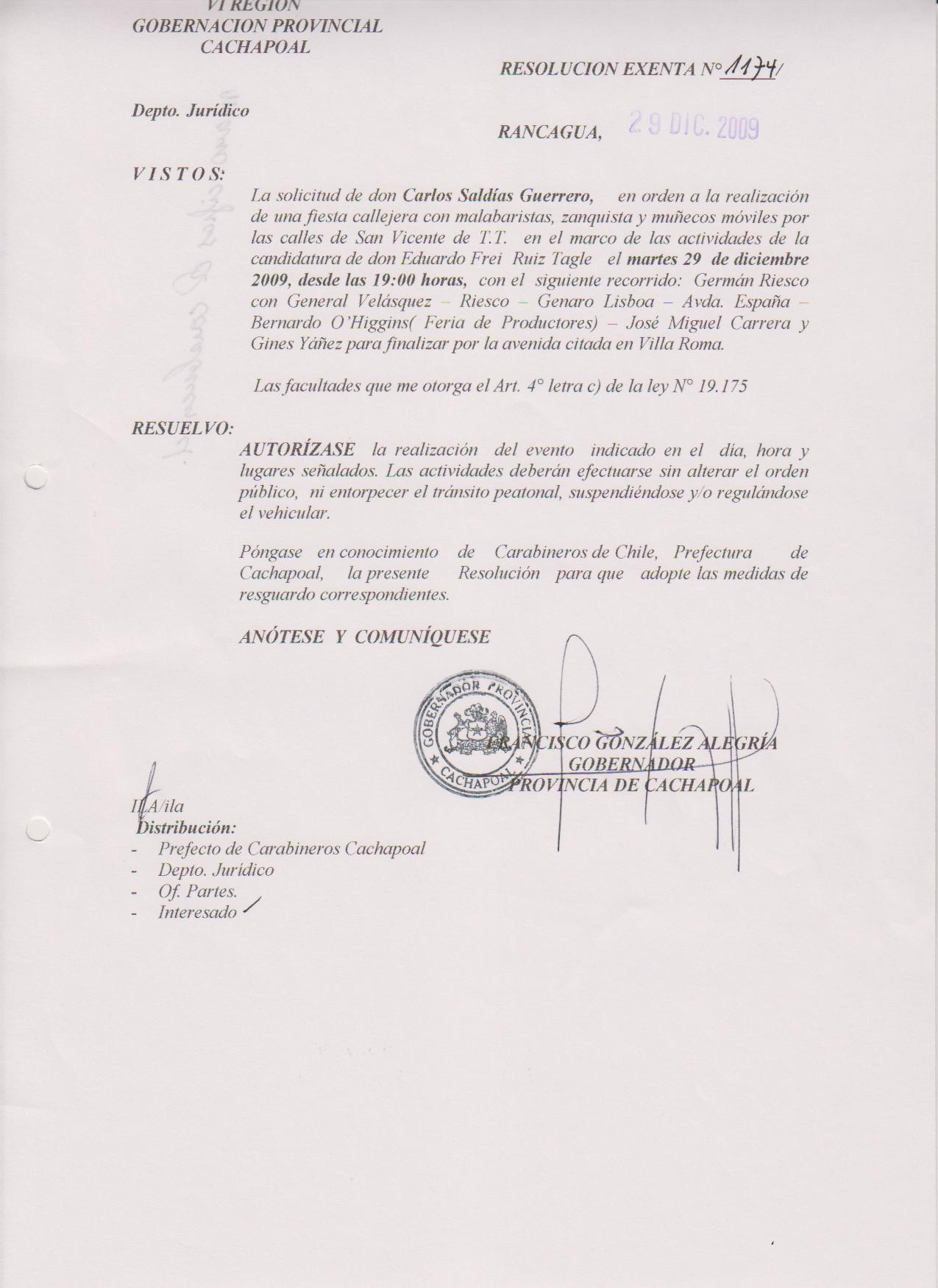 AUTORIZA EVENTO POLITICO CULTURAL EN LA COMUNA DE RANCAGUA |