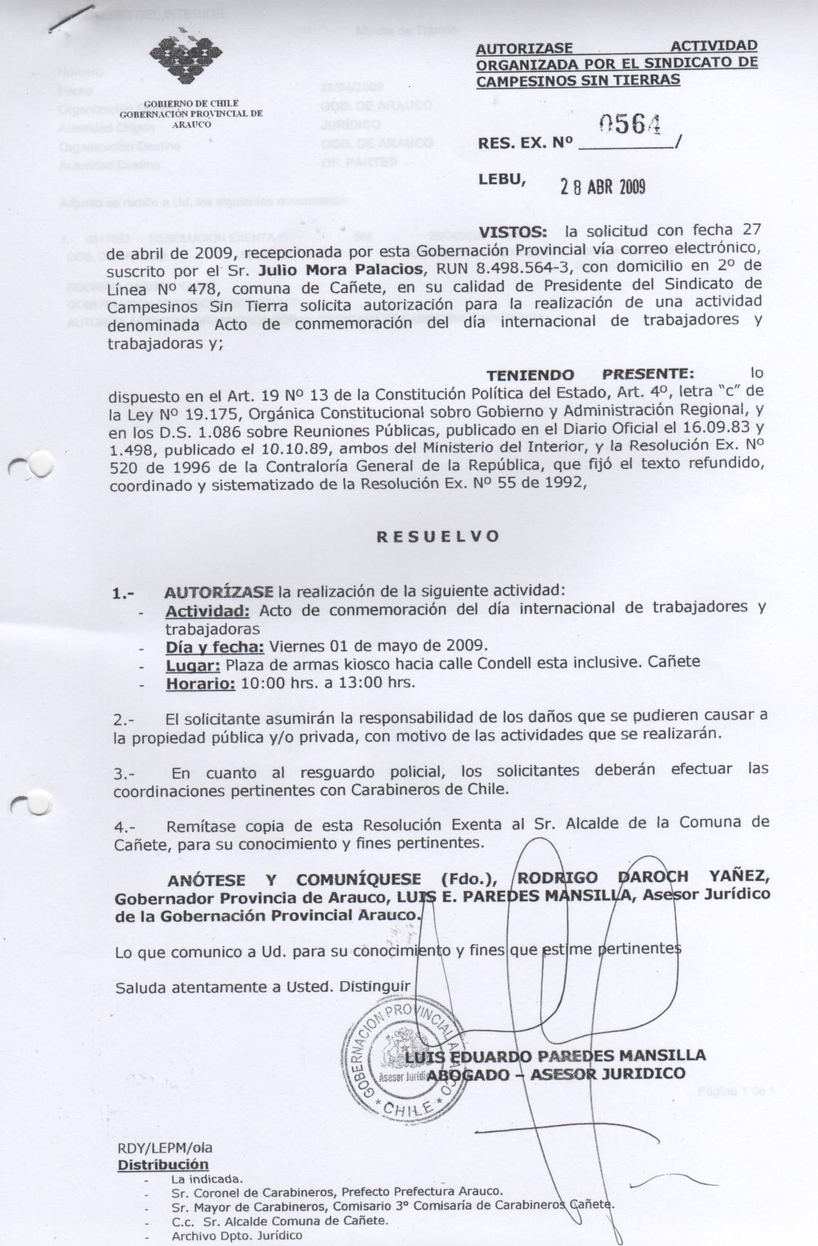 Autorizase actividad denominada acto de conmemoración del día internacional de trabajadores y trabajadoras. |