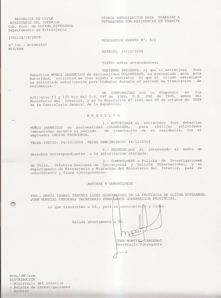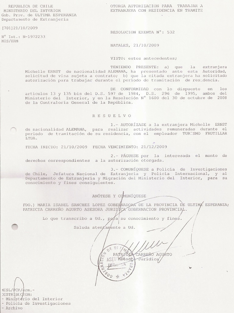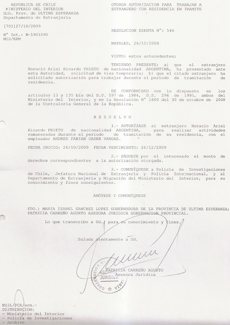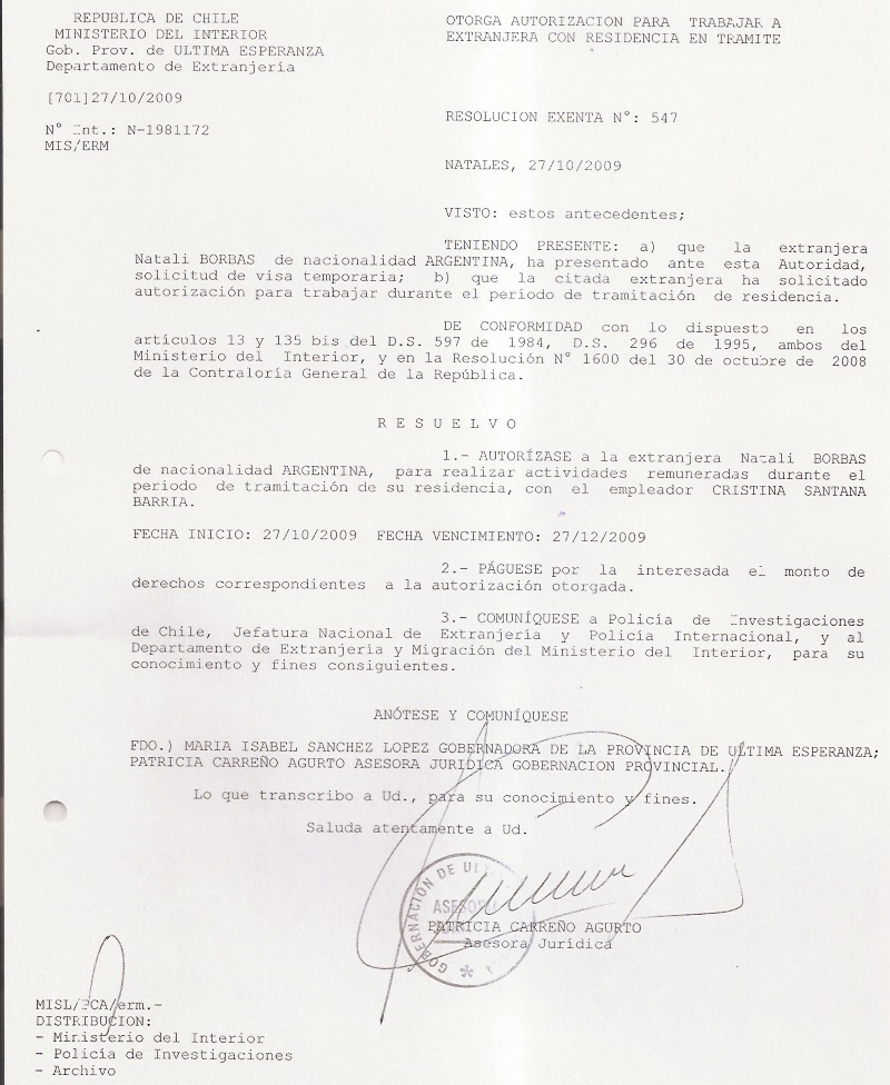 OTORGA AUTORIZACION PARA TRABAJARA EXTRANJERA |