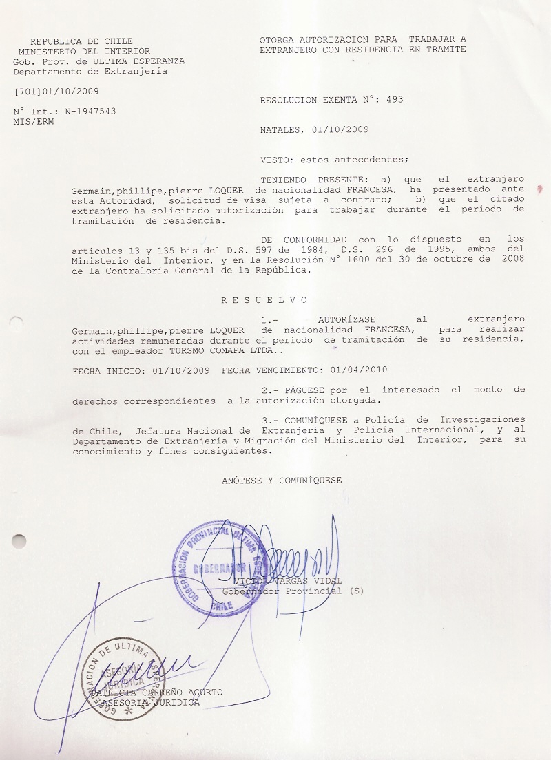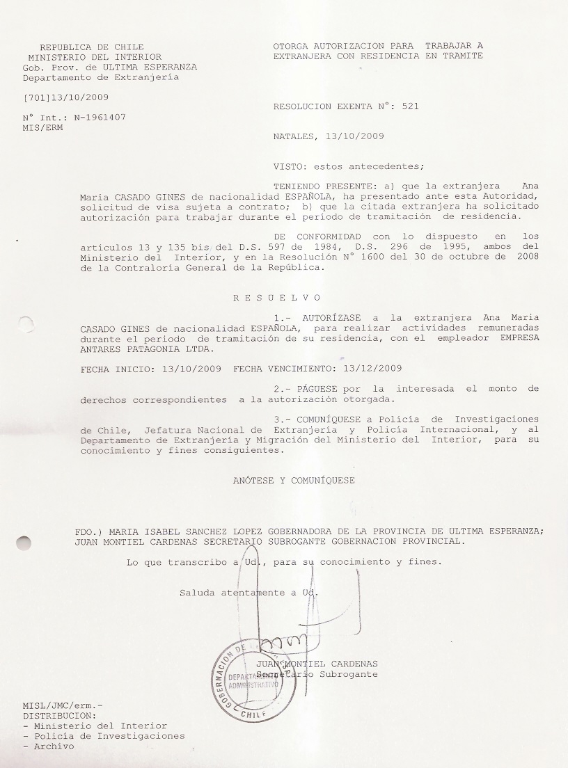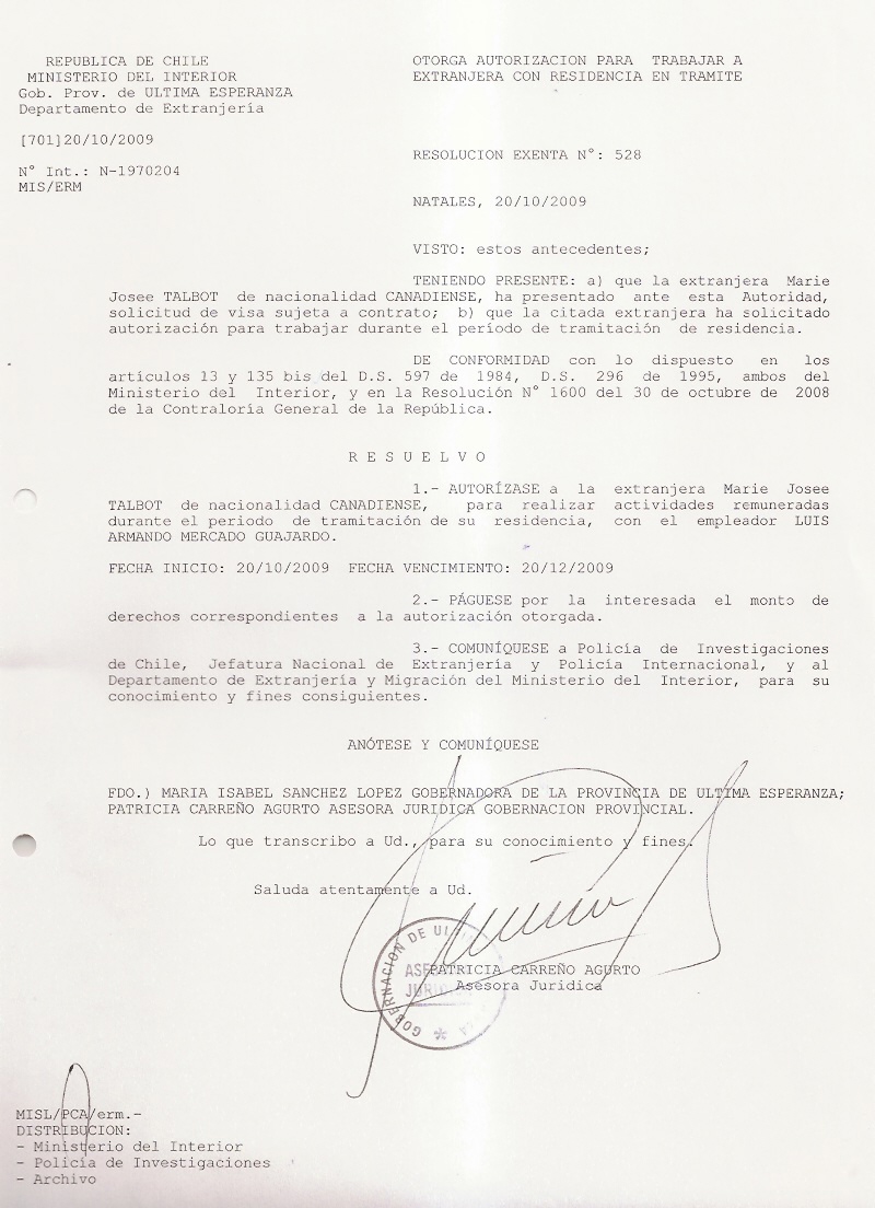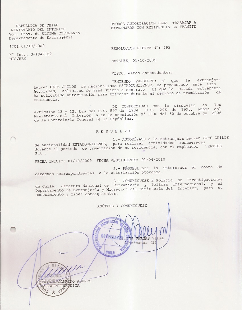 OTORGA AUTORIZACION PARA TRABAJARA EXTRANJERA |