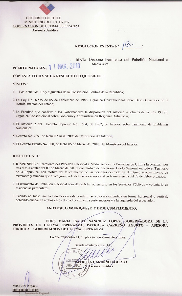 IZAMIENTO DEL PABELLON NACIONAL A MEDIA ASTA POR FALLECIMIENTO DE PERSONAS EN LA CATASTROFE OCURRIDA EN EL NORTE DEL PAIS |