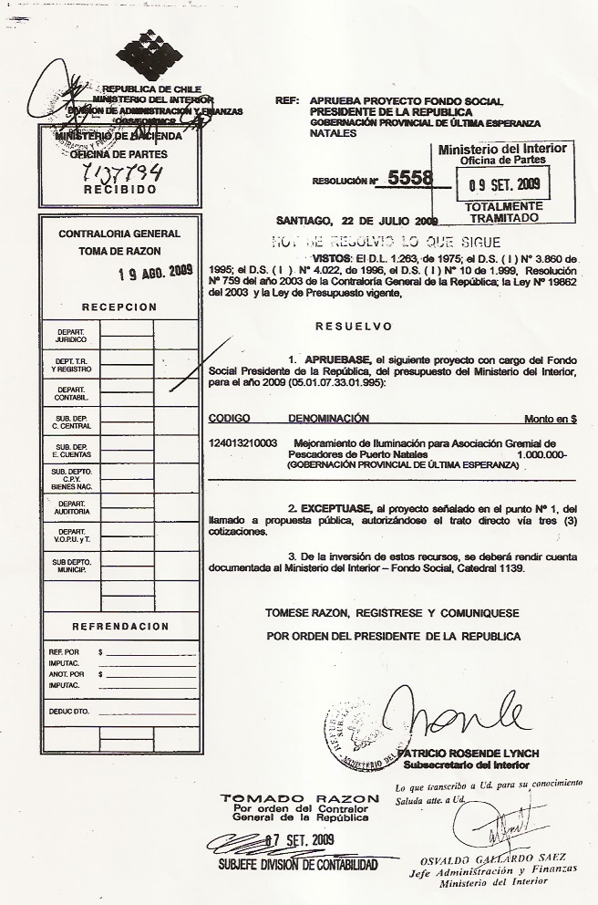 | 3 | FSPR Asociacion de Pescadores | Resolucion 5558 | 22/07/2009 | 31/12/2009 | PESOS | 1000000 | ASIGNACION DIRECTA | - | Ver nómina de beneficiarios |