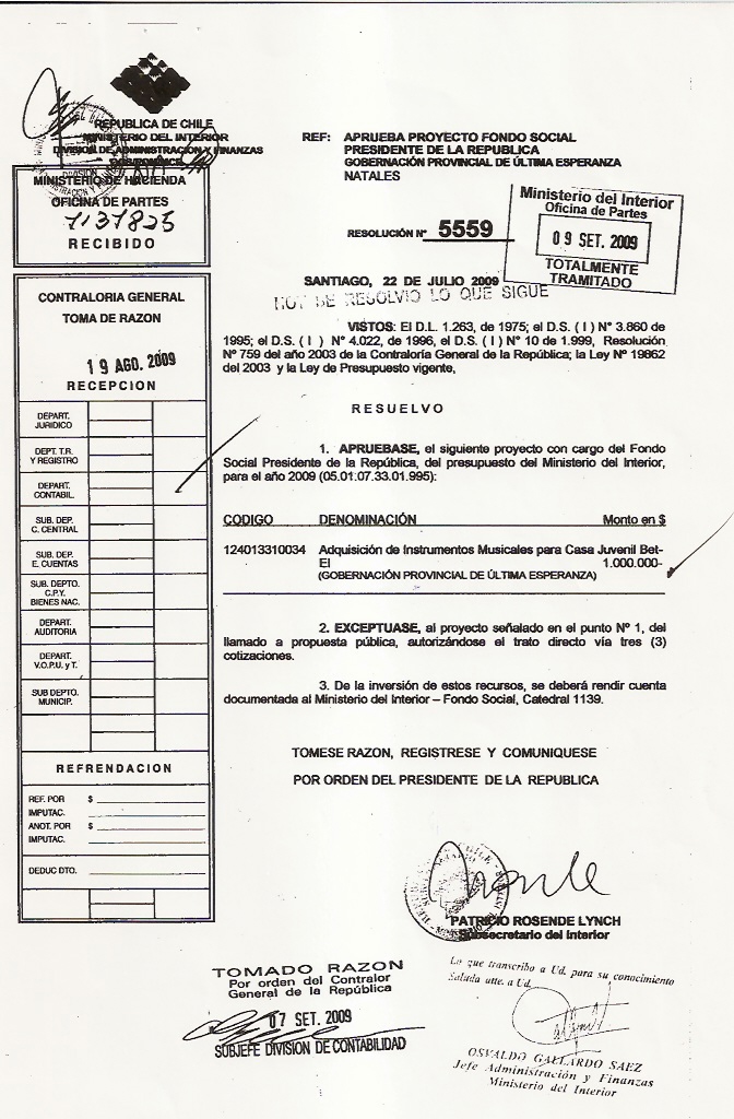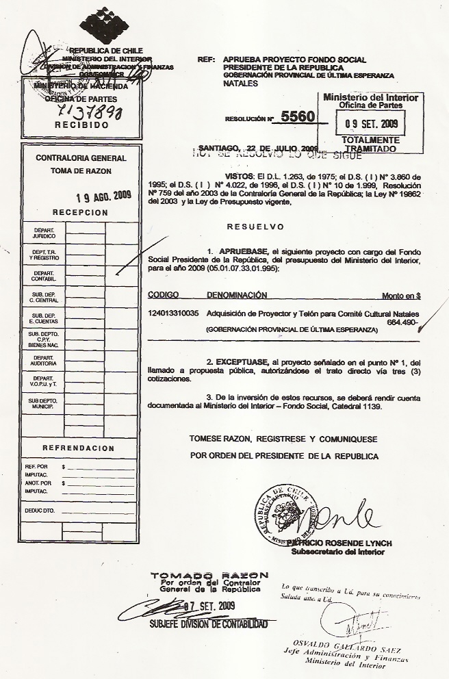 | 5 | FSPR Comité Cultural Natales | Resolucion 5560 | 22/07/2009 | 31/12/2009 | PESOS | 664490 | ASIGNACION DIRECTA | - | Ver nómina de beneficiarios |