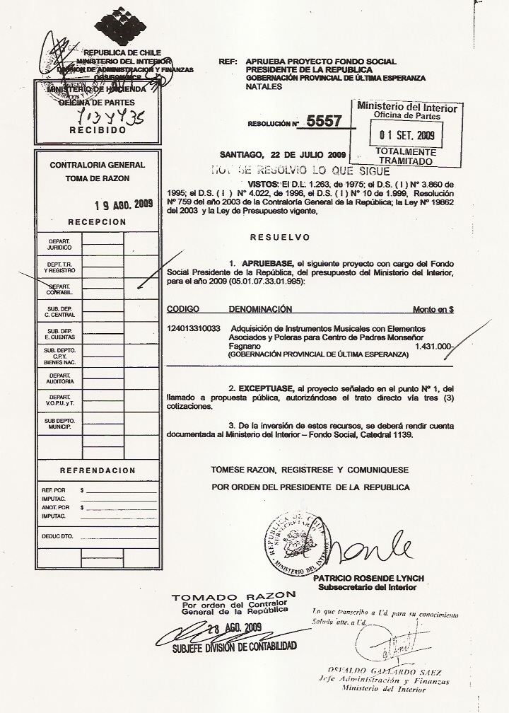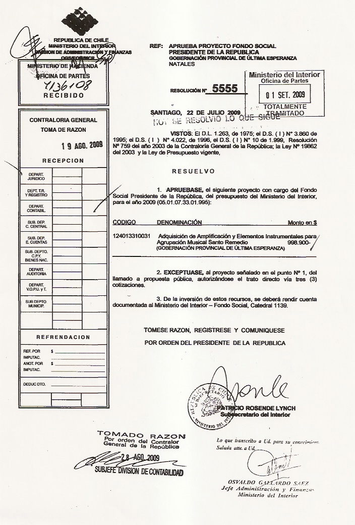| 2 | FSPR Agrupacion Musical Sto Remedio | Resolucion 5555 | 22/07/2009 | 31/12/2009 | Pesos | 998900 | ASIGNACION DIRECTA | - | Ver nómina de beneficiarios |
