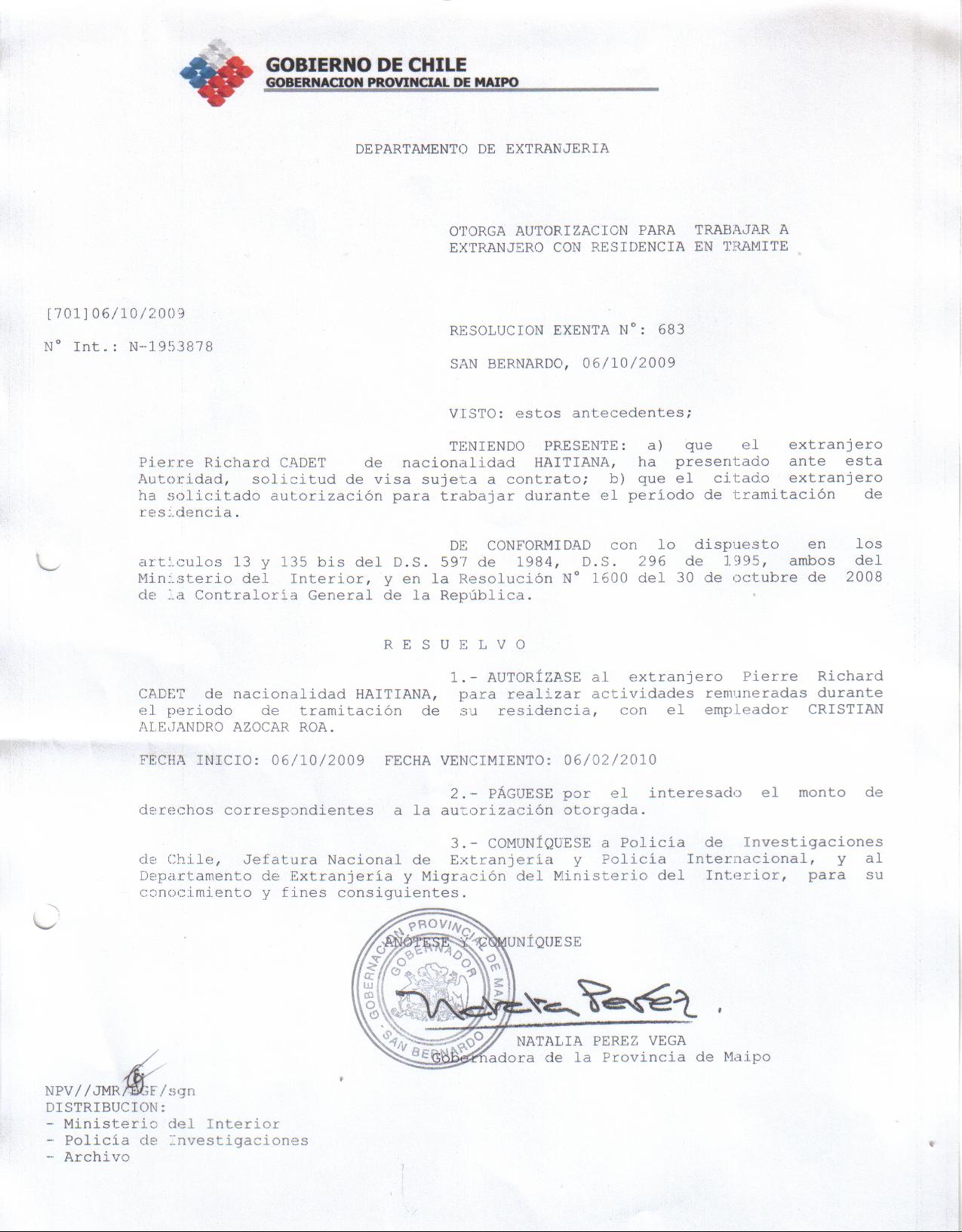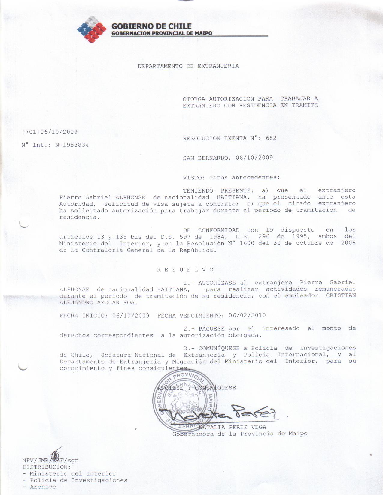 OTORGA AUT TRABAJO SVPD PIERRE GABRIEL ALPHONSE |