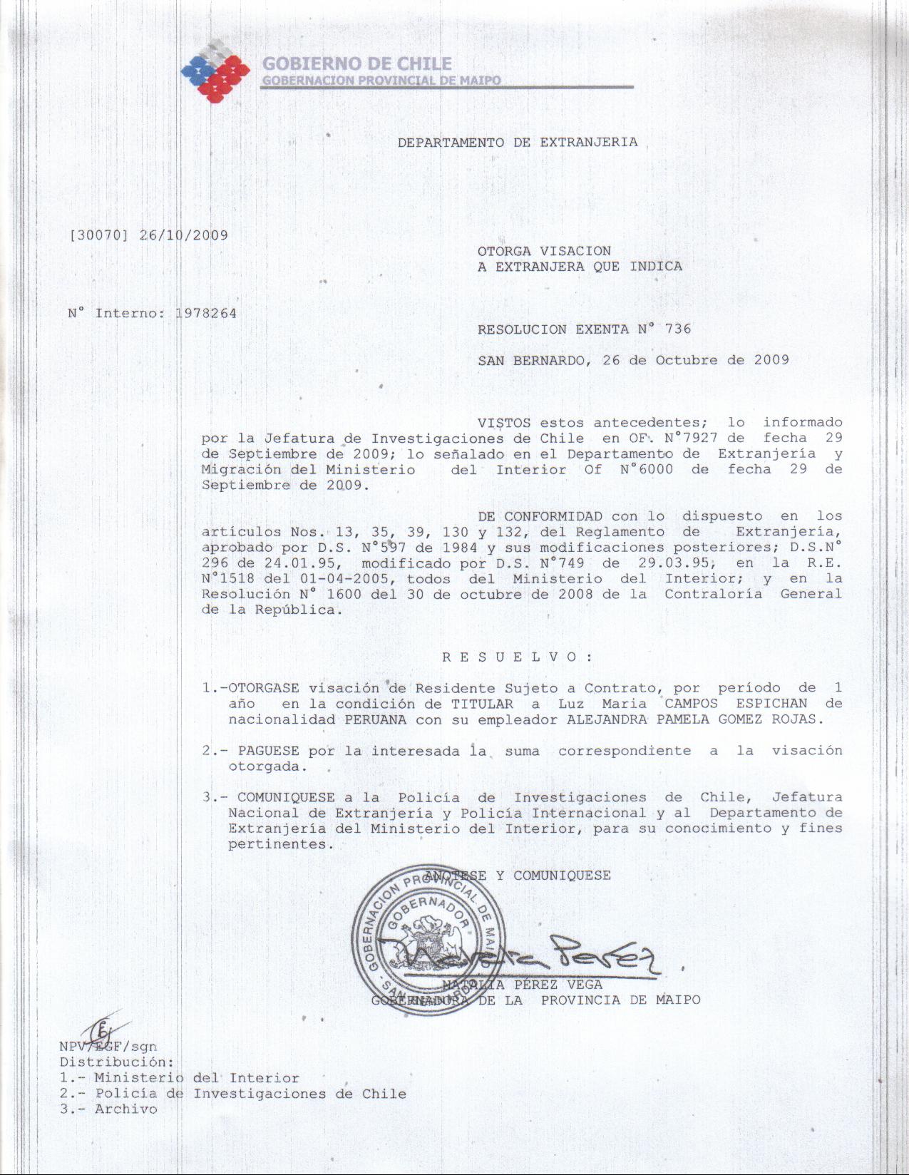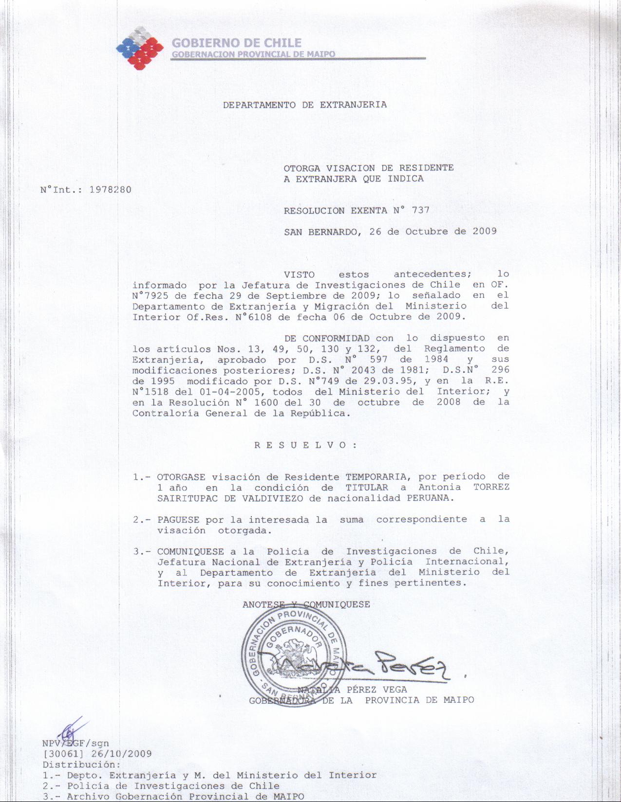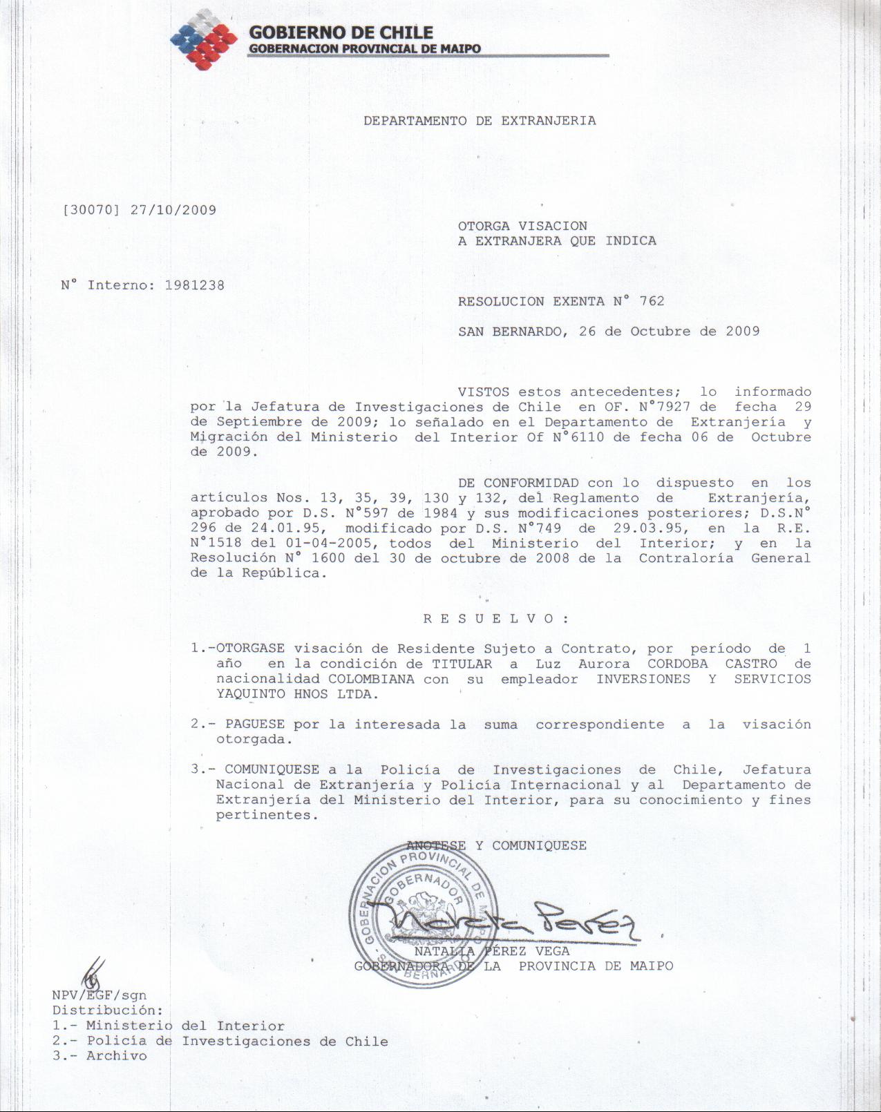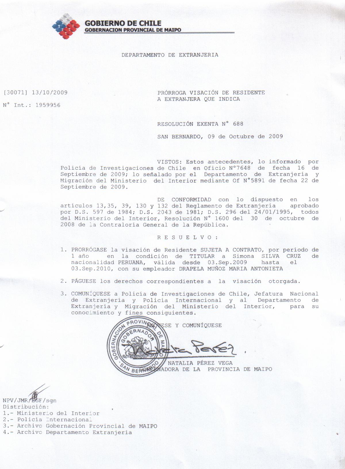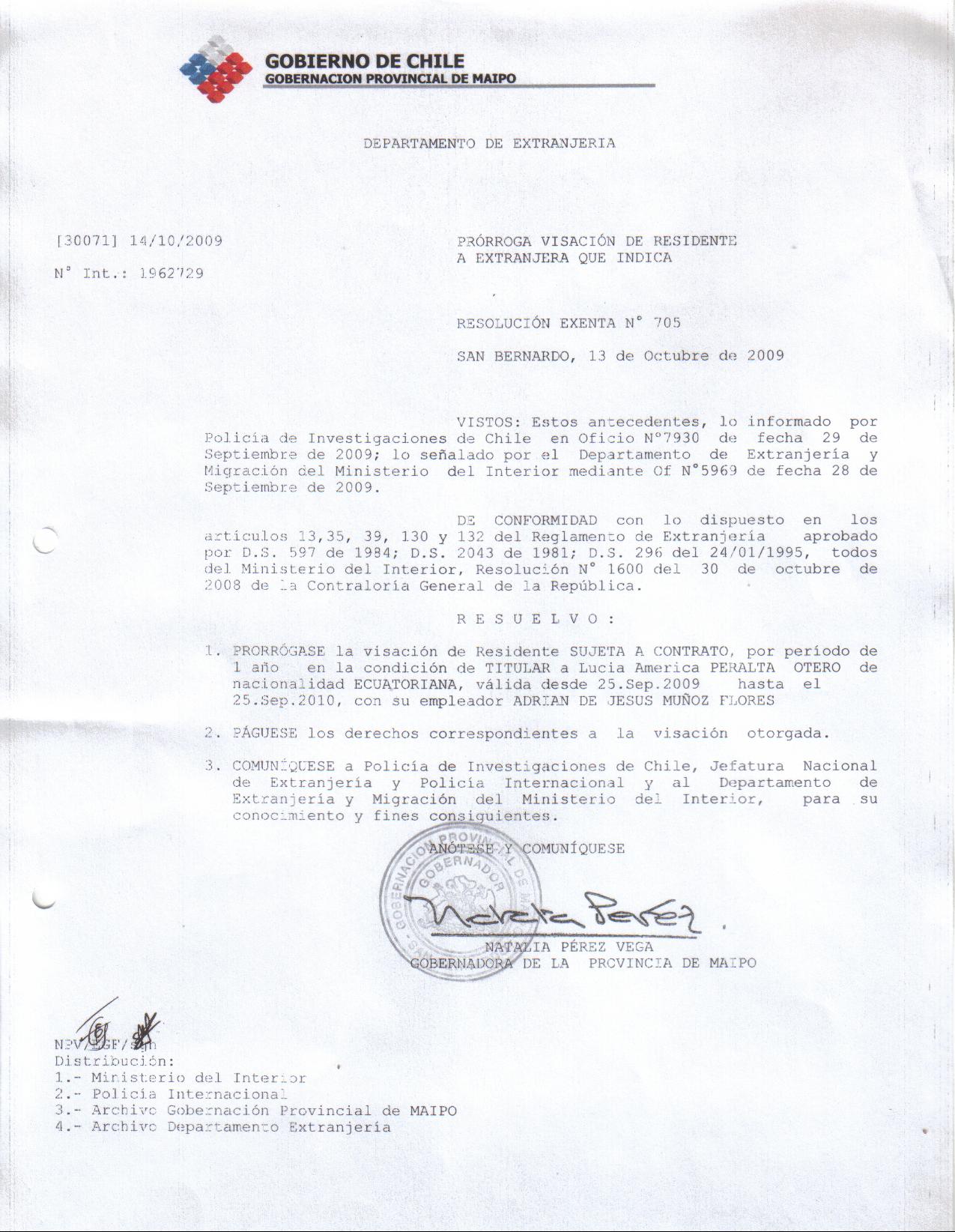 OTORGA PRORROGA VISA |