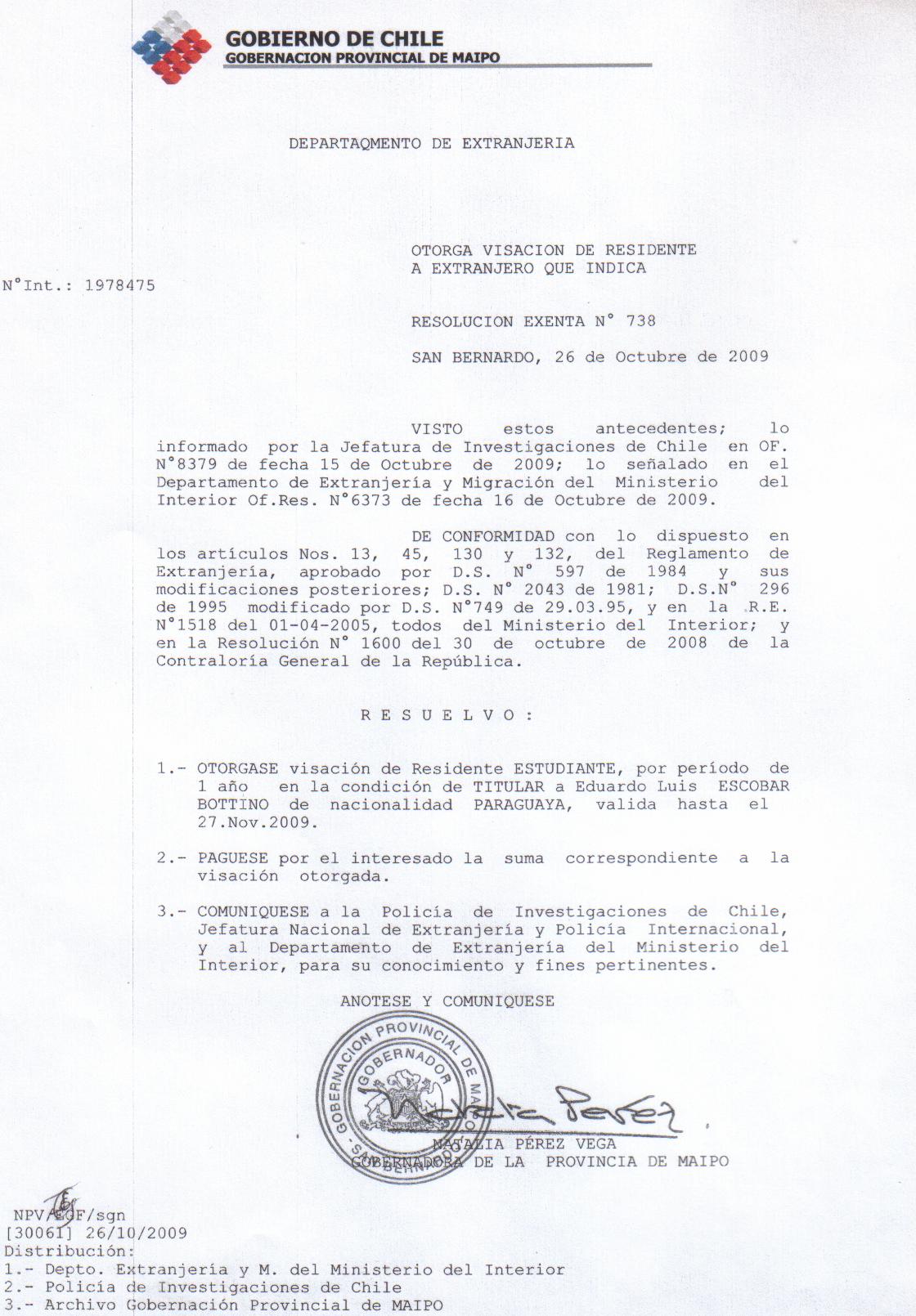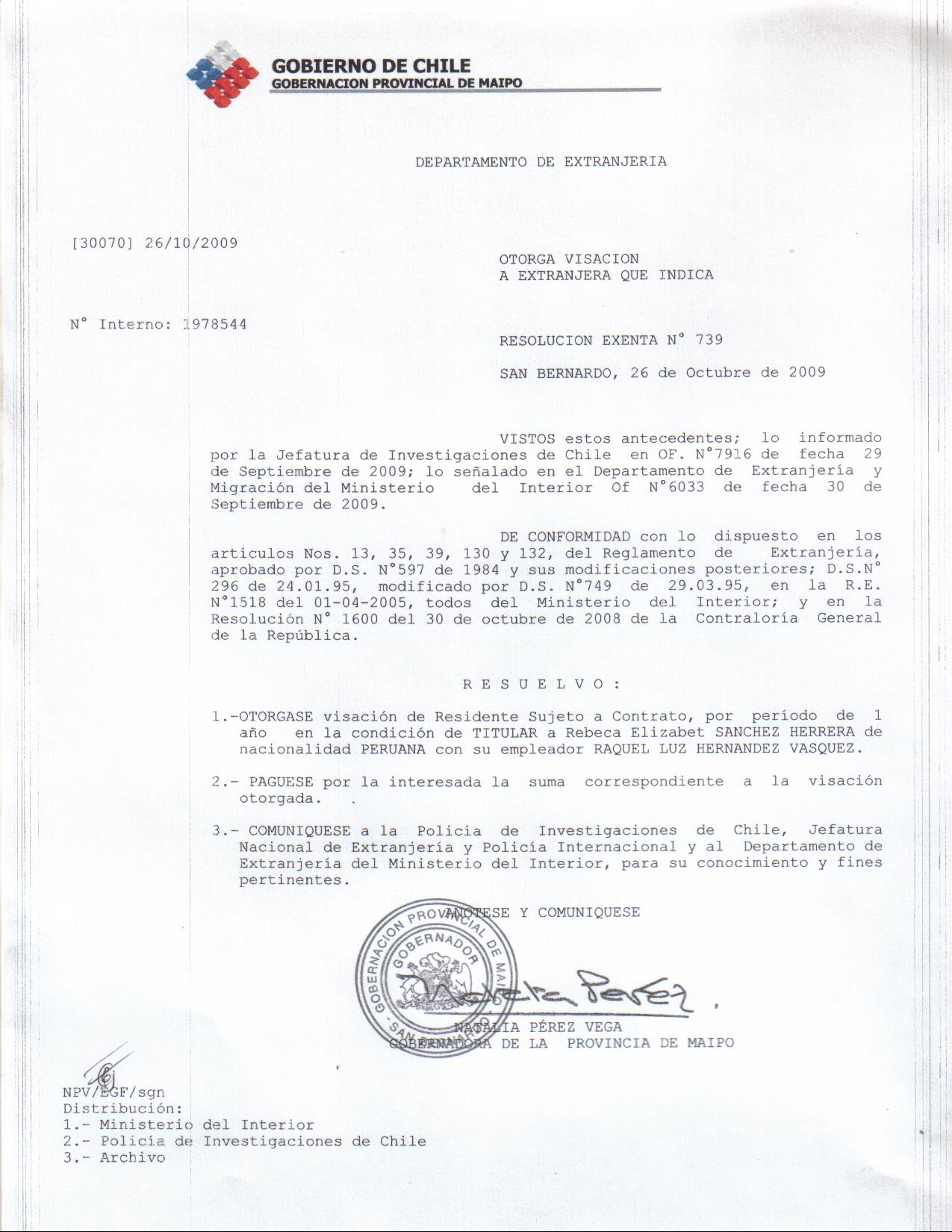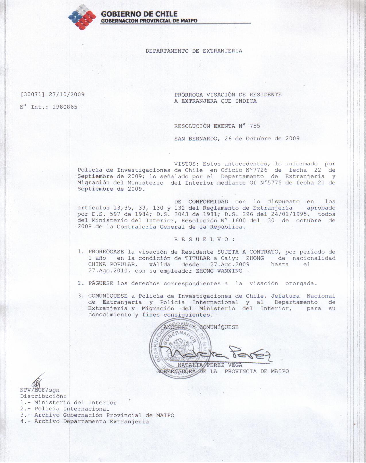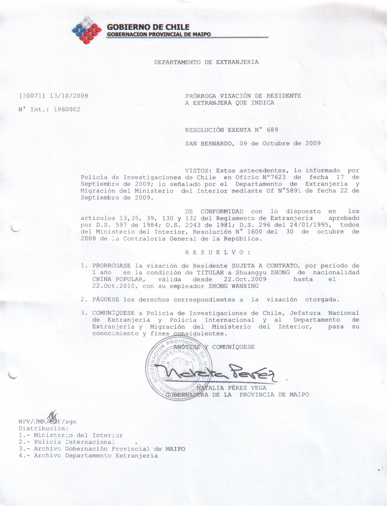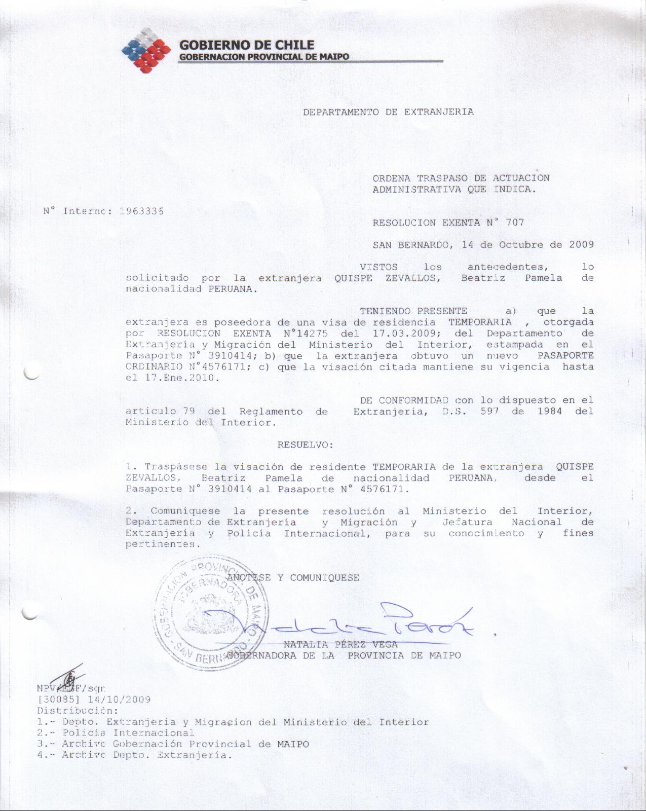 OTORGA PRORROGA VISA |