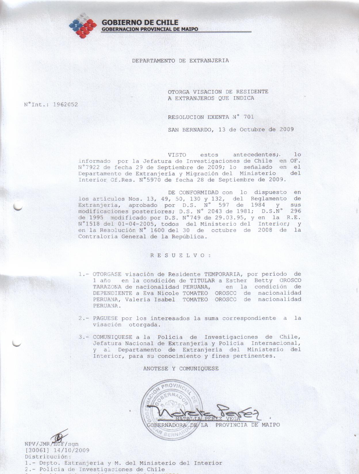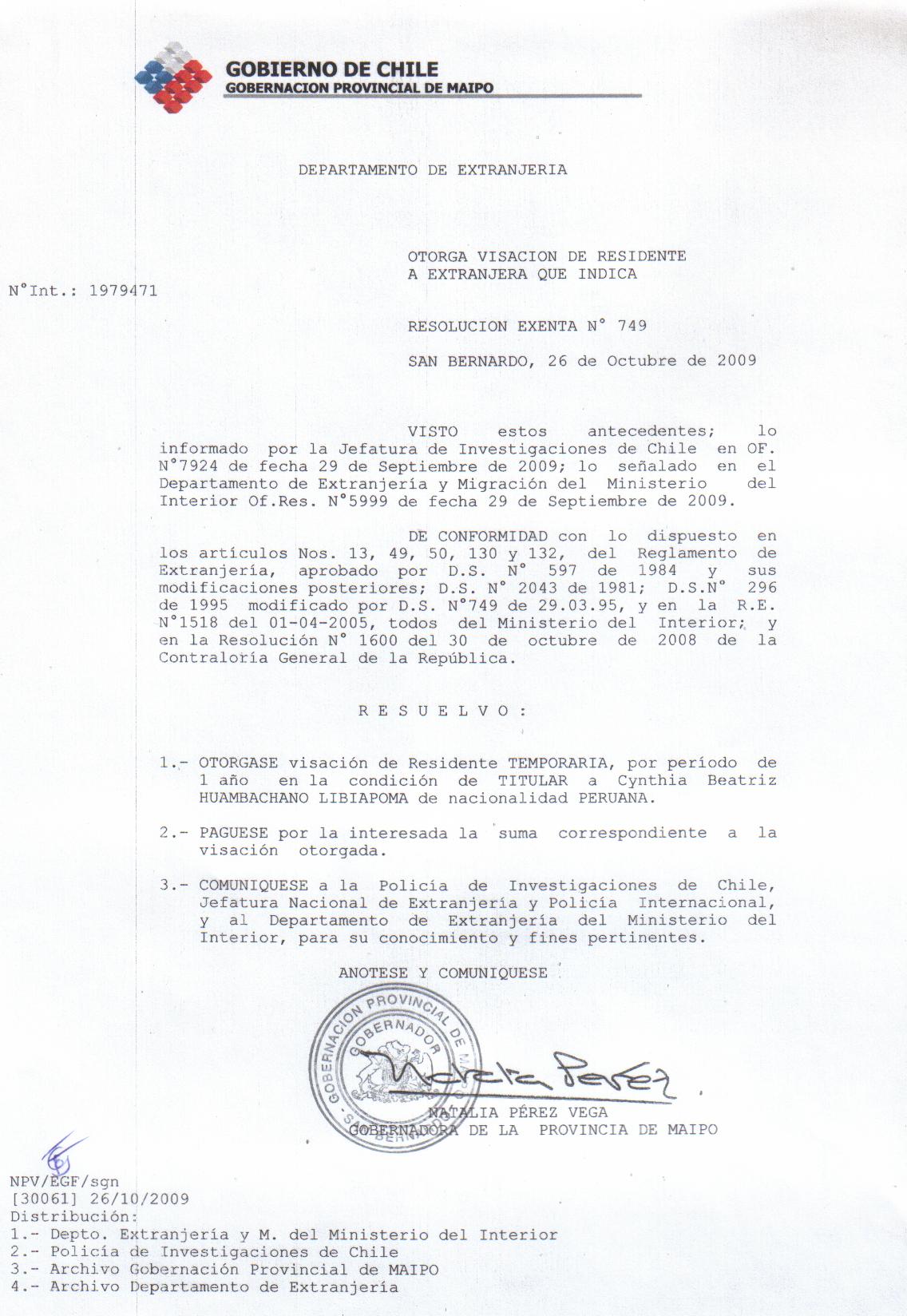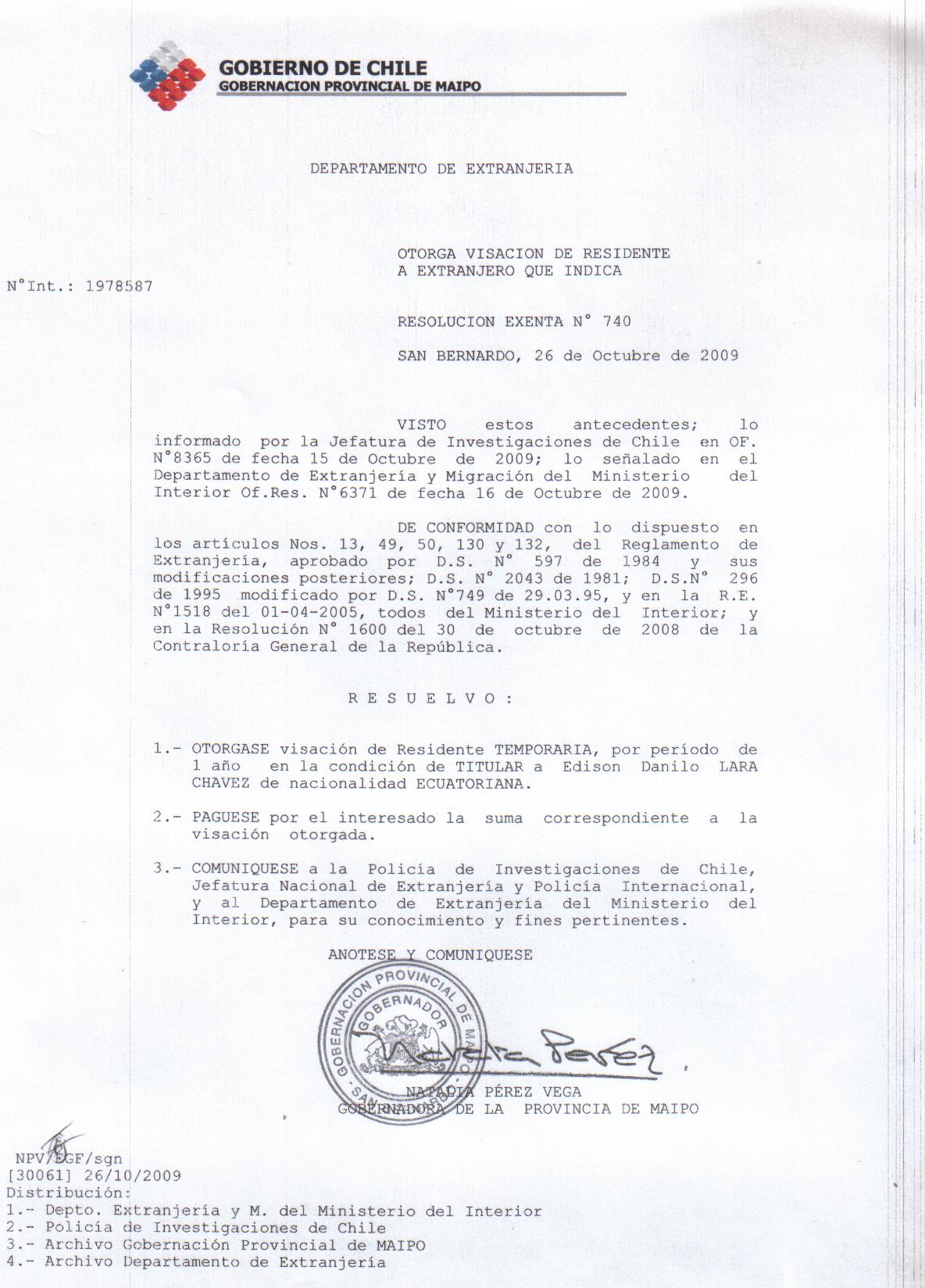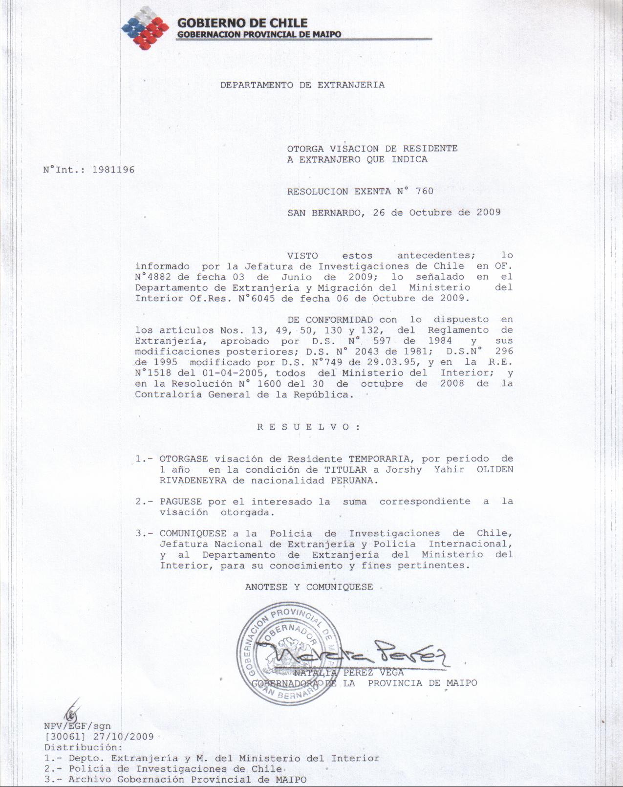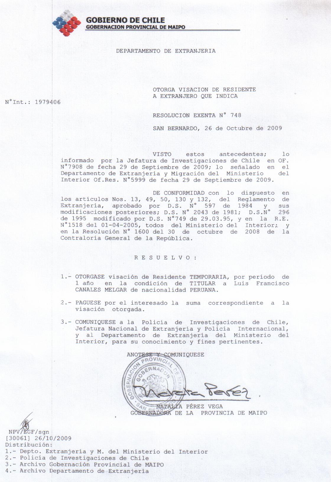 OTORGA PRORROGA VISA |