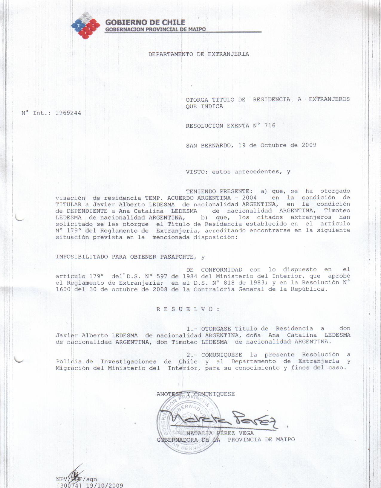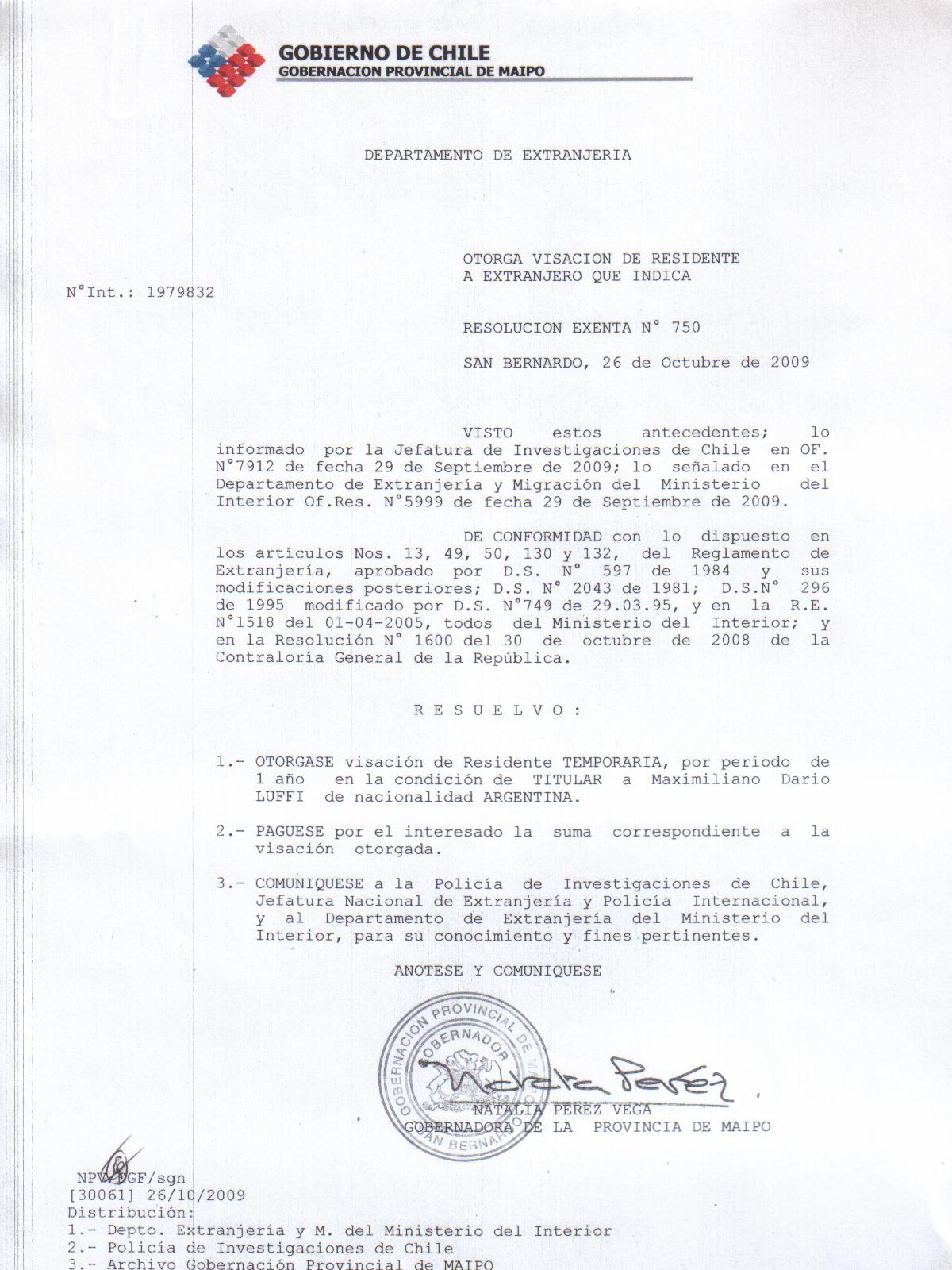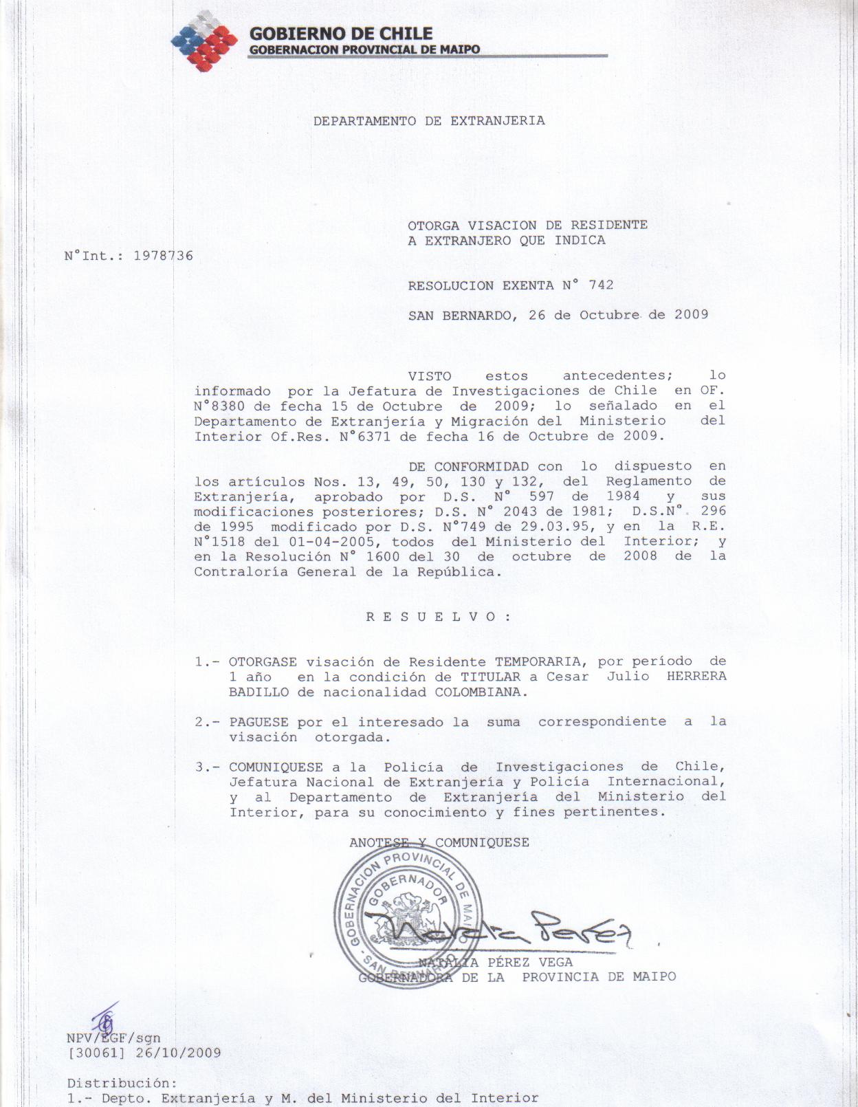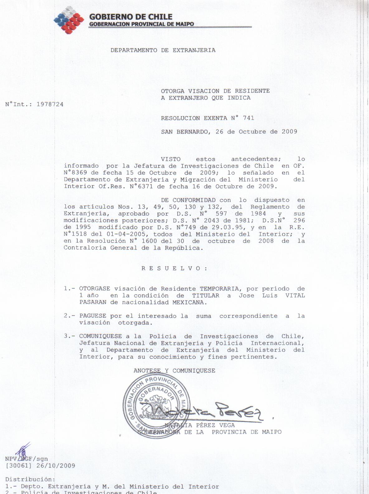 OTORGA TITULO DE RESIDENCIA |