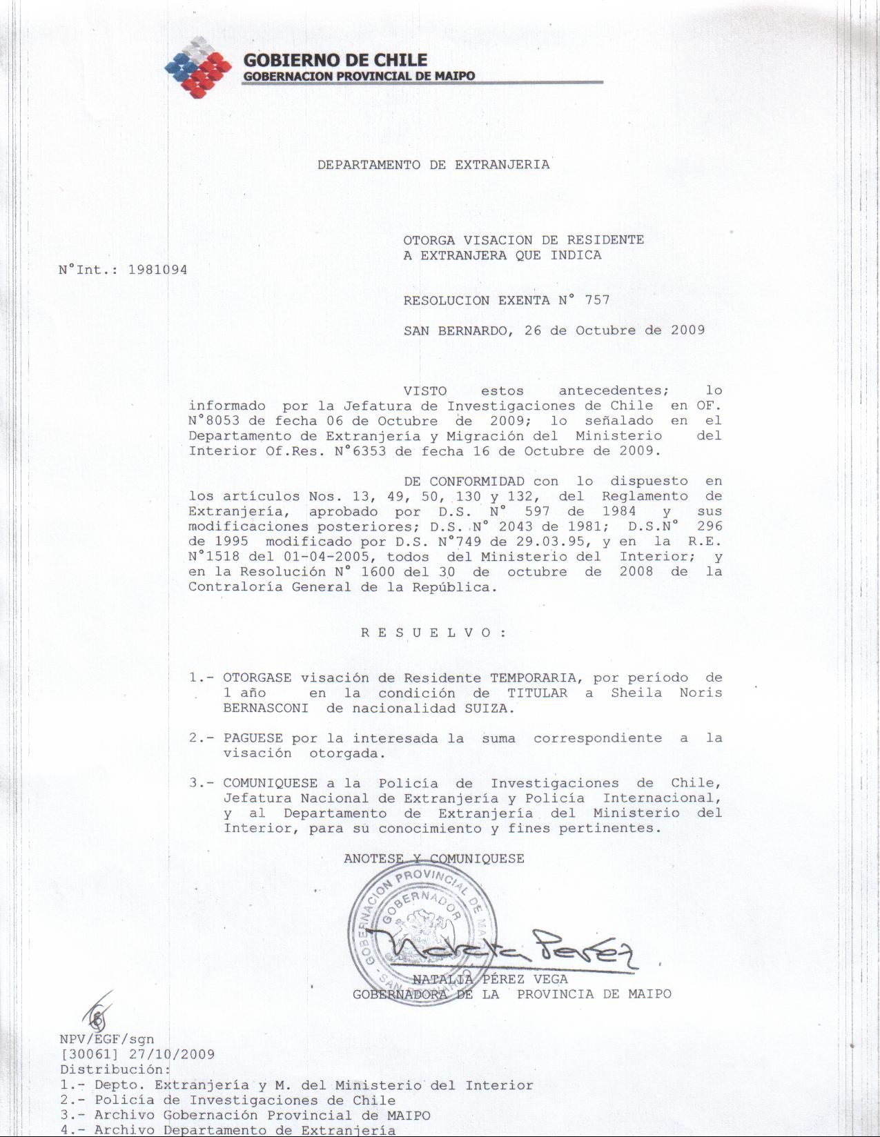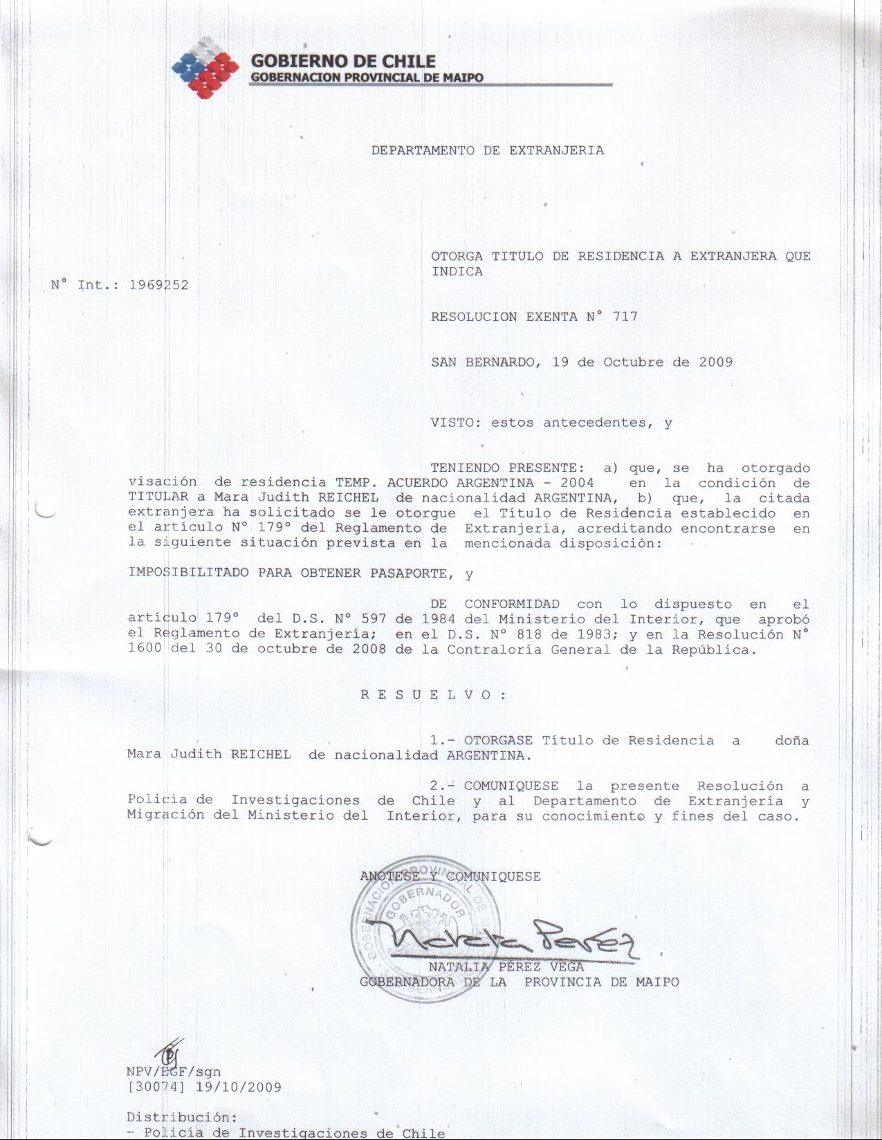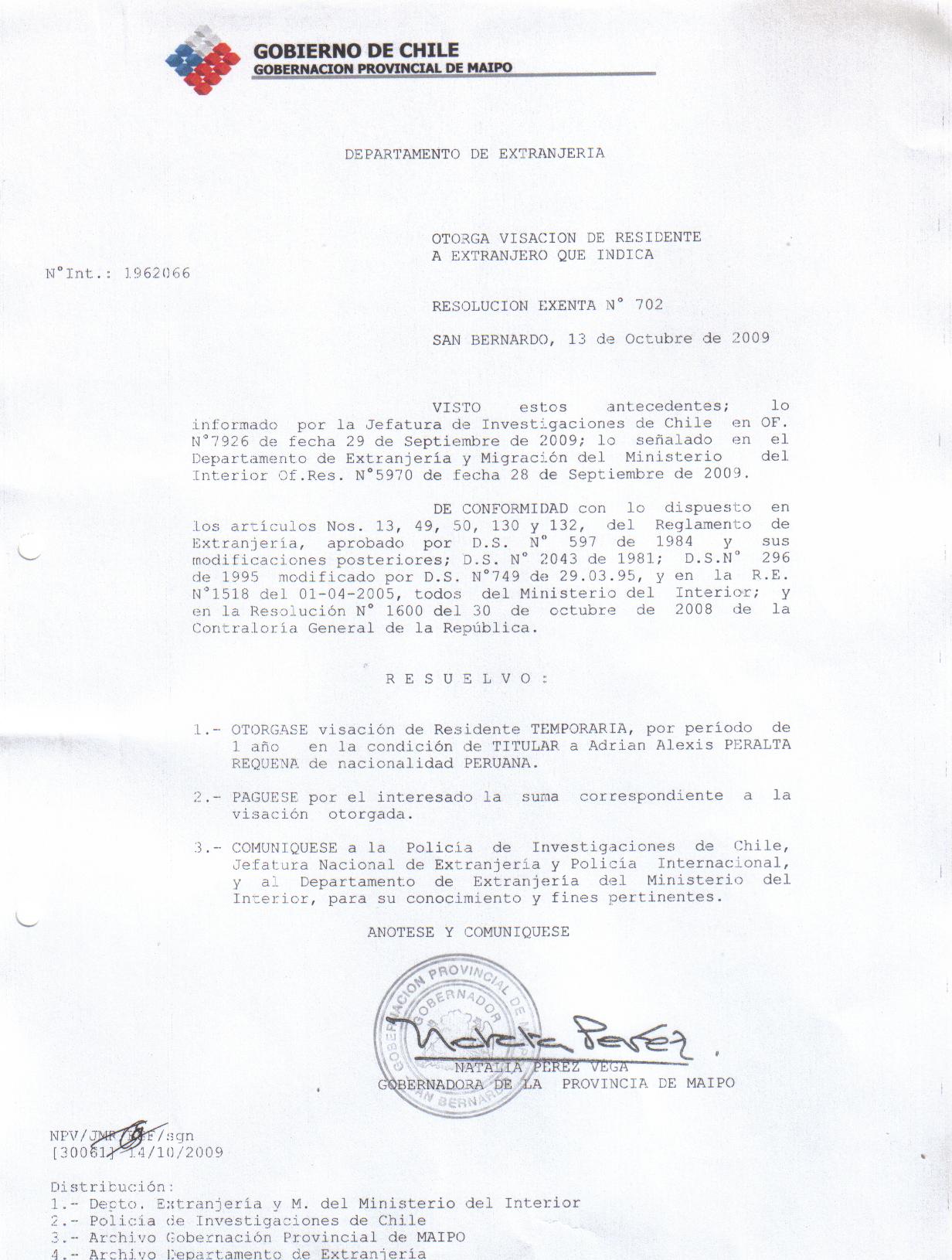 OTORGA TITULO DE RESIDENCIA |